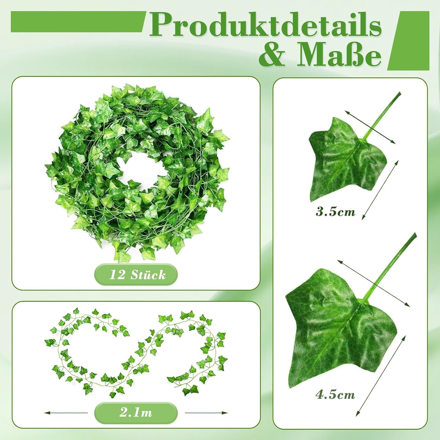 Artificial ivy leaves are cute and aesthetic room decorations that can be used on wall, bedroom, living room, apartment, kitchen, window, door, ceiling, lamp, green background etc.