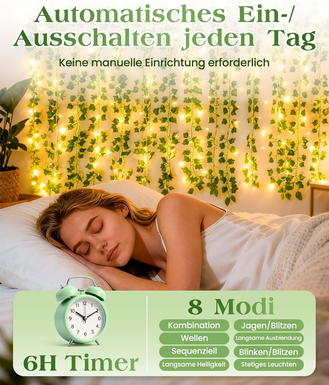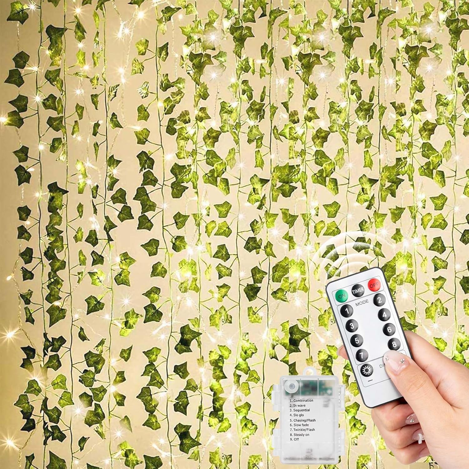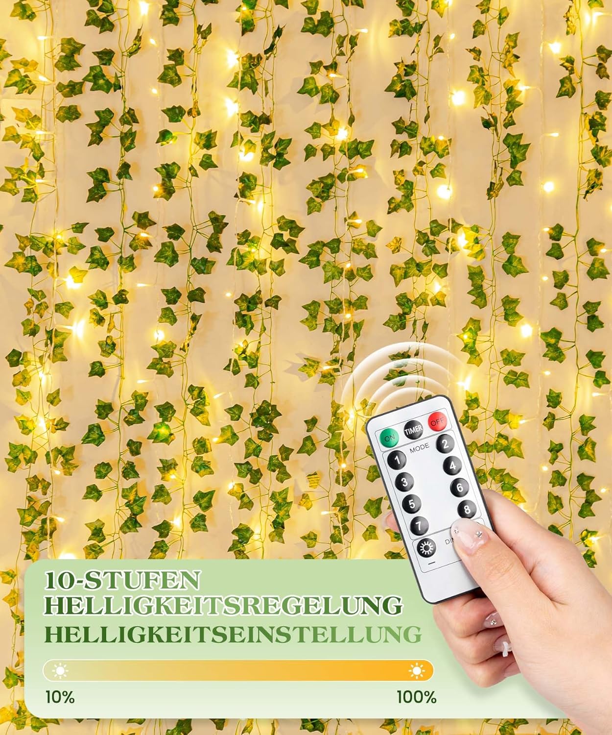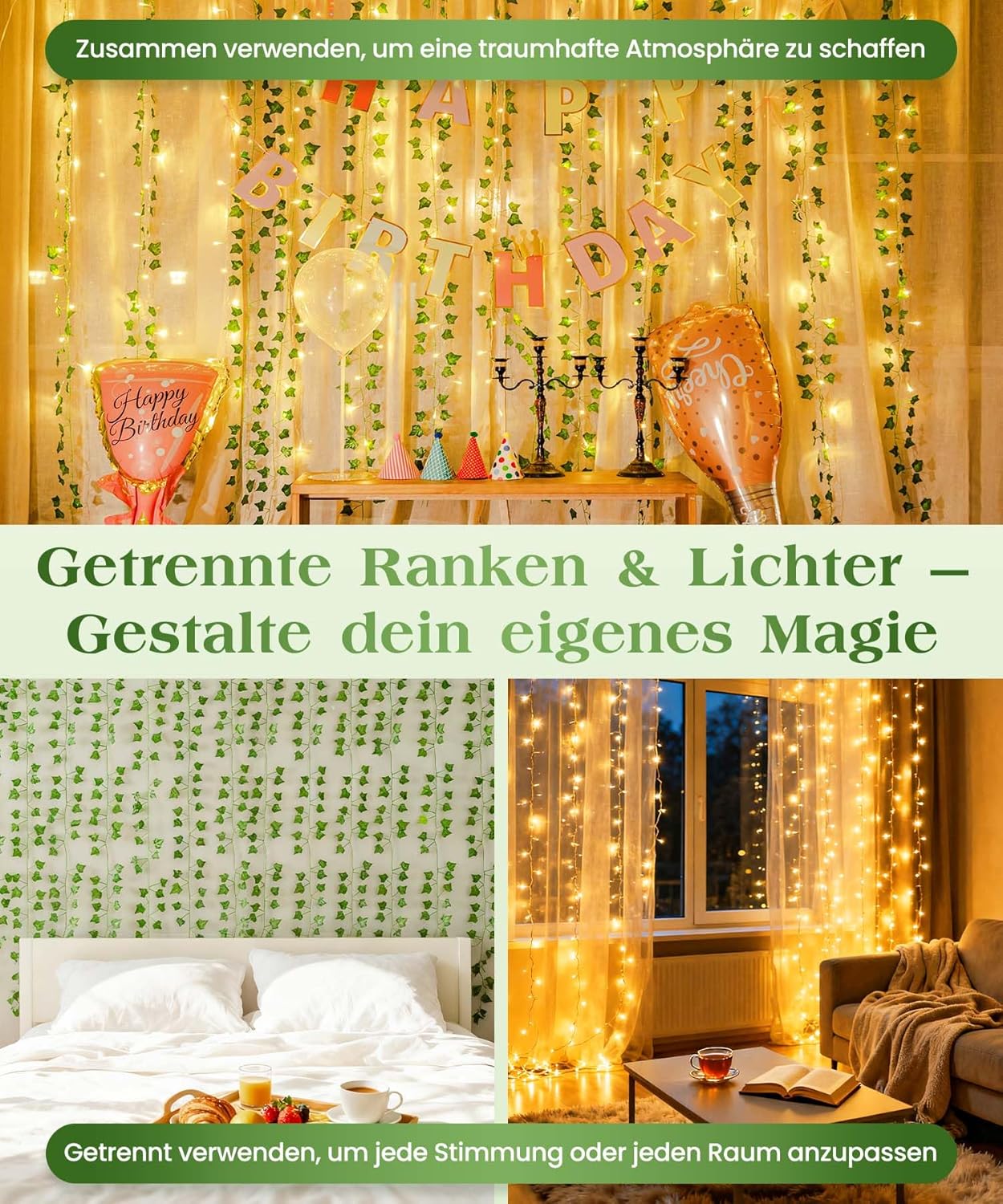 KASZOO Изкуствени листа от бръшлян за декорация на дома, сватбена декорация, градини, огради, цветни кубчета, навеси, фестивали, парти консумативи за теми като сафари джунгла, празници и др. Висококачествените феерични лампички гарантират безопасна употреба във всякакви ситуации. Могат да се използват и на открито, за декорация на партита и сватби на открито.