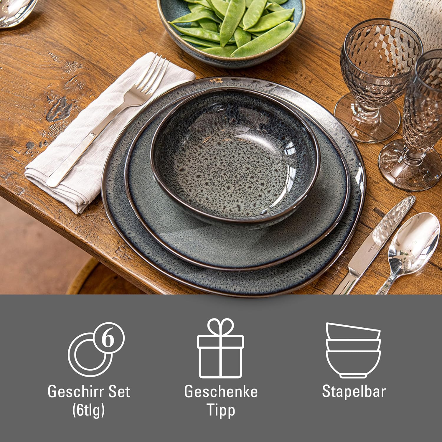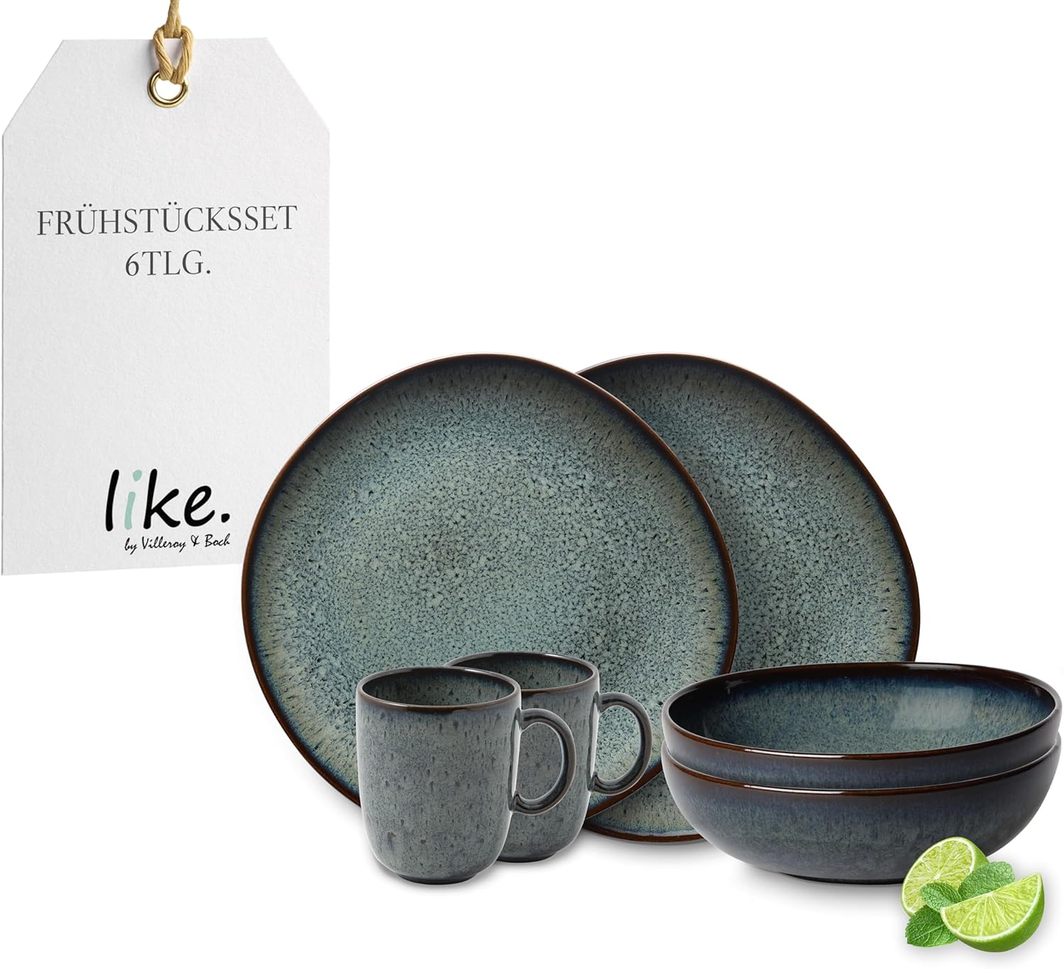 като. от Villeroy & Boch - Комплект керамични прибори за хранене Lave Gris, 6 части, керамичен вид, сервиз за закуска за 2 души, сив