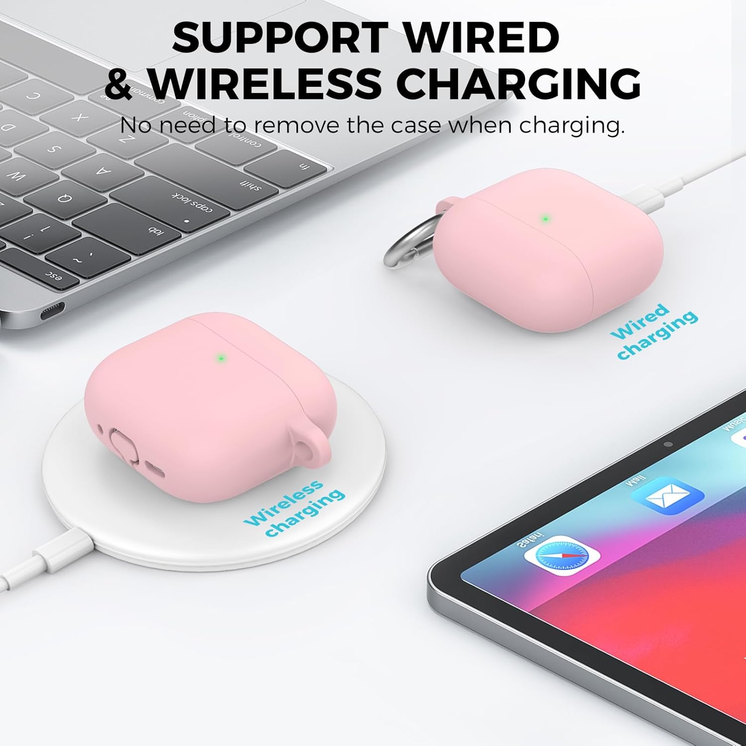 • Видим LED индикатор: дизайнът на пантите гарантира, че капакът остава плътно затворен и е съвместим с безжично зареждане, видим LED индикатор.
