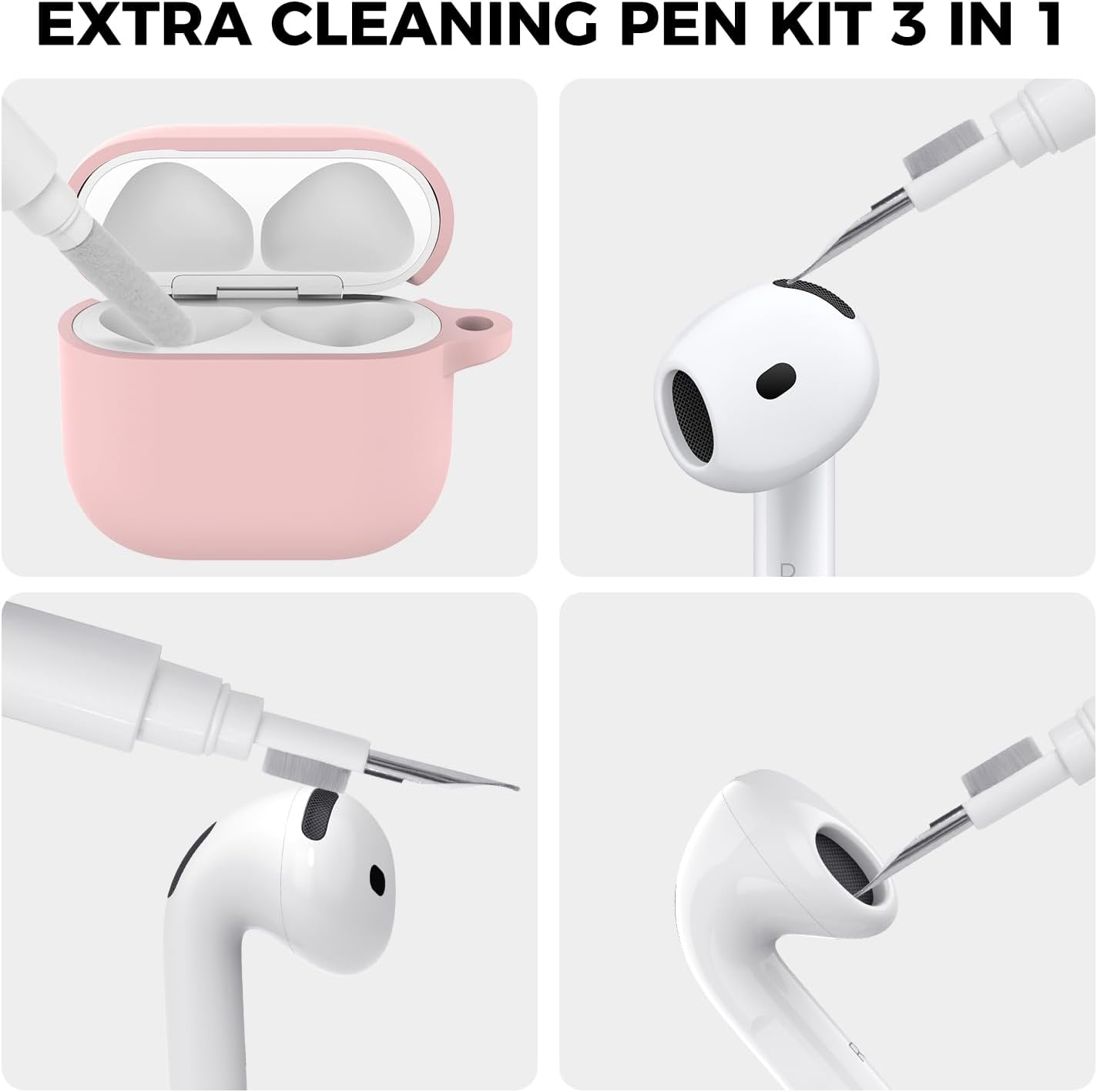 Кейс AhaStyle за AirPods 4 (2024) с почистваща писалка, мек силиконов калъф за AirPods 4-то поколение, калъф за цялото тяло за Apple AirPods 4, поддържа зареждане с USB-C, калъф и безжична връзка