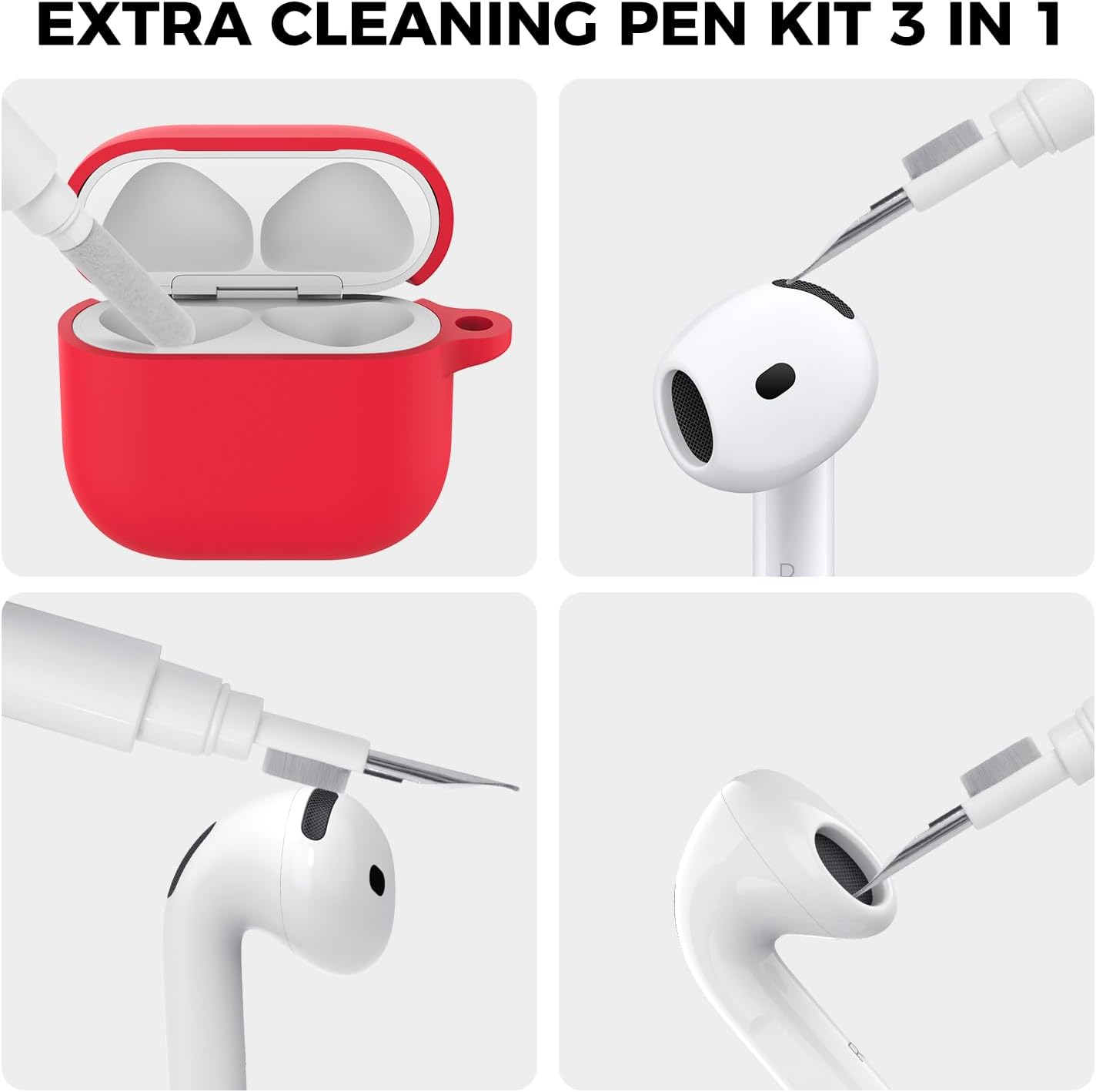 Кейс AhaStyle за AirPods 4 (2024) с почистваща писалка, мек силиконов калъф за AirPods 4-то поколение, калъф за цялото тяло за Apple AirPods 4, поддържа зареждане с USB-C, калъф и безжична връзка