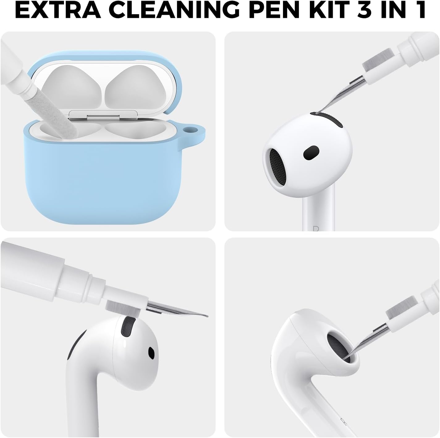 Кейс AhaStyle за AirPods 4 (2024) с почистваща писалка, мек силиконов калъф за AirPods 4-то поколение, калъф за цялото тяло за Apple AirPods 4, поддържа зареждане с USB-C, калъф и безжична връзка
