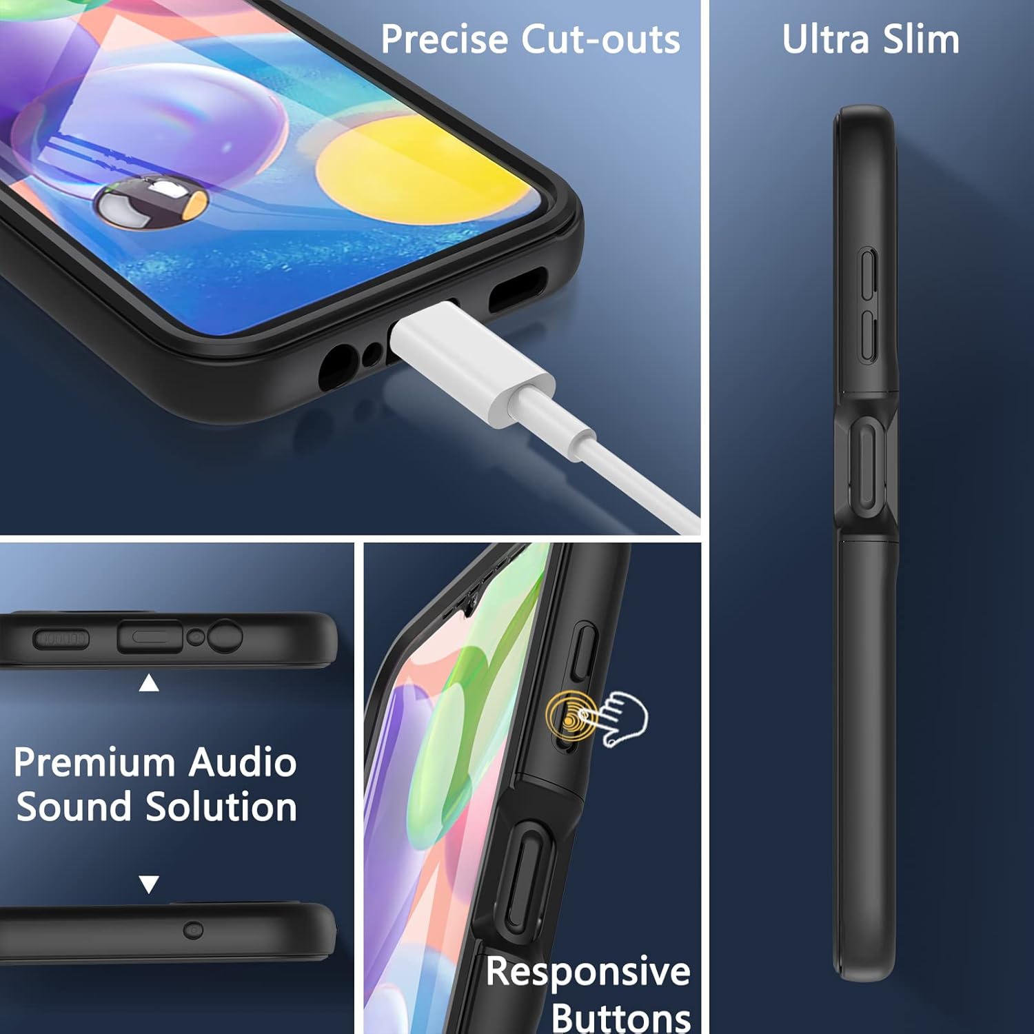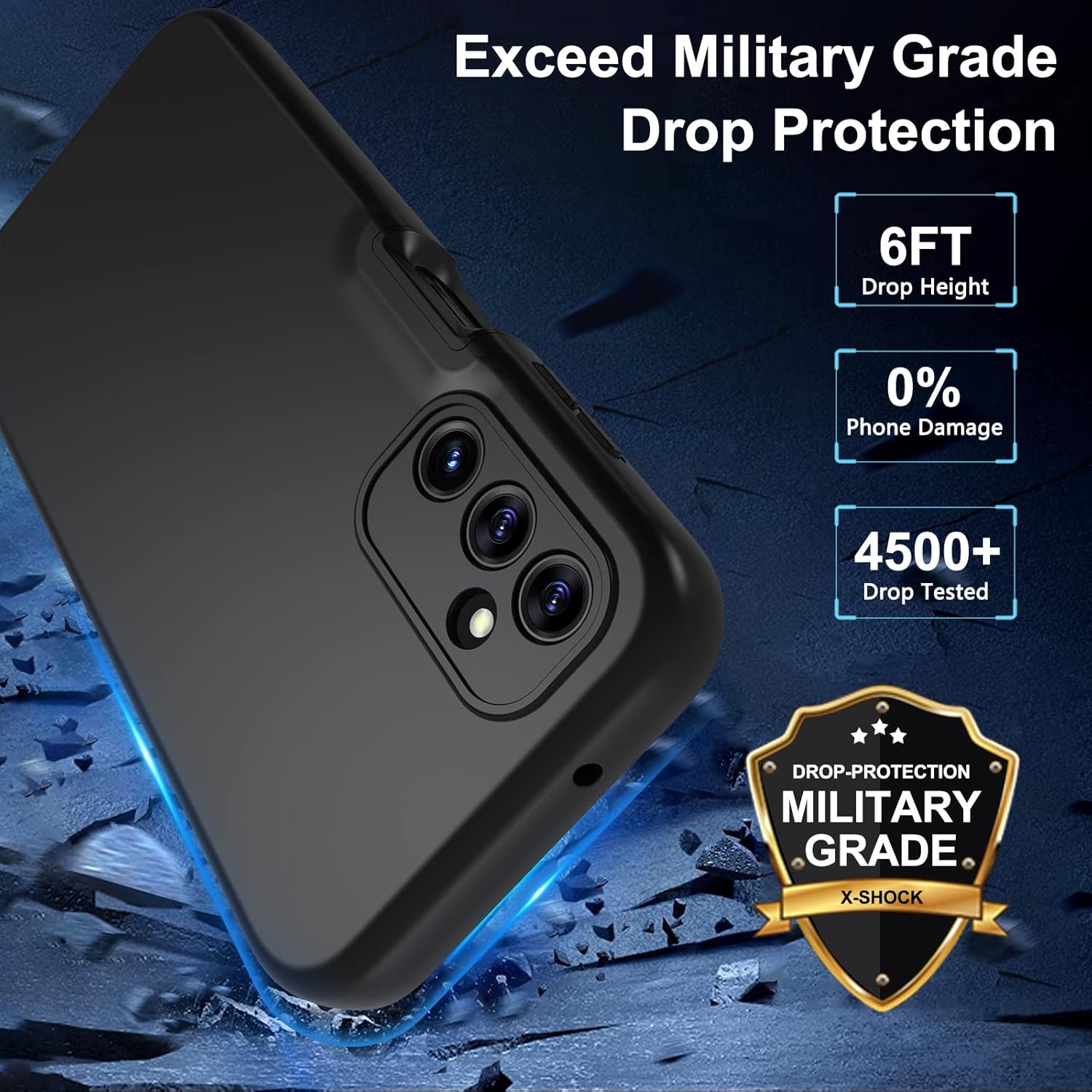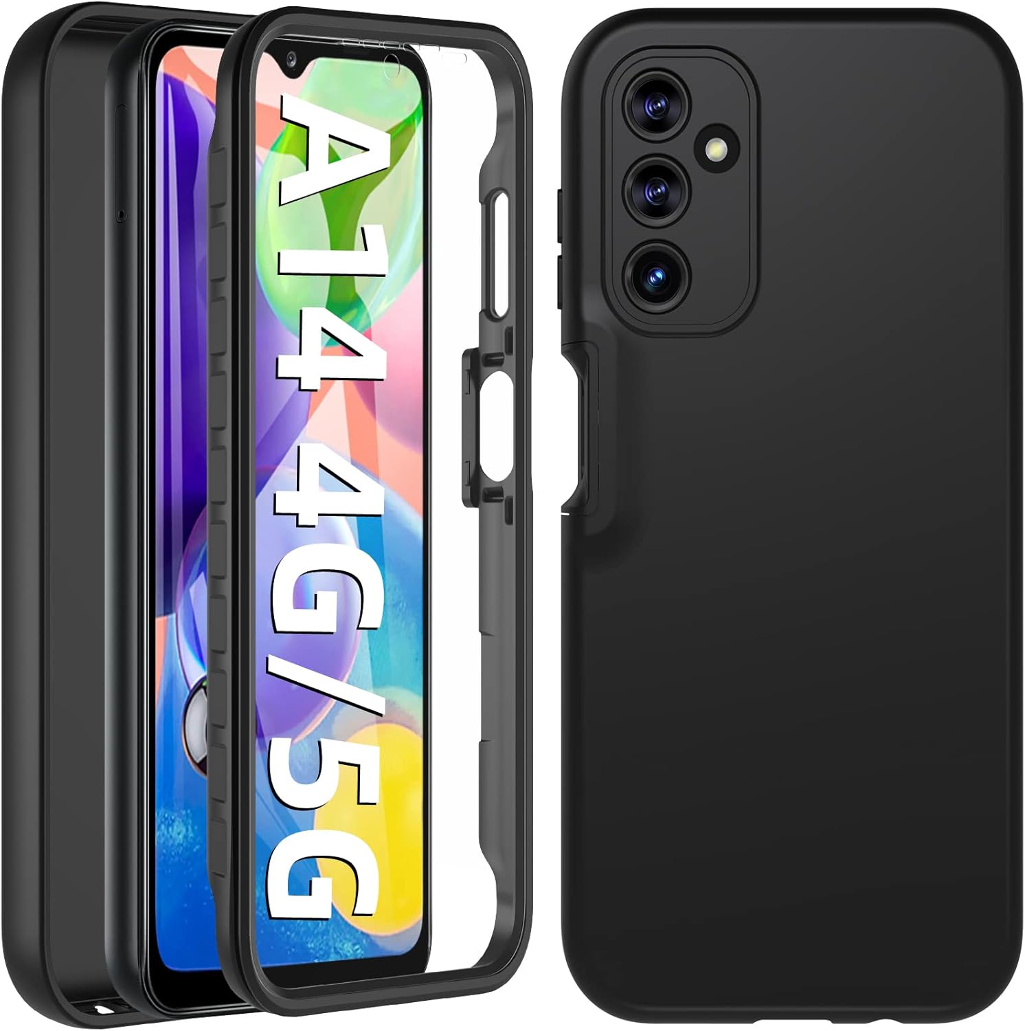 Кейс BESINPO за Samsung Galaxy A14 5G/A14 4G, 360-градусов всестранно защитен кейс с вграден протектор за екрана, здрав силиконов защитен кейс за външна употреба (черен)