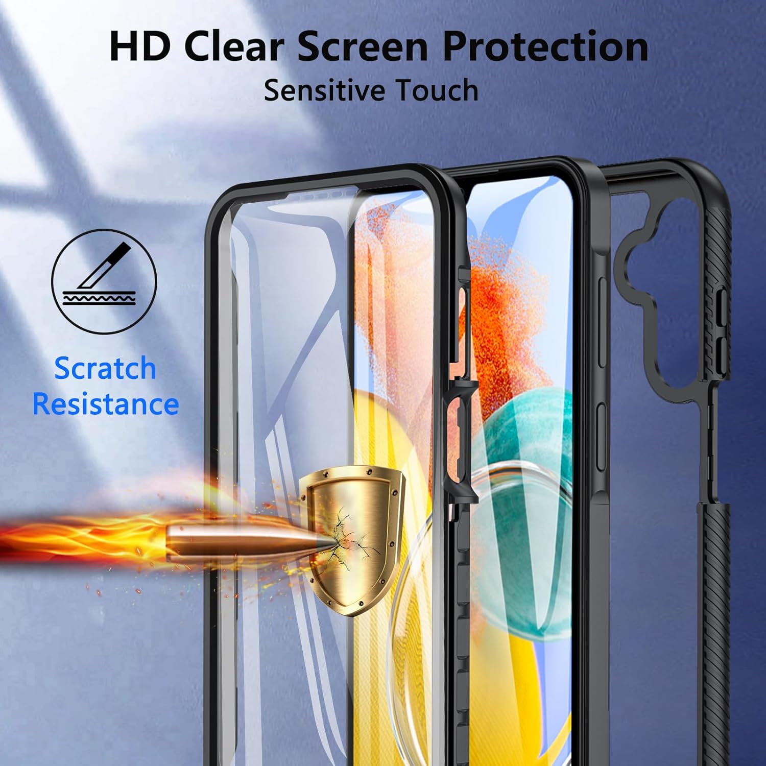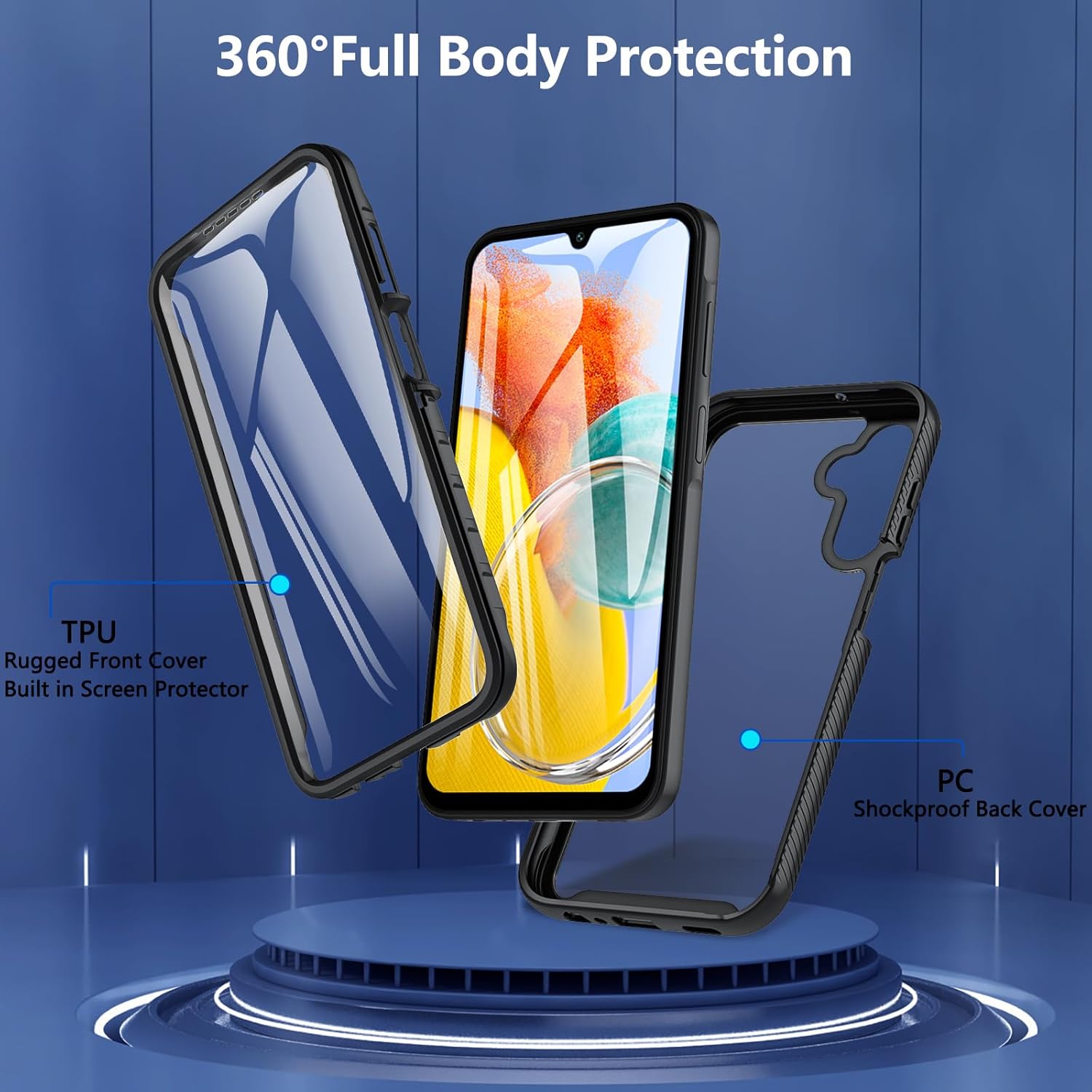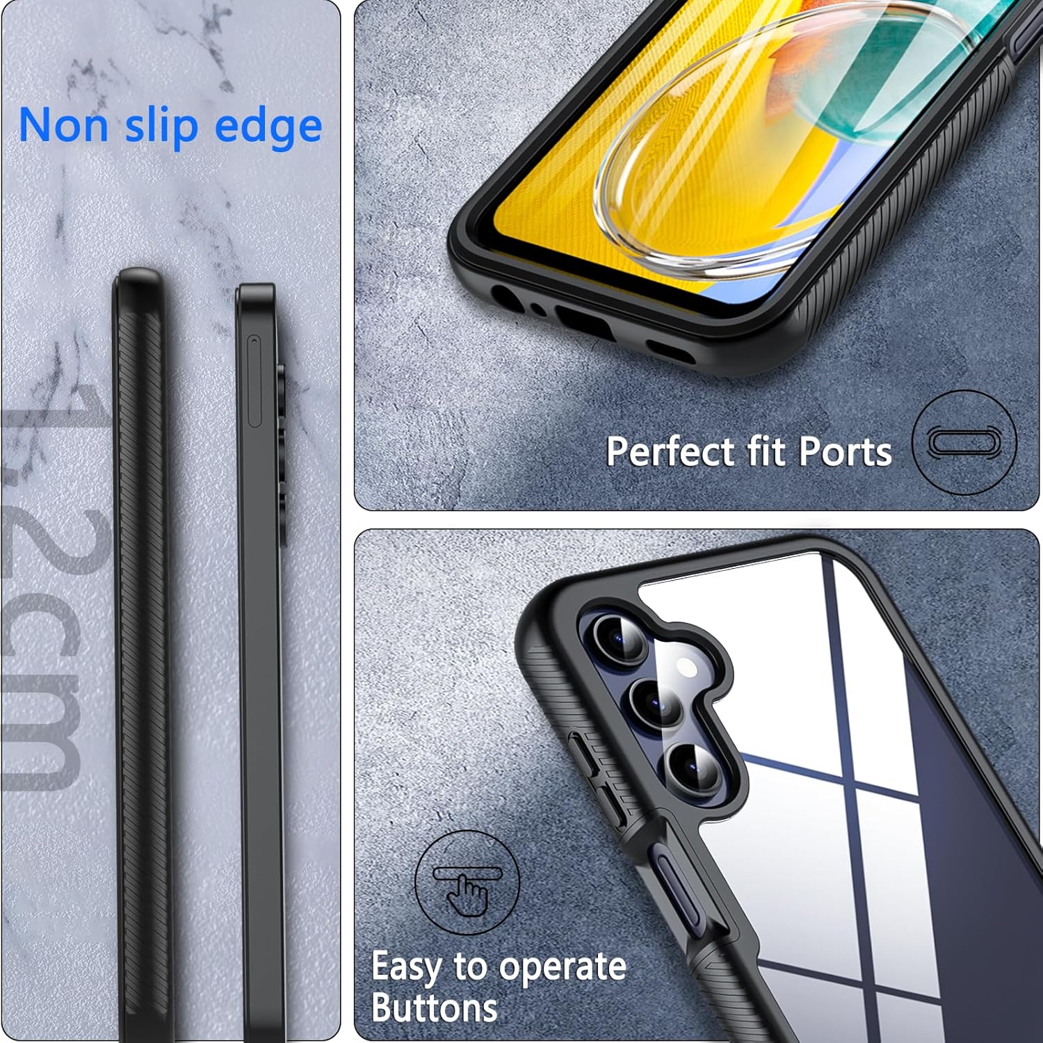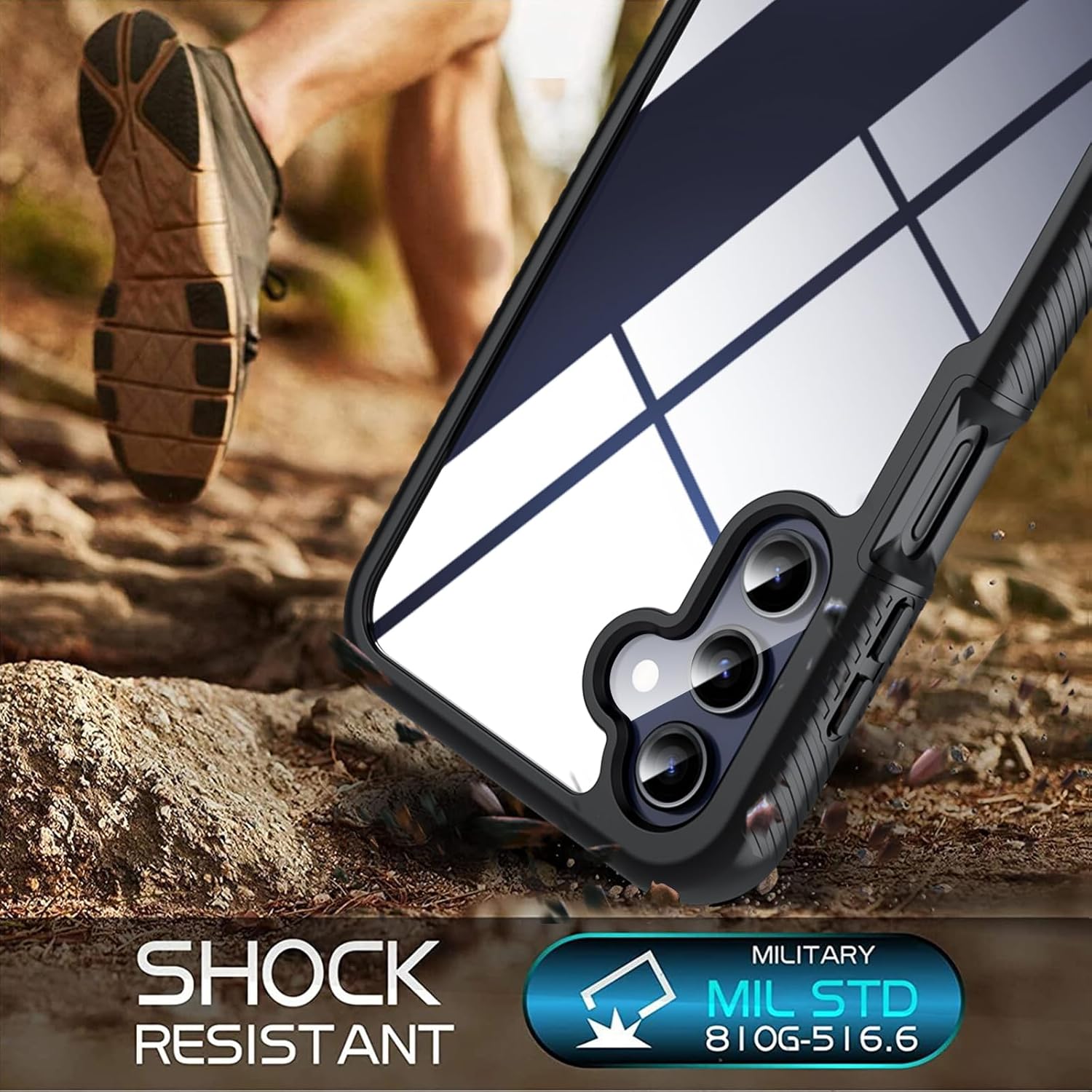Кейс BESINPO за Samsung Galaxy A15, 360-градусова всестранна защита с вграден протектор за екрана, здрав кейс за мобилен телефон, защитен капак, кейс за външна употреба за Samsung A15 5G/A15 4G (черен)