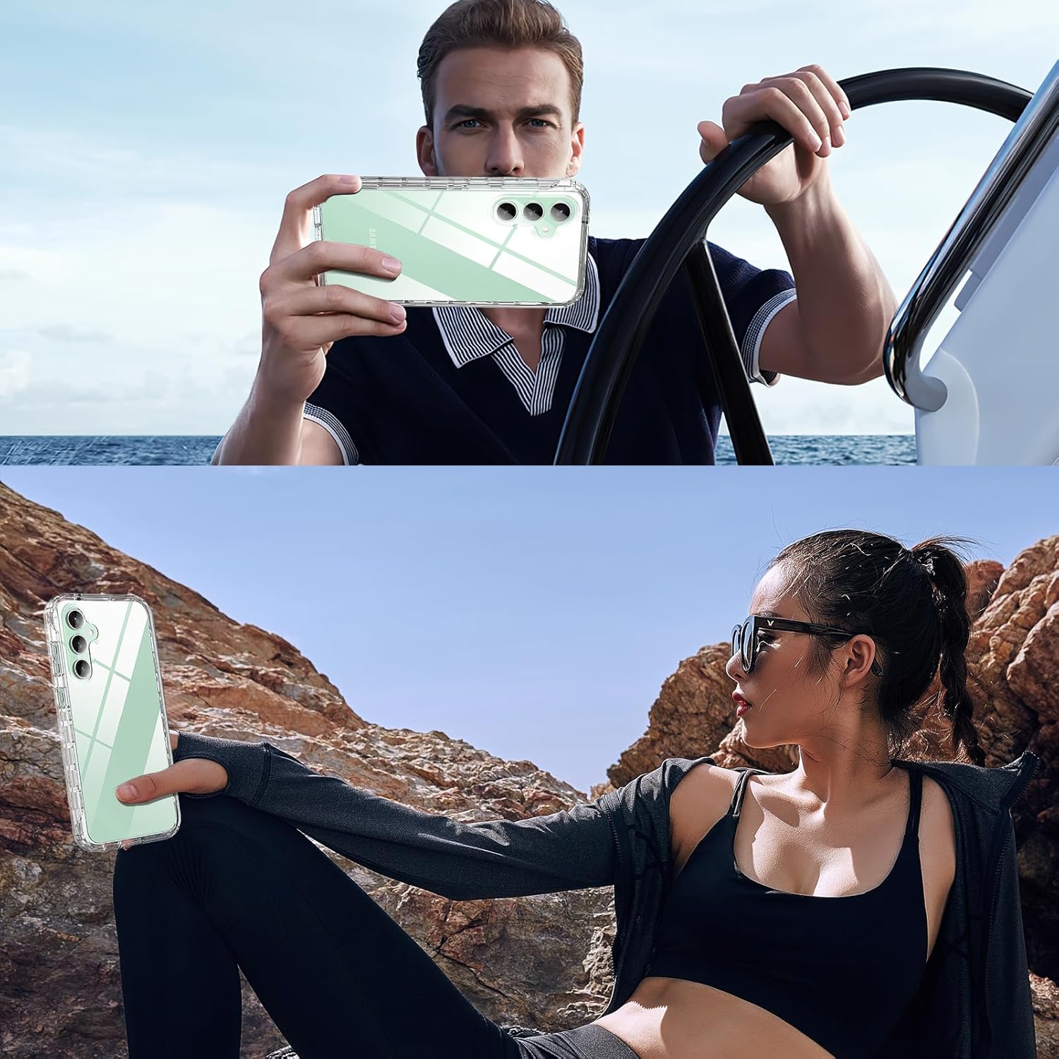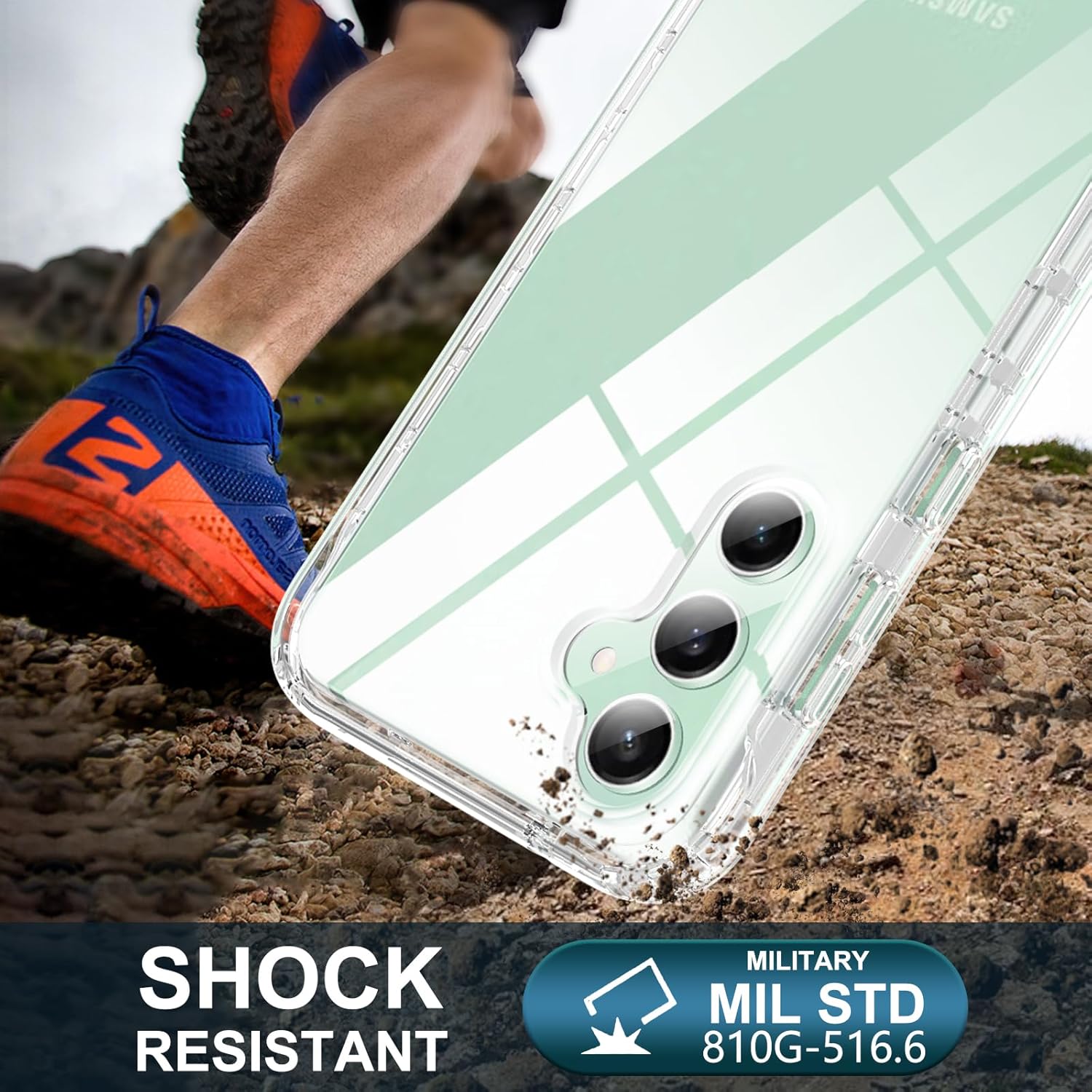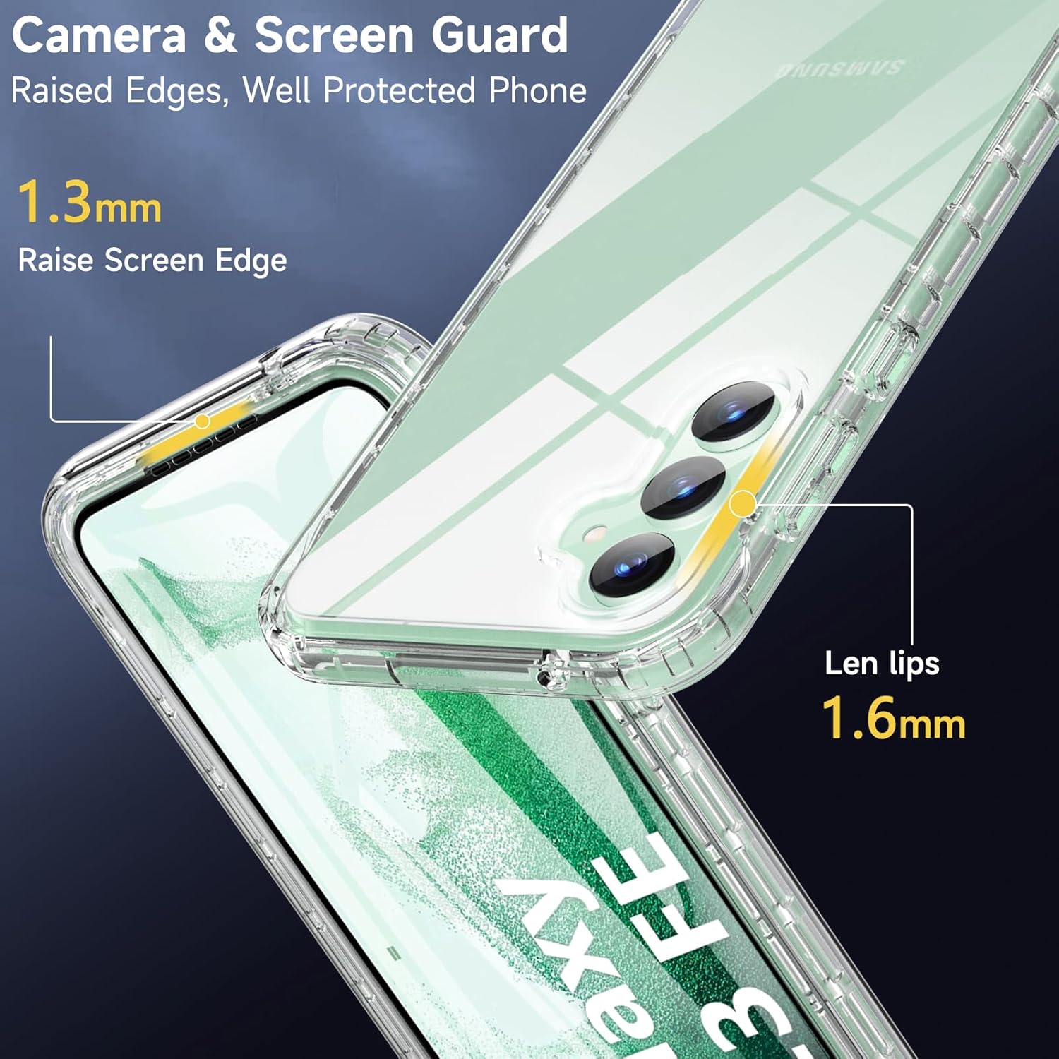 Кейс BESINPO за Samsung Galaxy S23 FE, 360-градусов защитен силикон с TPU протектор за екран, здрав предпазен калъф за външна употреба, кейс за мобилен телефон за Samsung S23 FE (прозрачен)