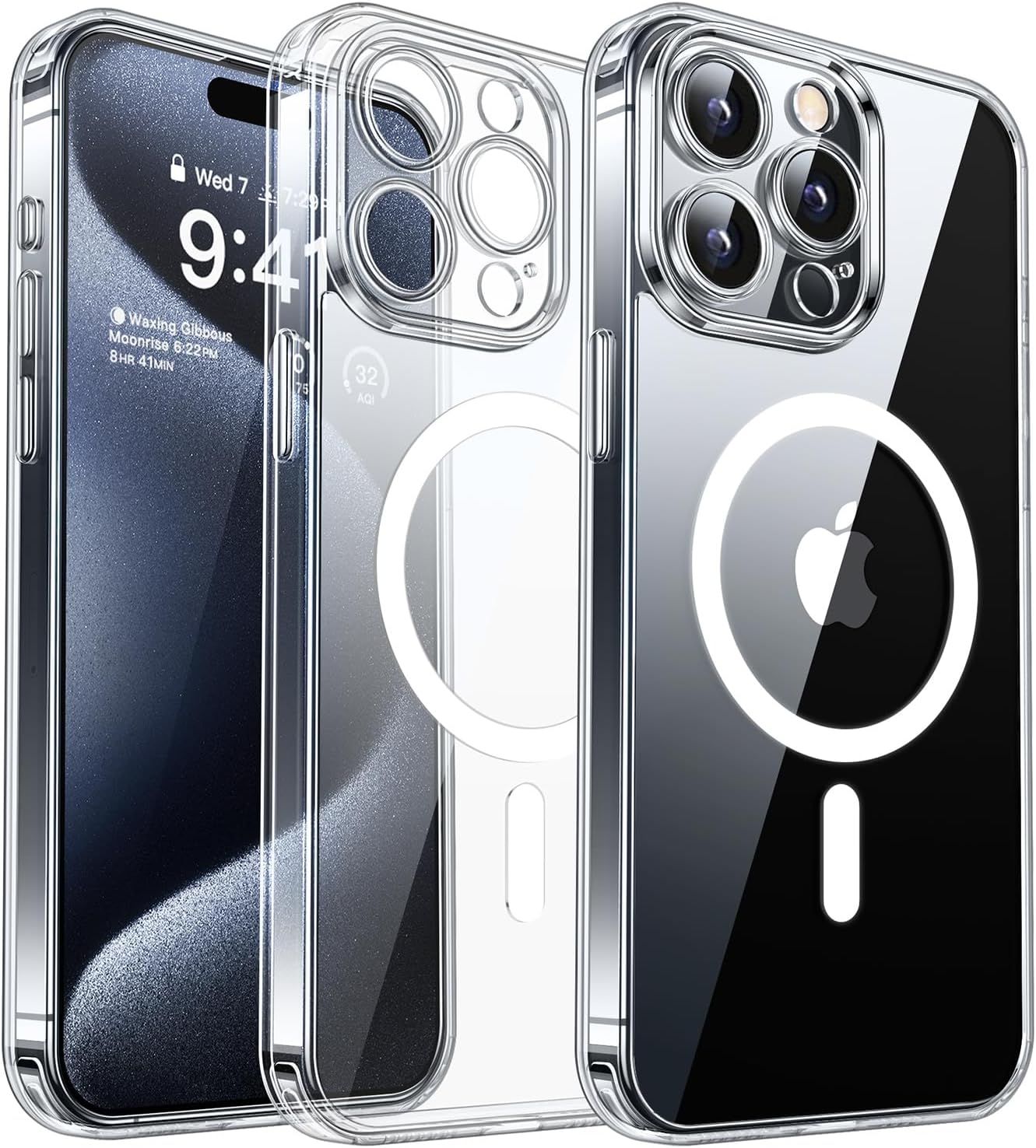 Кейс CANSHN 2024 за iPhone 15 Pro със защита на камерата за Magsafe (най-добра военна защита и магнитна сила) Изключително издръжлив, удароустойчив, прозрачен