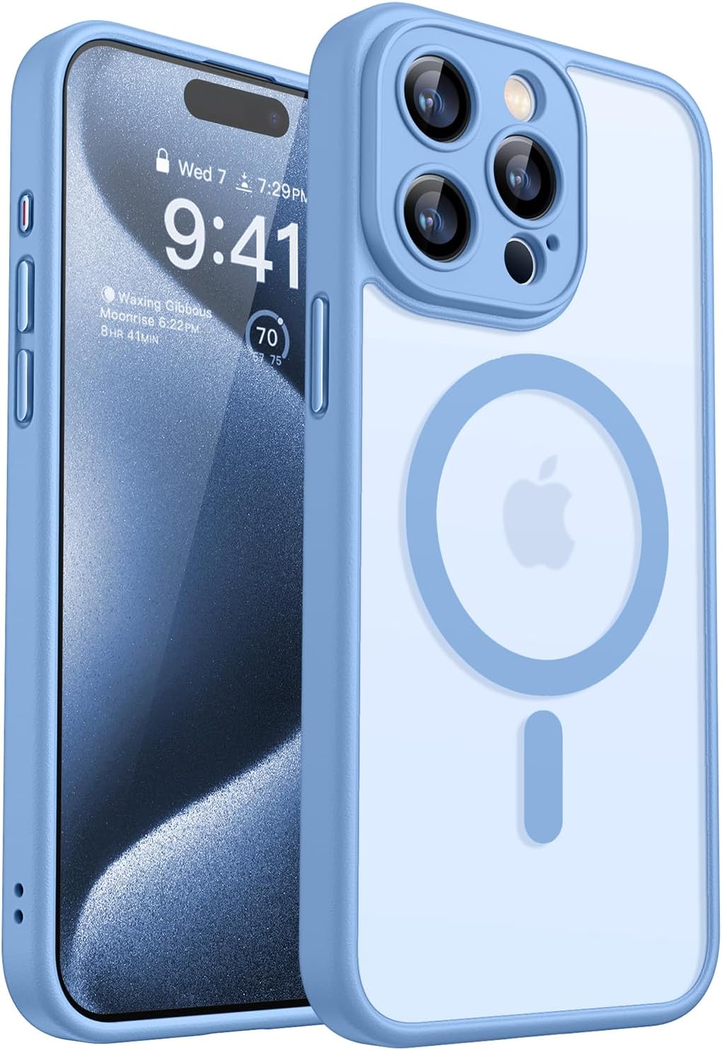 Кейс CANSHN 2024 за iPhone 15 Pro със защита на камерата за Magsafe (най-висока военна защита и магнитна сила), изключително издръжлив, удароустойчив калъф, небесно син