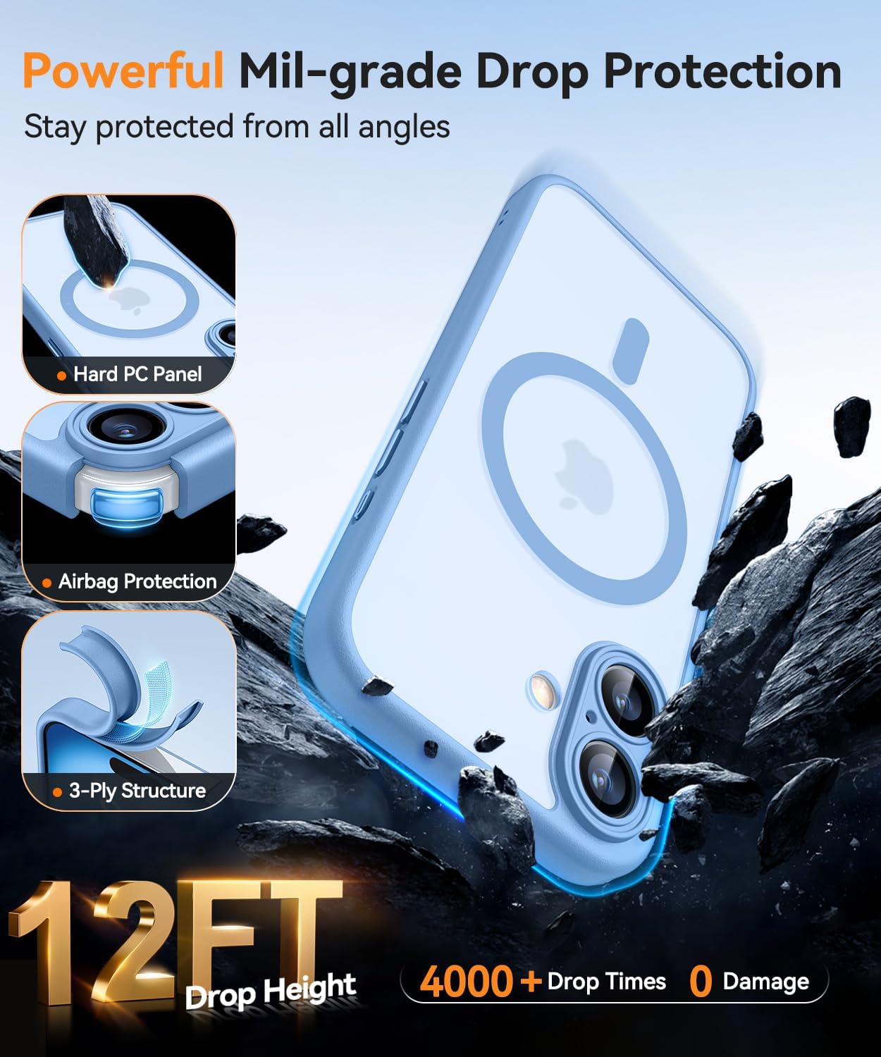 Кейс CANSHN за iPhone 16 Plus със защита на камерата за Magsafe (най-добра военна защита и магнитна сила) Изключително издръжлив, удароустойчив, небесно син