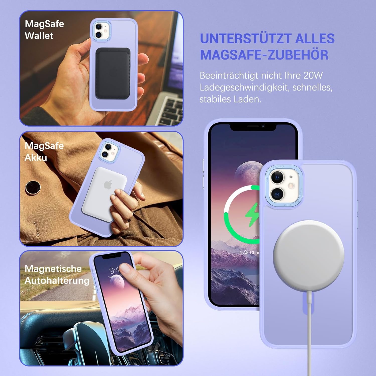 • Съвместим с Mag-Safe: Този калъф MagSafe за iPhone 12/iPhone 12 Pro разполага с вградени магнитни решетки, които здраво закрепват телефона ви към устройството, което прави безжичното магнитно зареждане лесно, без да е необходимо да сваляте калъфа.