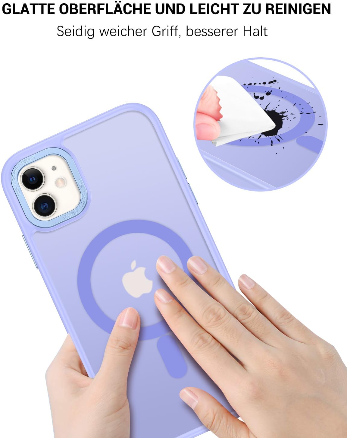 • Прозрачен, матов дизайн: Полупрозрачният гръб предотвратява замърсяването или пожълтяването на калъфа, а логото на вашия iPhone е лесно видимо. Матовата текстура осигурява по-добро сцепление и прави телефона да изглежда по-модерн.