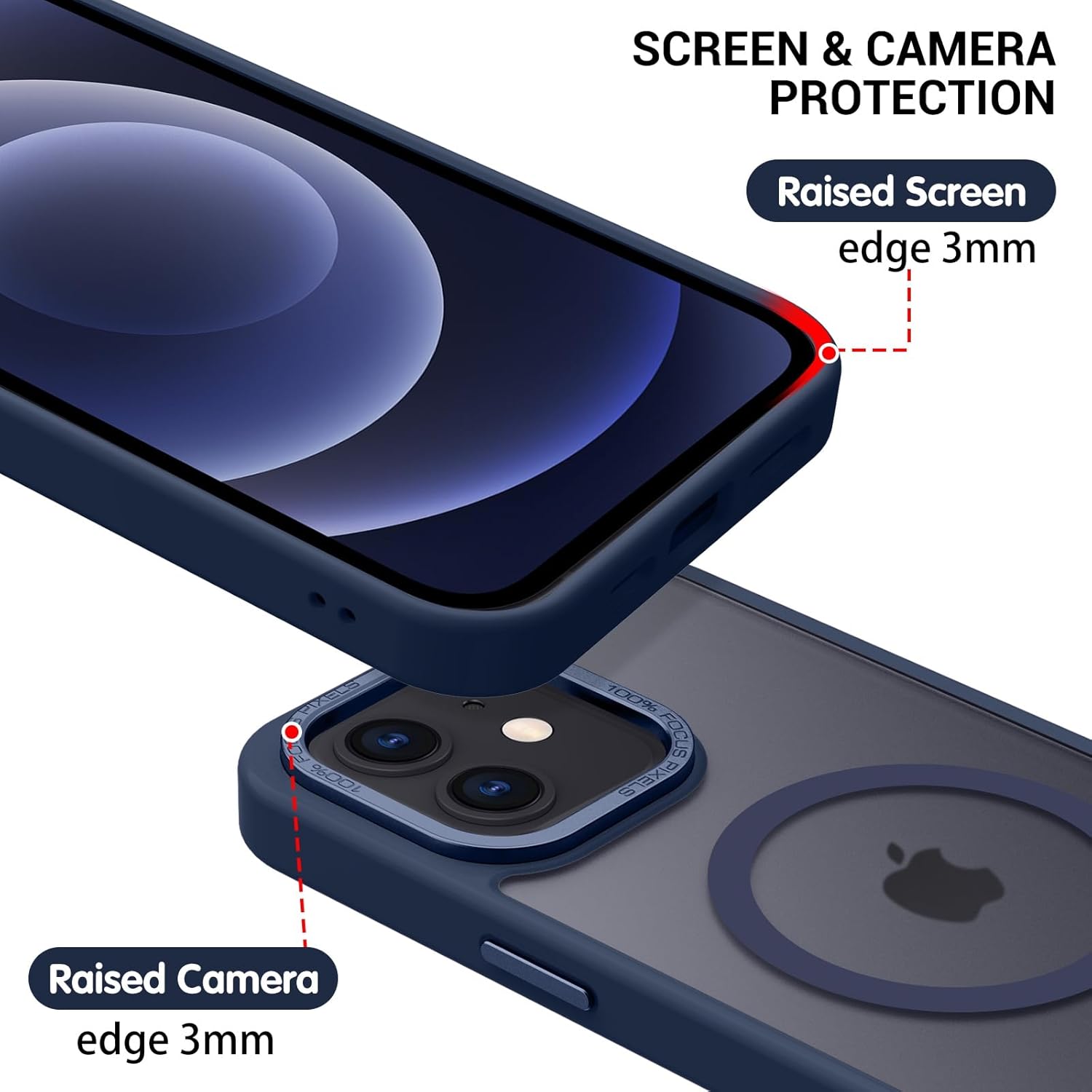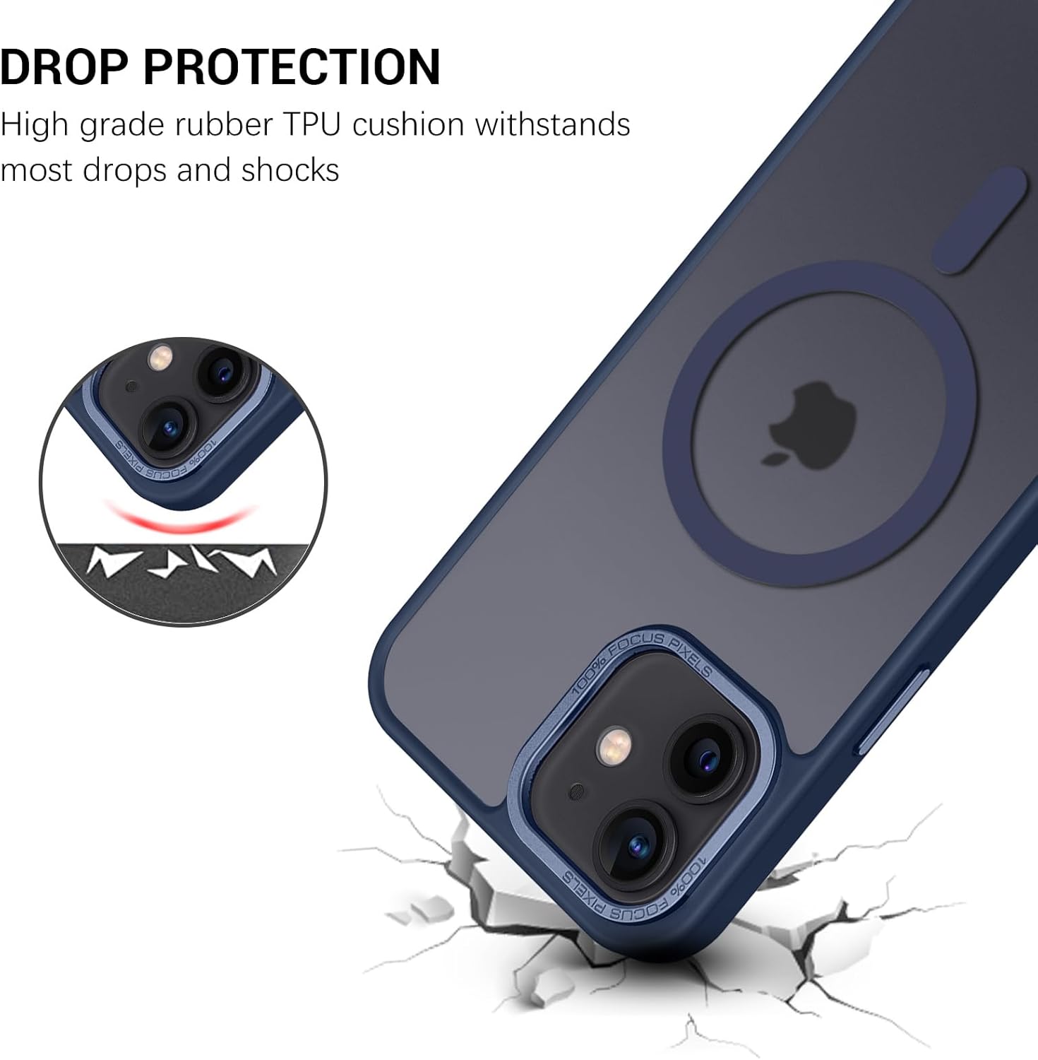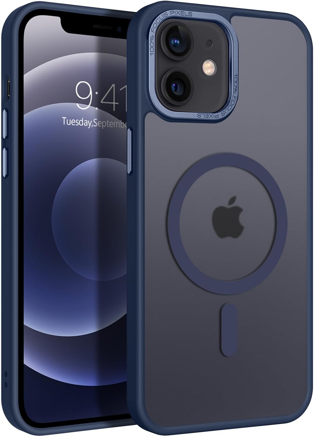 Кейс GaoBao за iPhone 12, iPhone 12 Pro [Съвместим с MagSafe] Прозрачен матов магнитен удароустойчив калъф против пръстови отпечатъци, Калъф за мобилен телефон iPhone 12/iPhone 12 Pro, Тъмносин