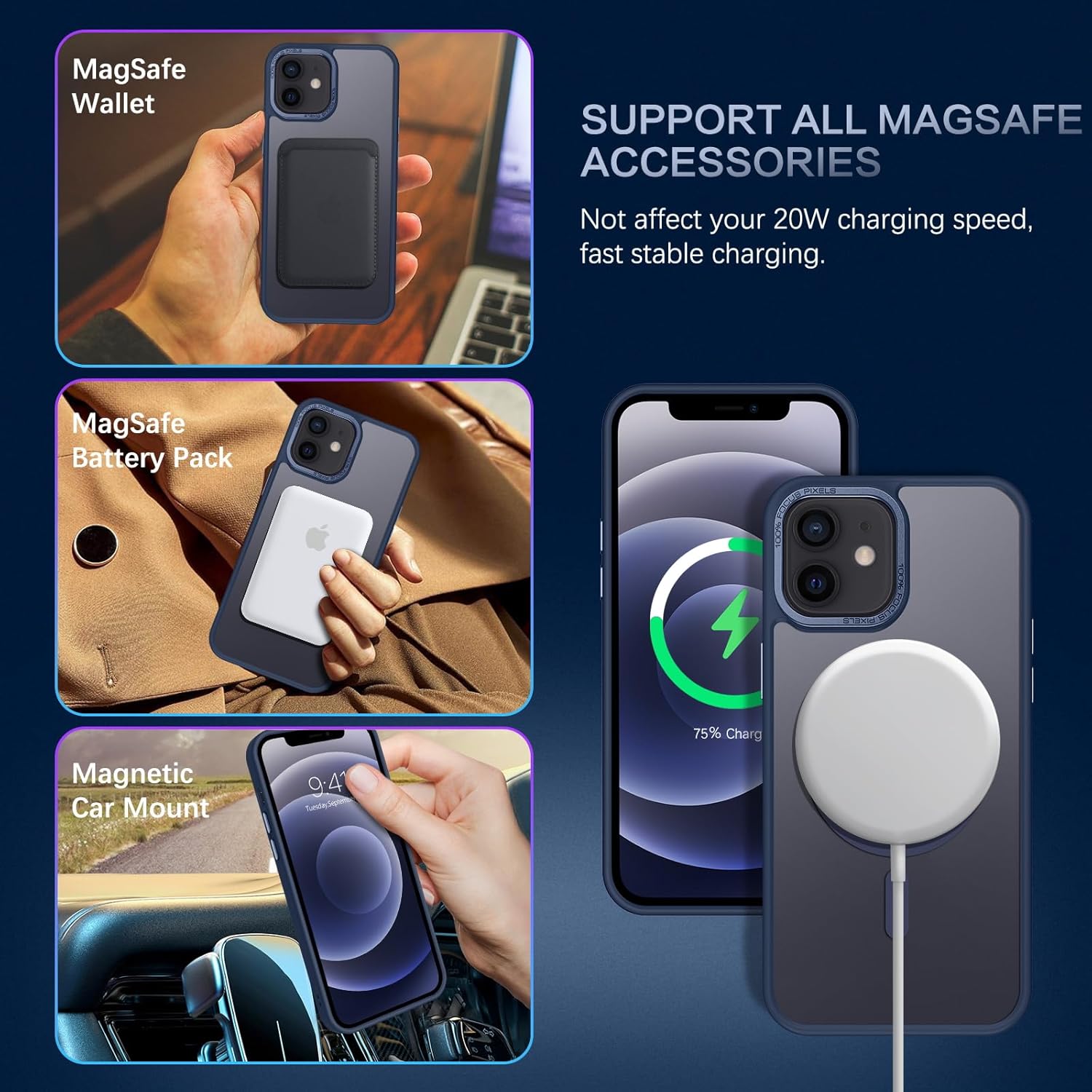 • Съвместим с Mag-Safe: Този калъф MagSafe за iPhone 12/iPhone 12 Pro разполага с вградени магнитни решетки, които здраво закрепват телефона ви към устройството, което прави безжичното магнитно зареждане лесно, без да е необходимо да сваляте калъфа.