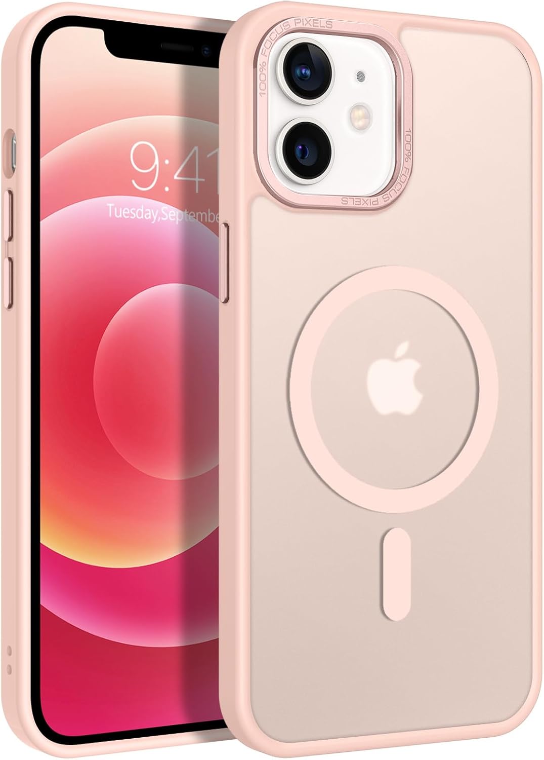Кейс GaoBao за iPhone 12, Кейс за iPhone 12 Pro [Съвместим с MagSafe] Прозрачен матов магнитен удароустойчив калъф против пръстови отпечатъци, Калъф за мобилен телефон iPhone 12/iPhone 12 Pro, Розов