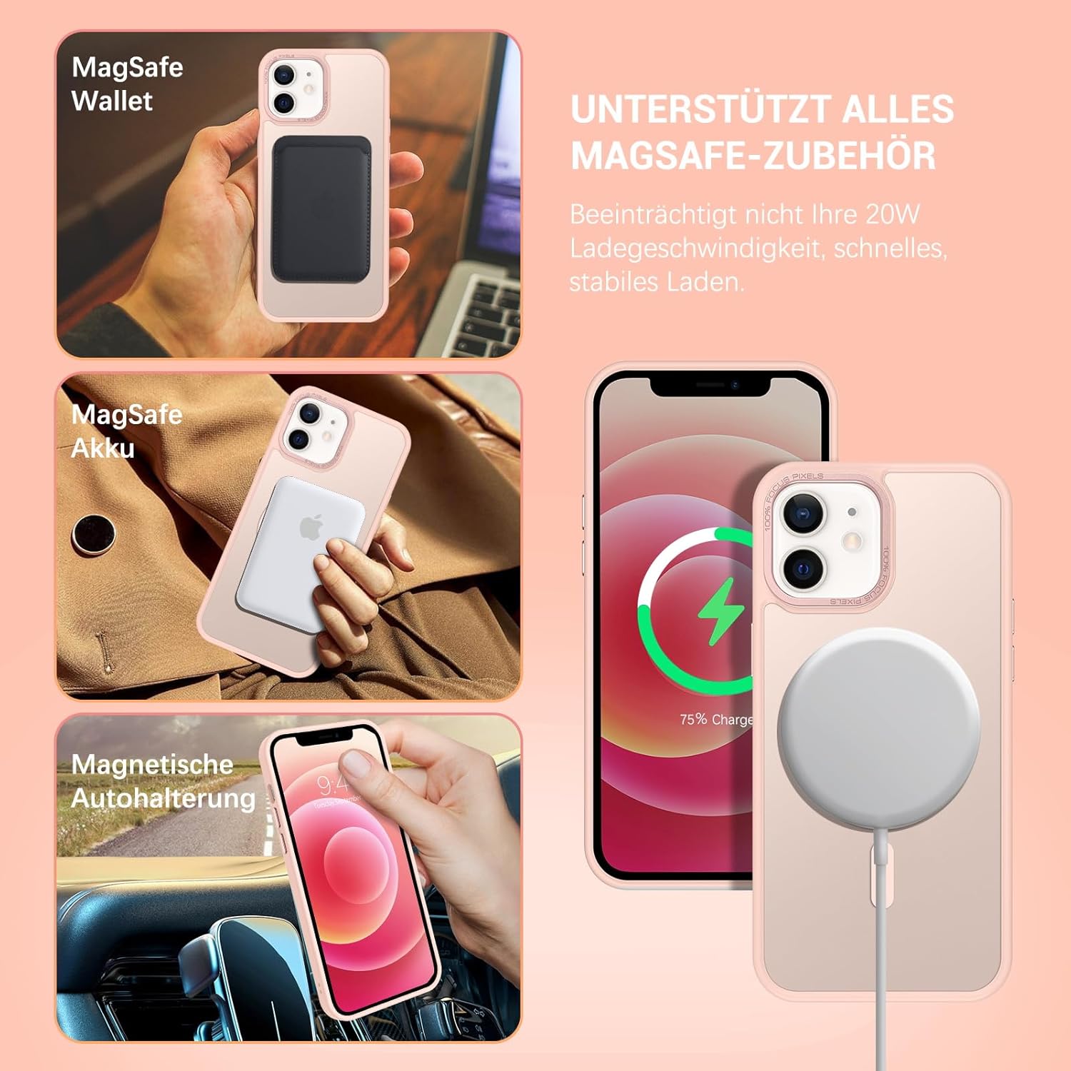 • Съвместим с Mag-Safe: Този калъф MagSafe за iPhone 12/iPhone 12 Pro разполага с вградени магнитни решетки, които здраво закрепват телефона ви към устройството, което прави безжичното магнитно зареждане лесно, без да е необходимо да сваляте калъфа.