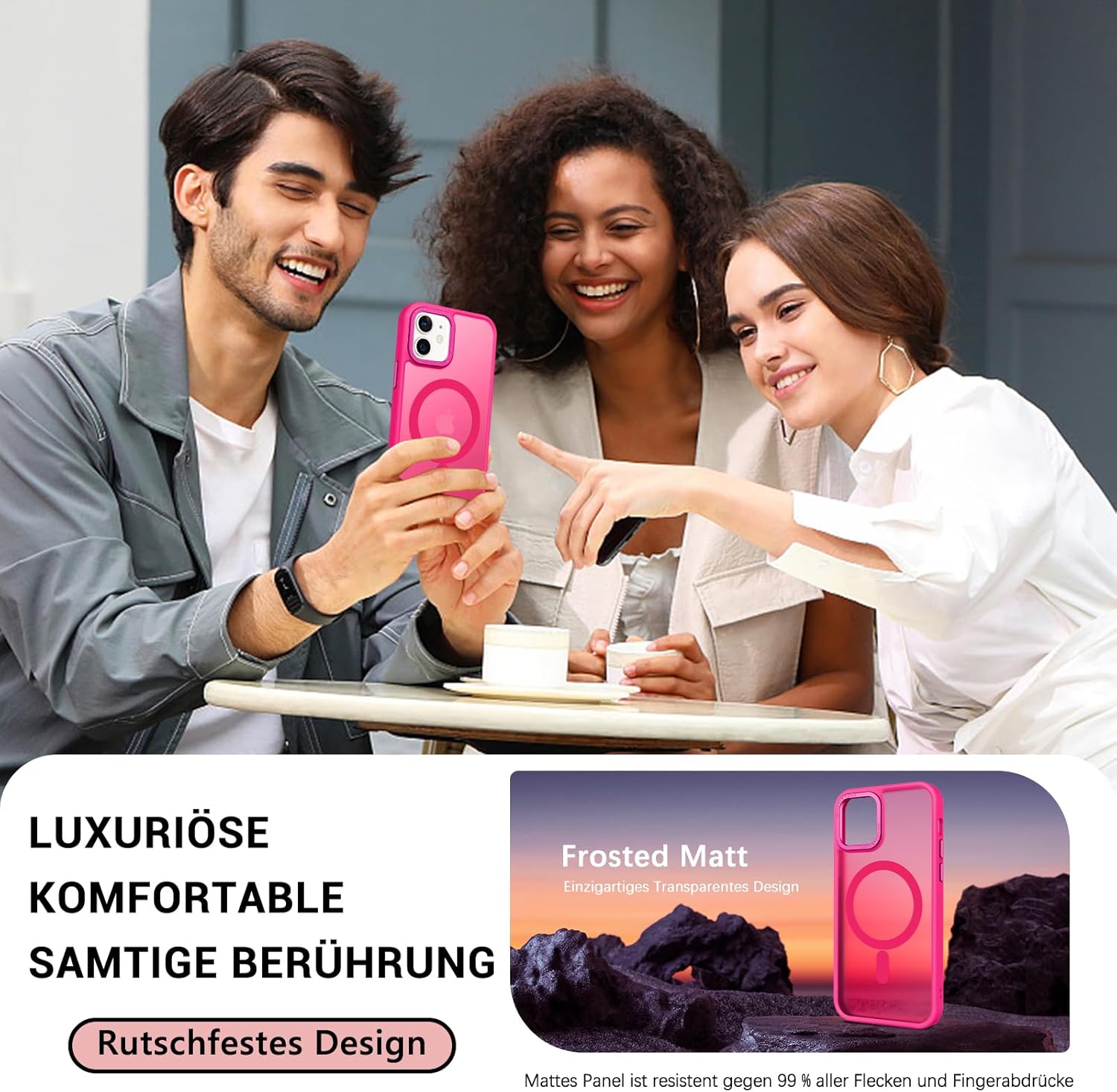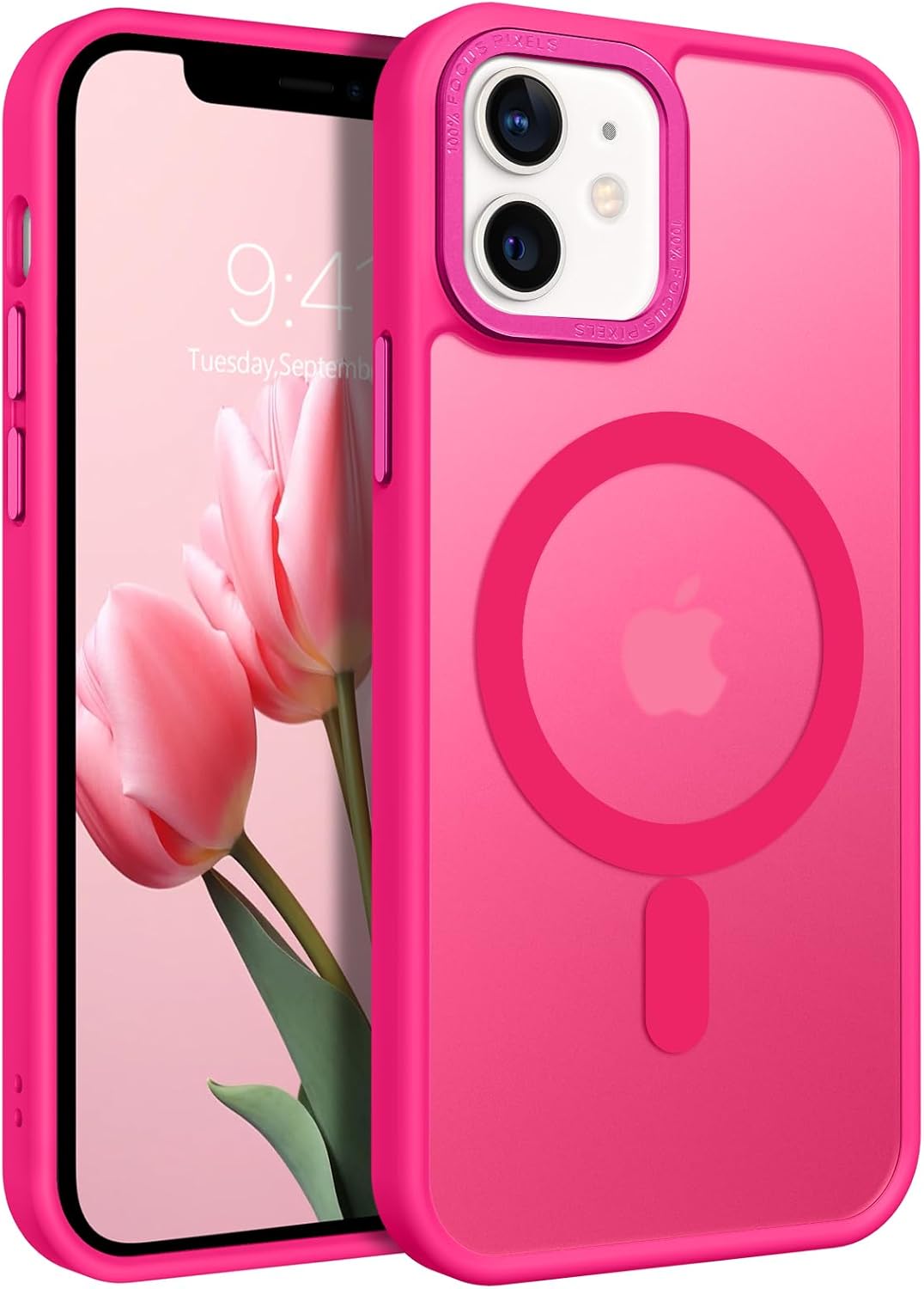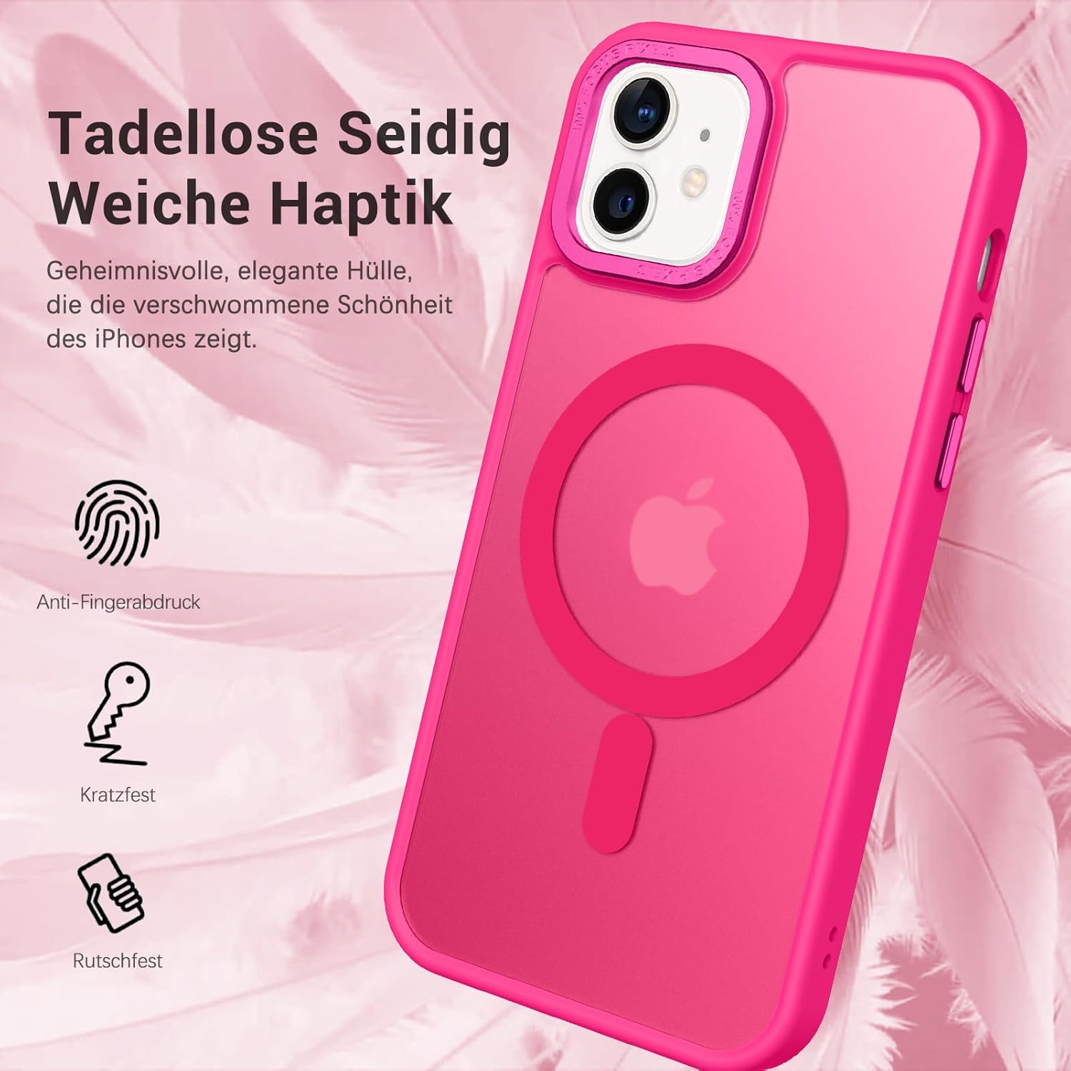 Кейс GaoBao за iPhone 12 Mini [Съвместим с MagSafe] Прозрачен матов магнитен удароустойчив калъф за мобилен телефон против пръстови отпечатъци за iPhone 12 Mini, розовочервен