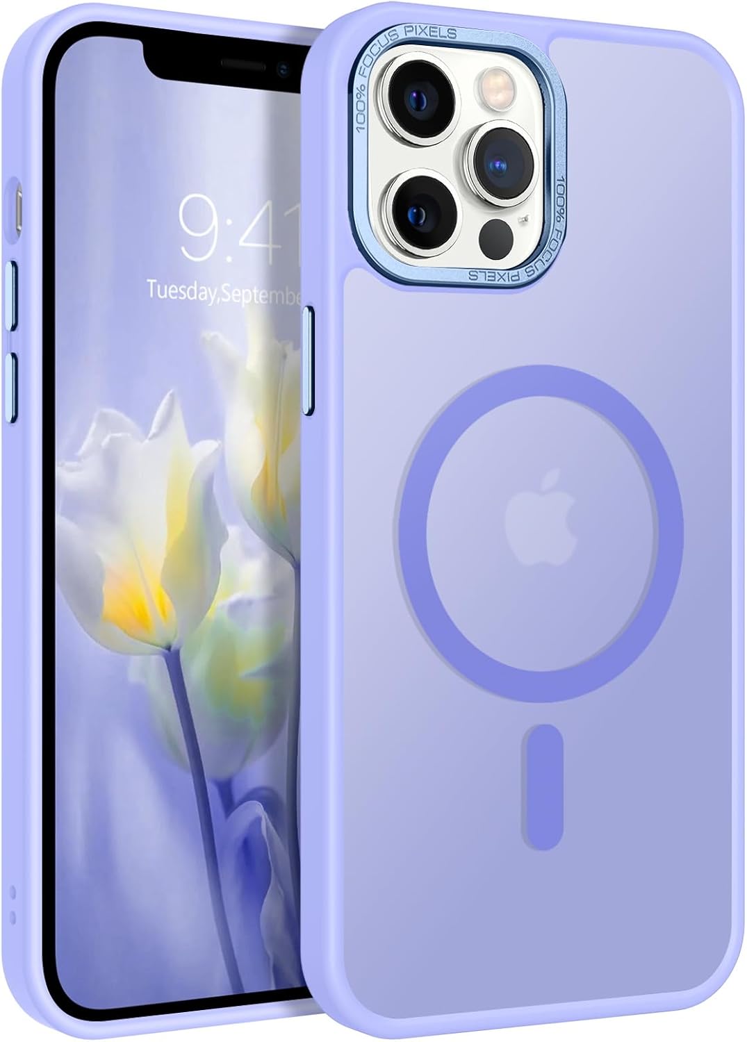 Кейс GaoBao за iPhone 12 Pro Max, Калъф за мобилен телефон iPhone 12 Pro Max [Съвместим с MagSafe] Прозрачен матов магнитен удароустойчив калъф против пръстови отпечатъци за iPhone 12 Pro Max, Лавандулов