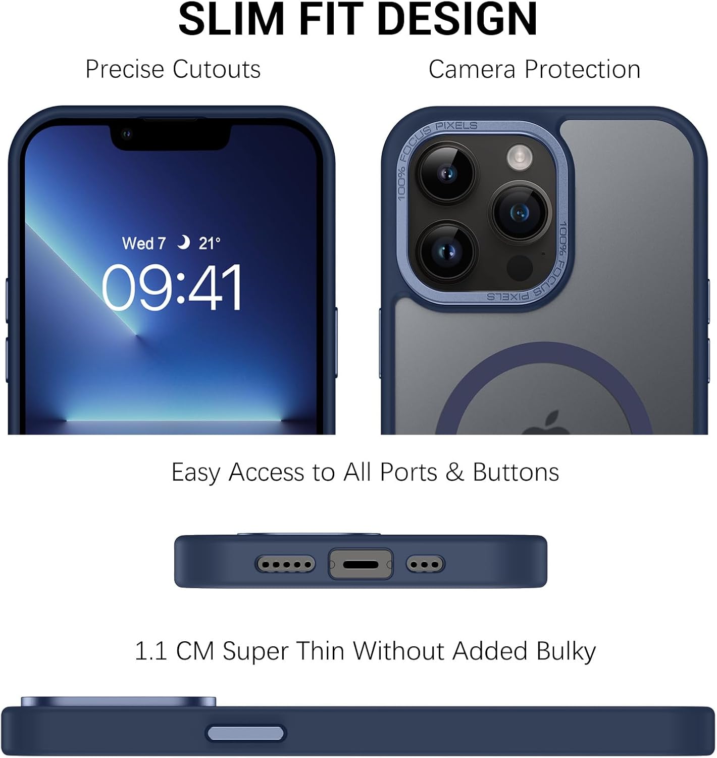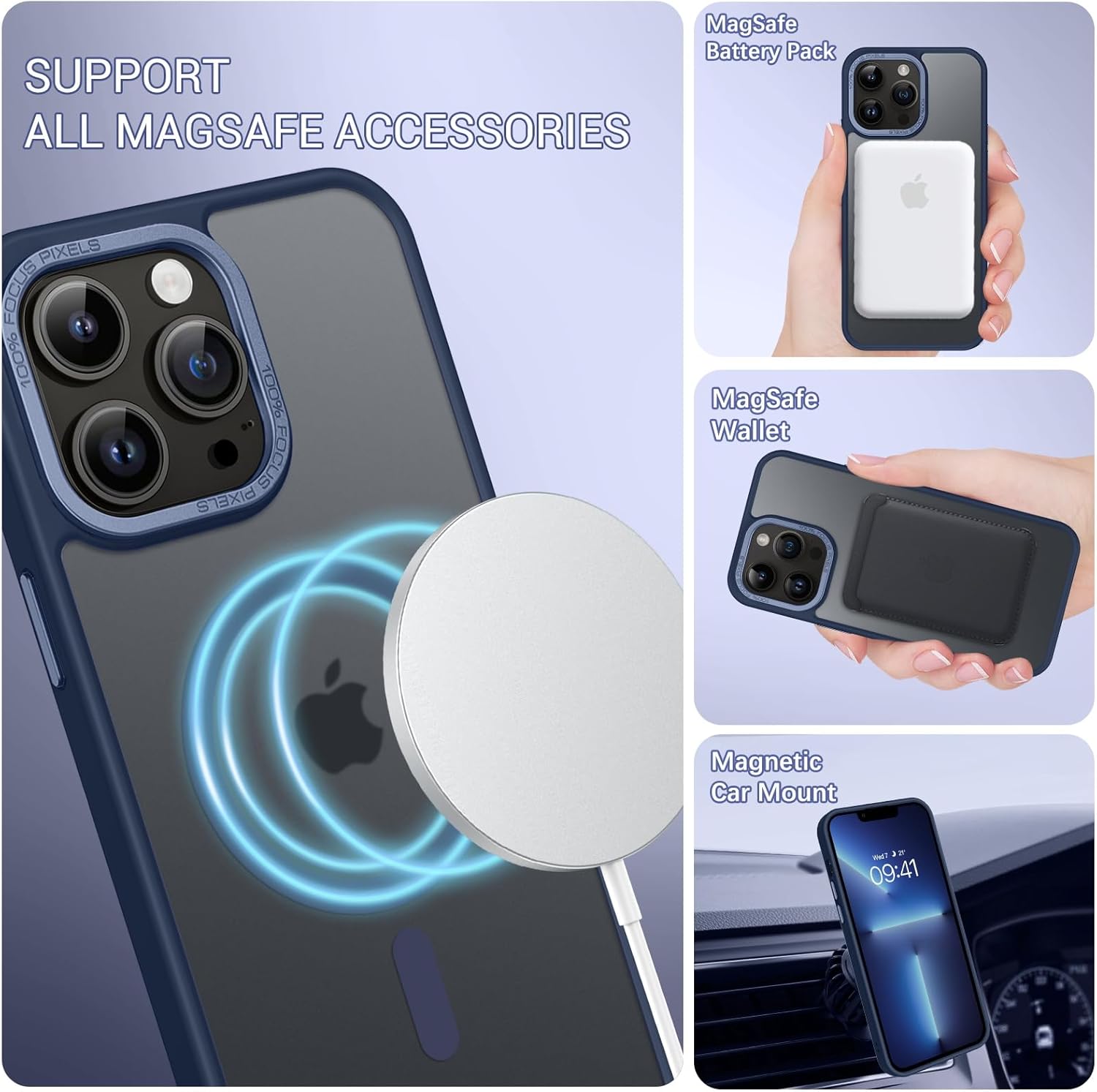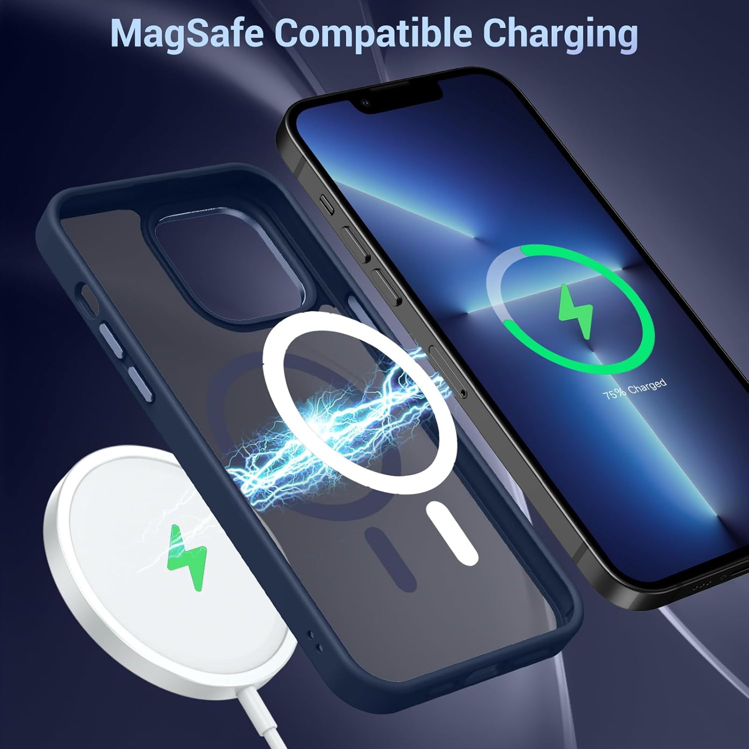 Кейс GaoBao за iPhone 13 Pro, Калъф за мобилен телефон iPhone 13 Pro [Съвместим с MagSafe] Прозрачен матов магнитен удароустойчив калъф против пръстови отпечатъци за iPhone 13 Pro 6.1 инча, тъмносин