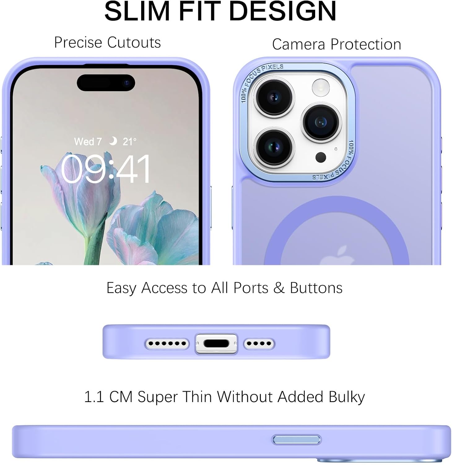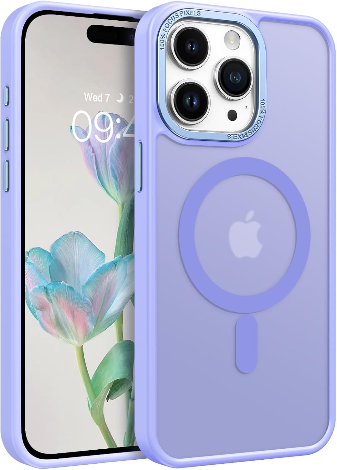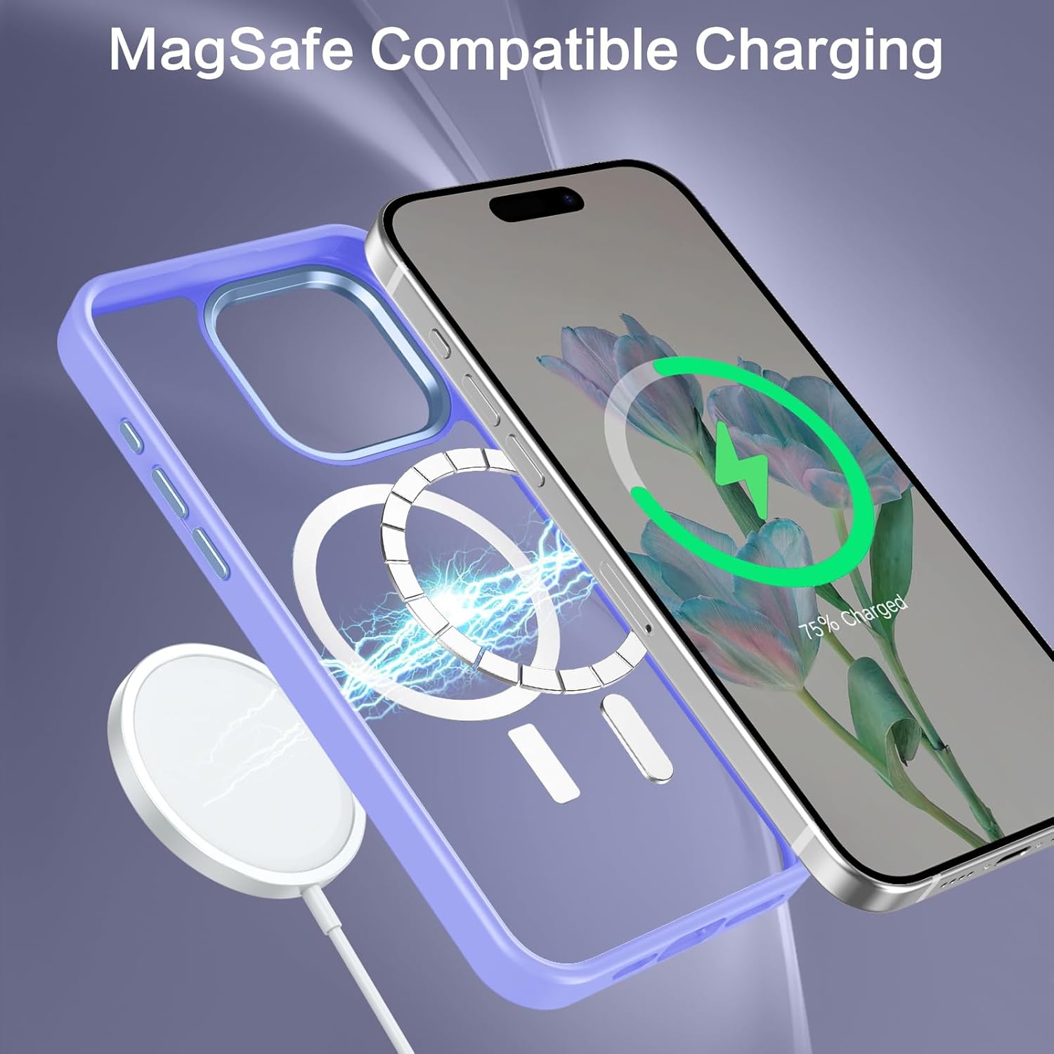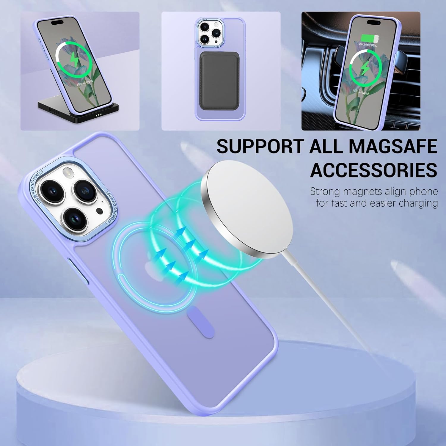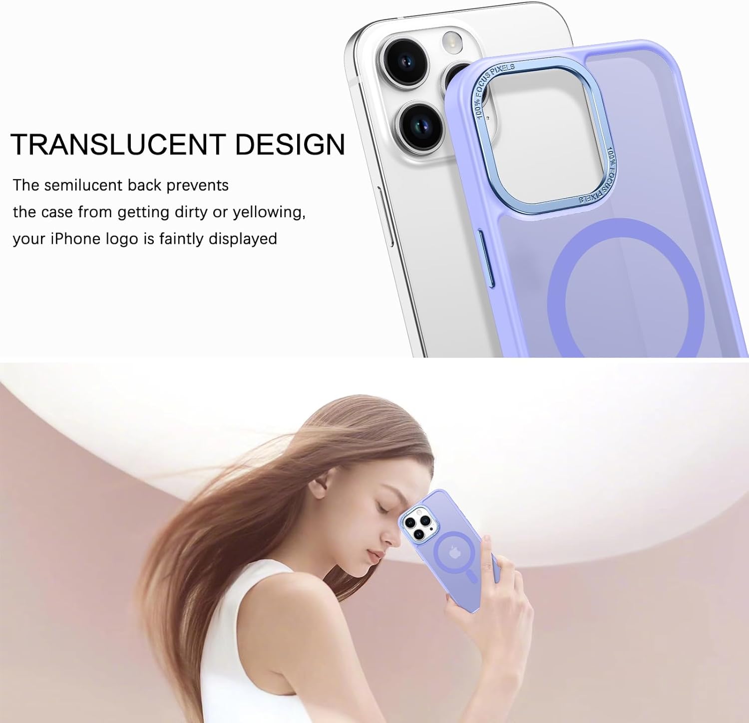 Кейс GaoBao за iPhone 15 Pro Max, Калъф за мобилен телефон iPhone 15 Pro Max [Съвместим с MagSafe] Прозрачен матов магнитен удароустойчив калъф против пръстови отпечатъци за iPhone 15 Pro Max, Лавандулов