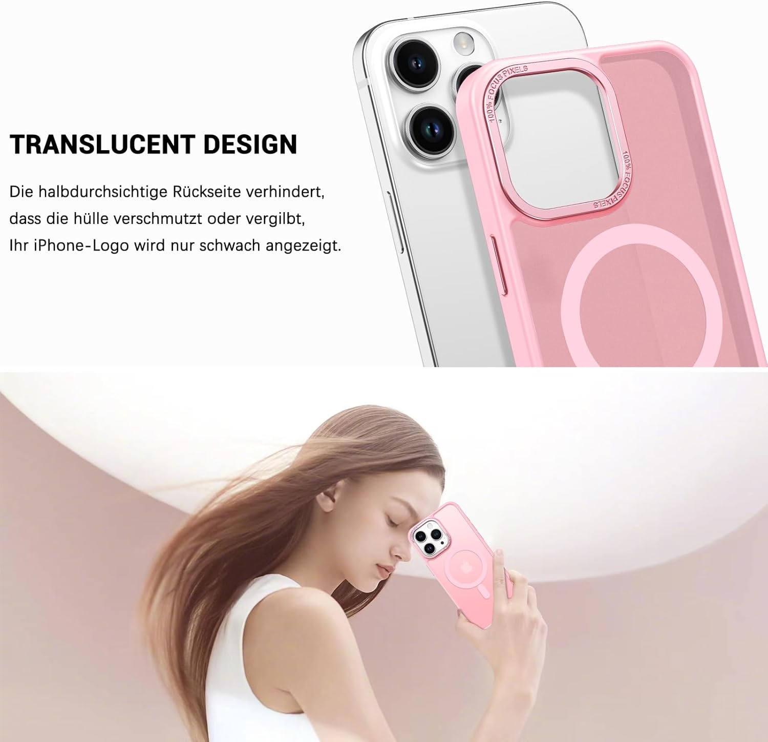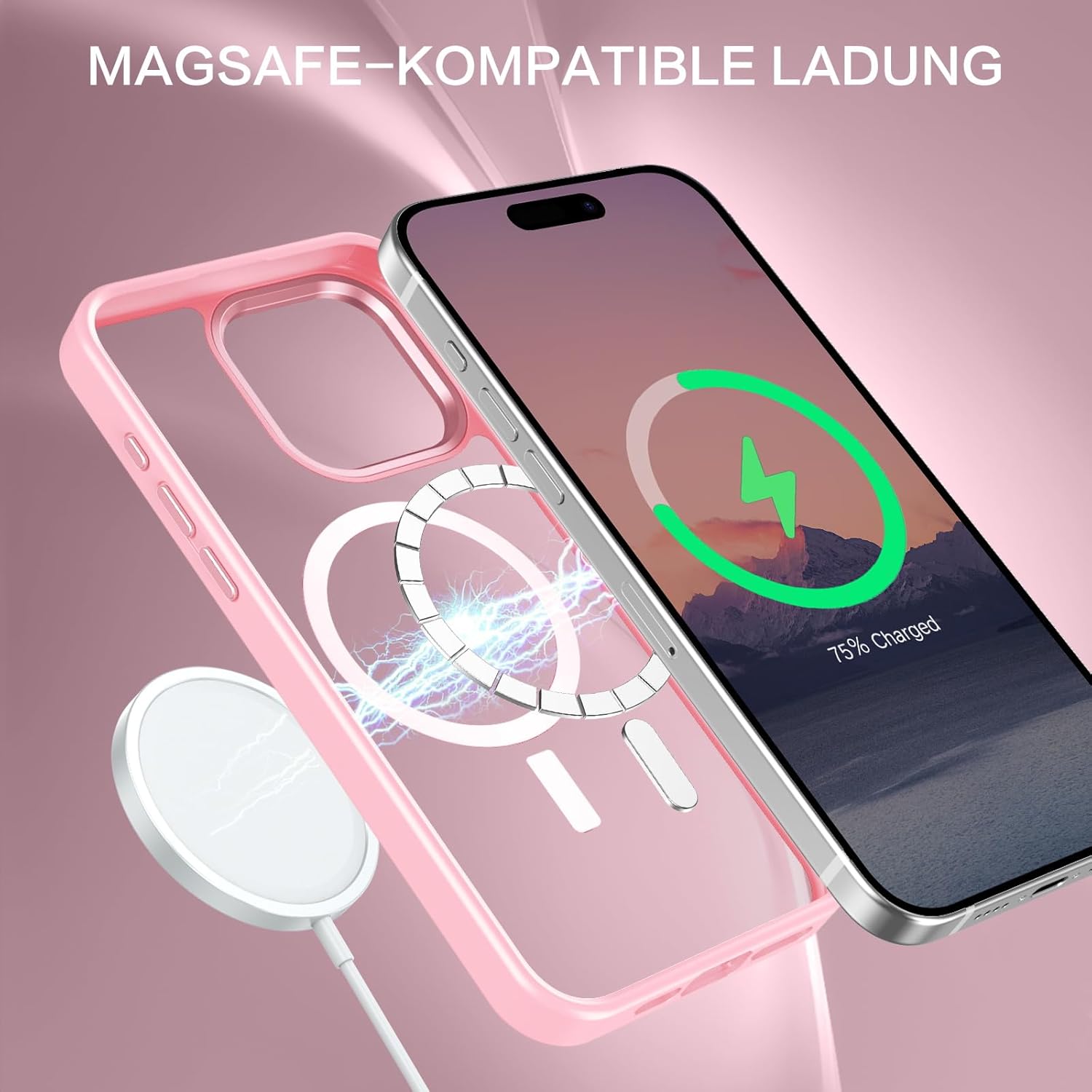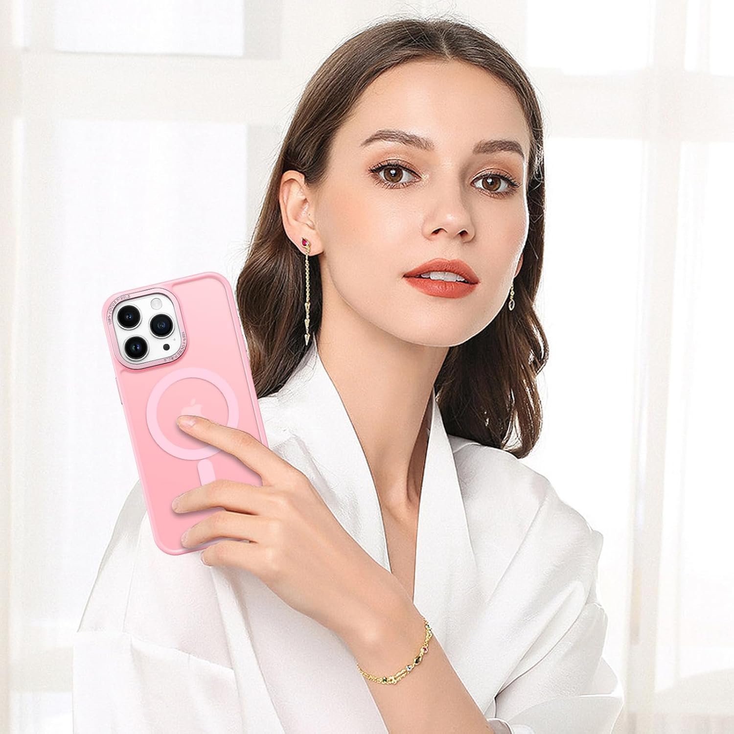 Кейс GaoBao за iPhone 15 Pro Max, Калъф за мобилен телефон iPhone 15ProMax [Съвместим с MagSafe] Прозрачен матов магнитен удароустойчив калъф против пръстови отпечатъци за iPhone 15 Pro Max, светло розов