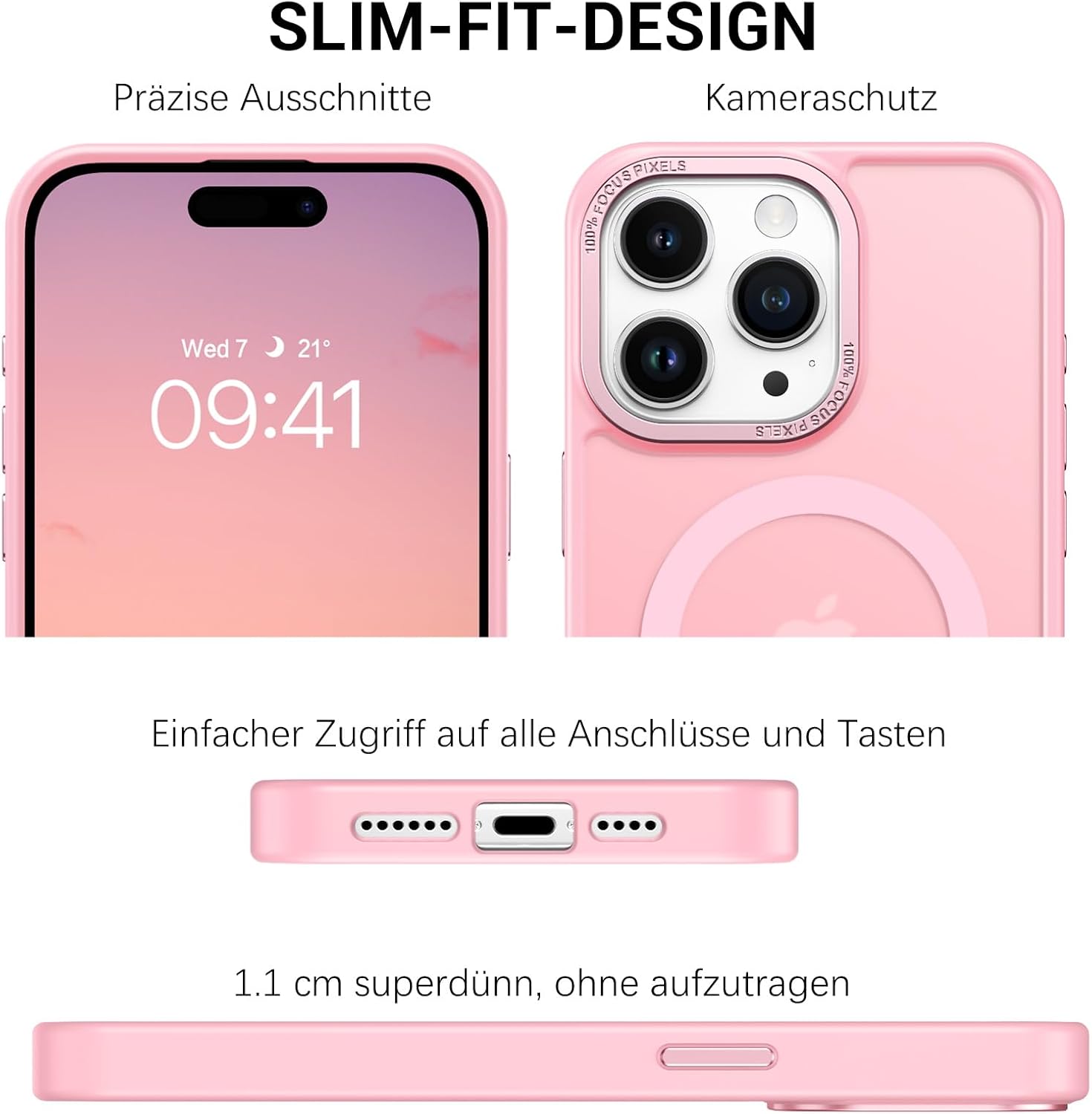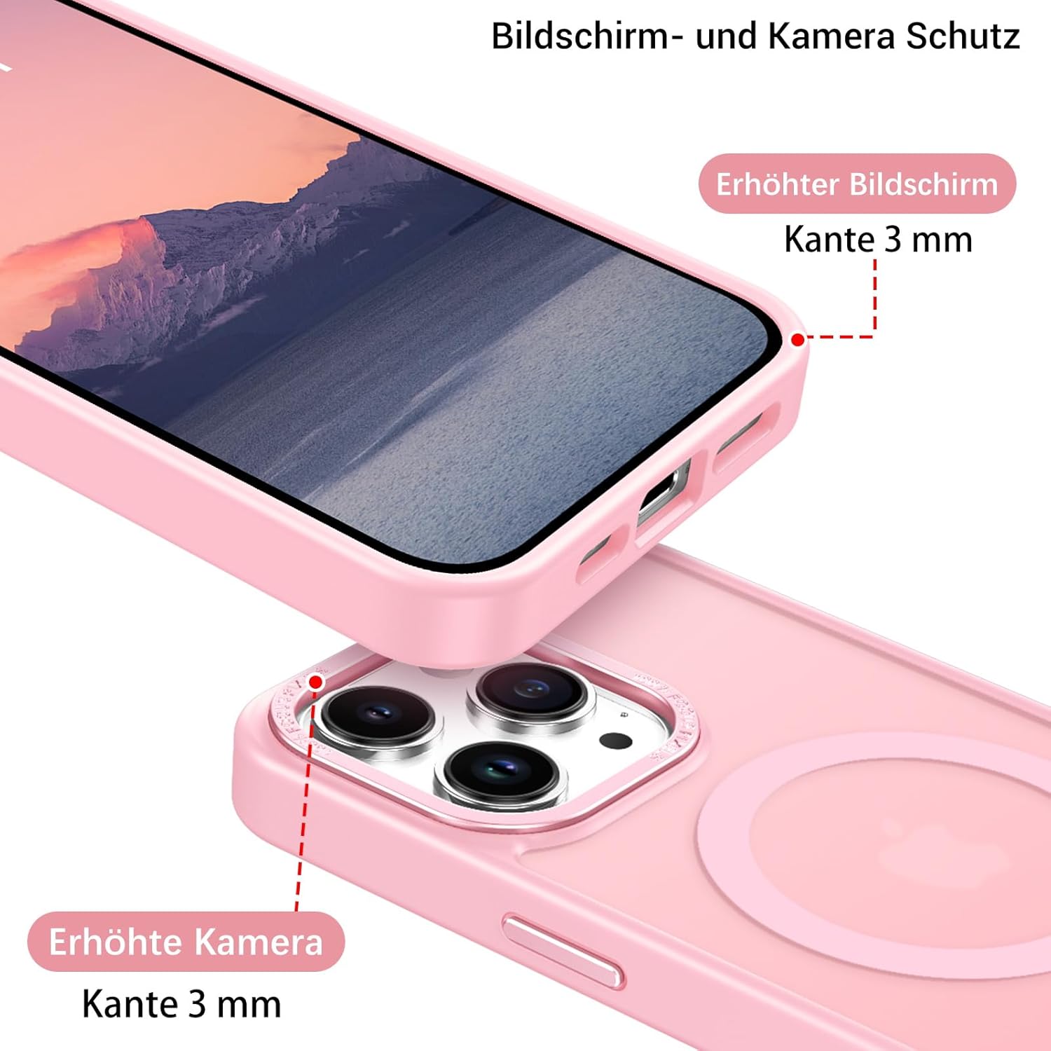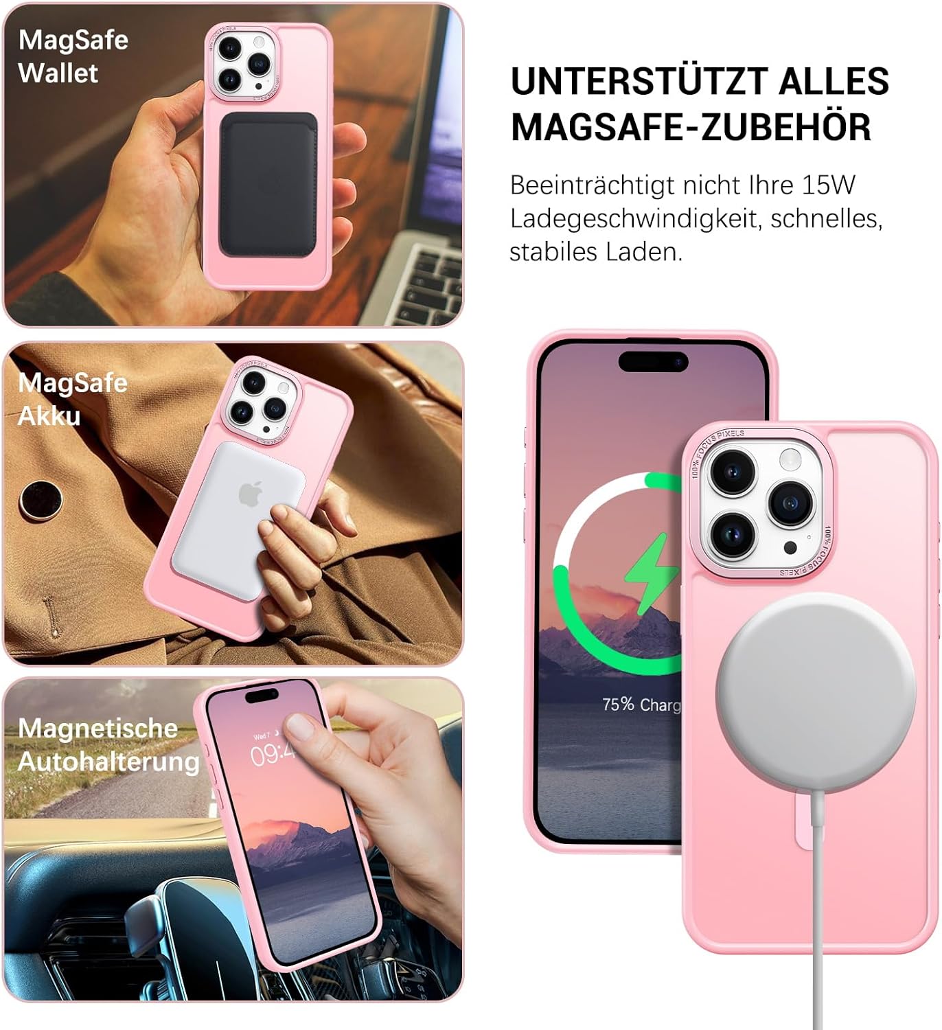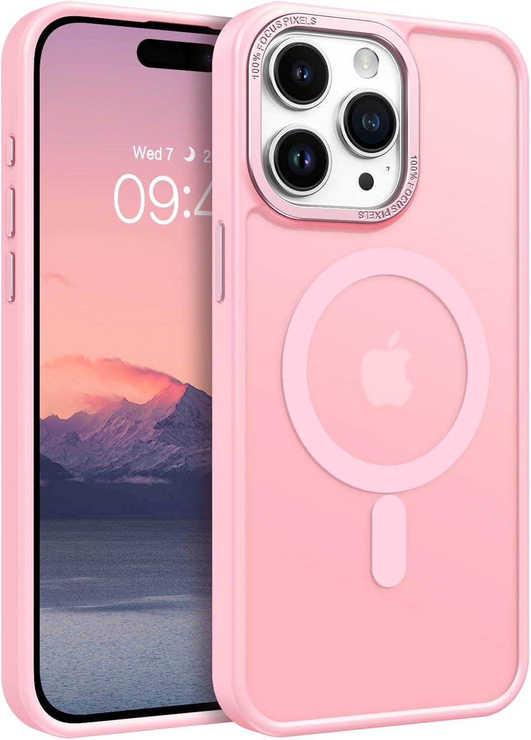 Кейс GaoBao за iPhone 15 Pro Max, Калъф за мобилен телефон iPhone 15ProMax [Съвместим с MagSafe] Прозрачен матов магнитен удароустойчив калъф против пръстови отпечатъци за iPhone 15 Pro Max, светло розов