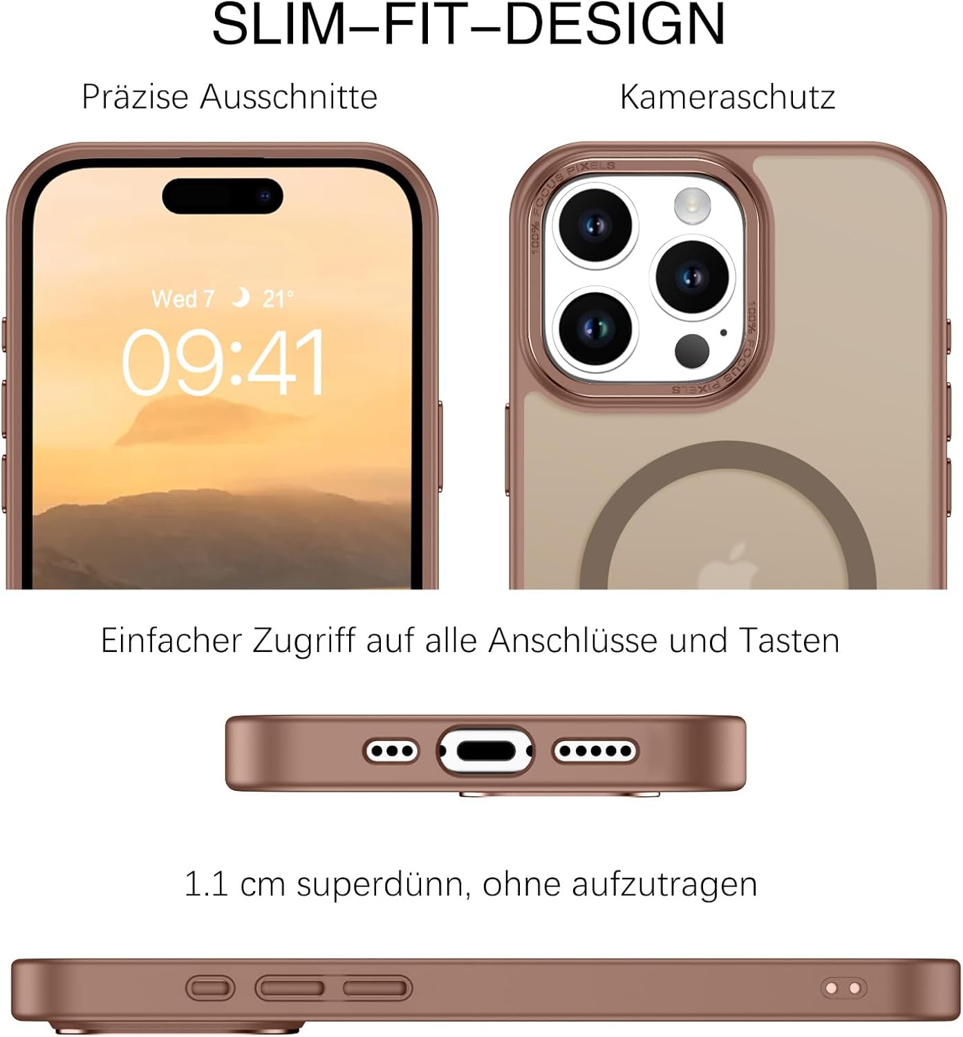 • Прозрачен, матов дизайн: Полупрозрачният гръб предотвратява замърсяването или пожълтяването на калъфа, а логото на вашия iPhone е лесно видимо. Матовата текстура осигурява по-добро сцепление и прави телефона да изглежда по-модерн.