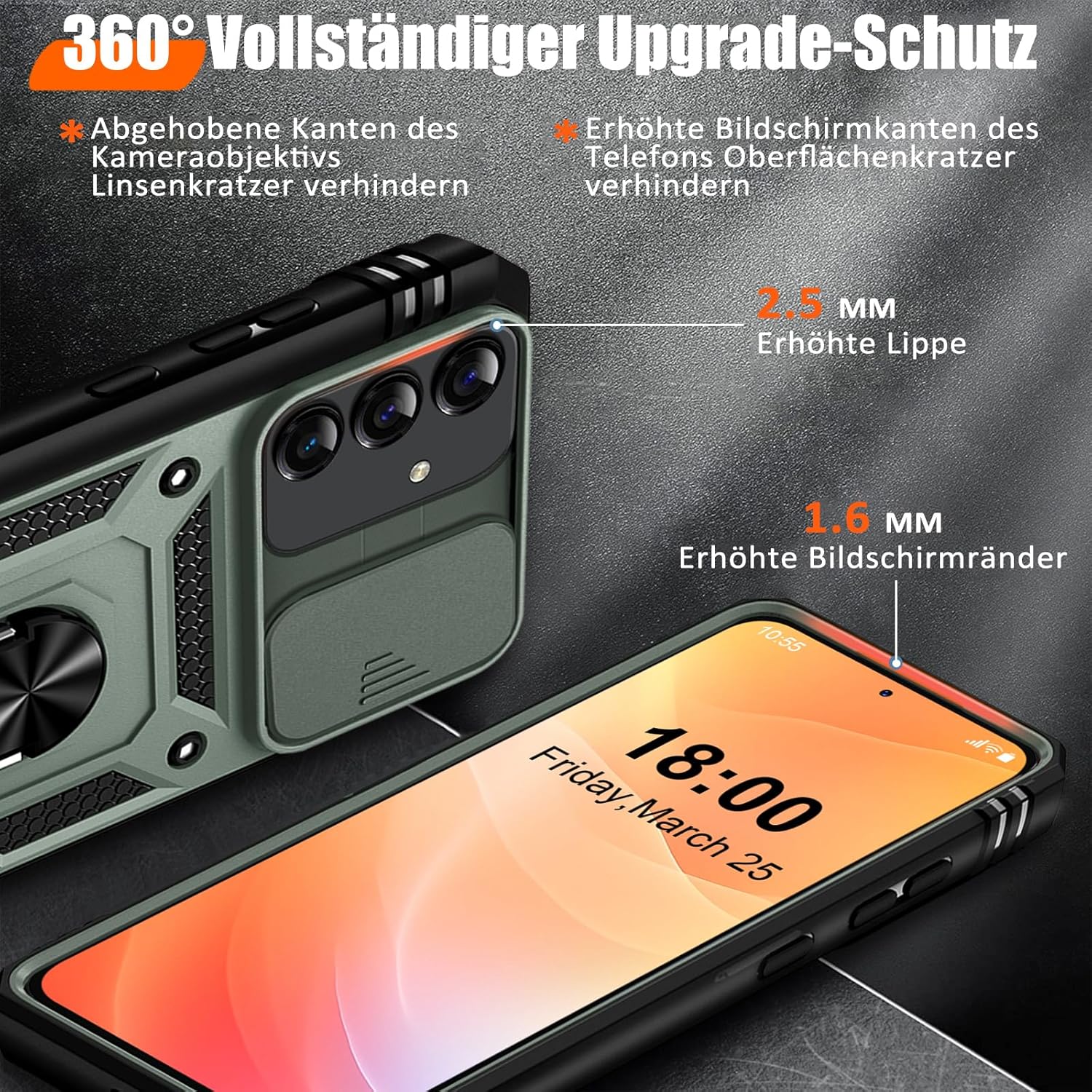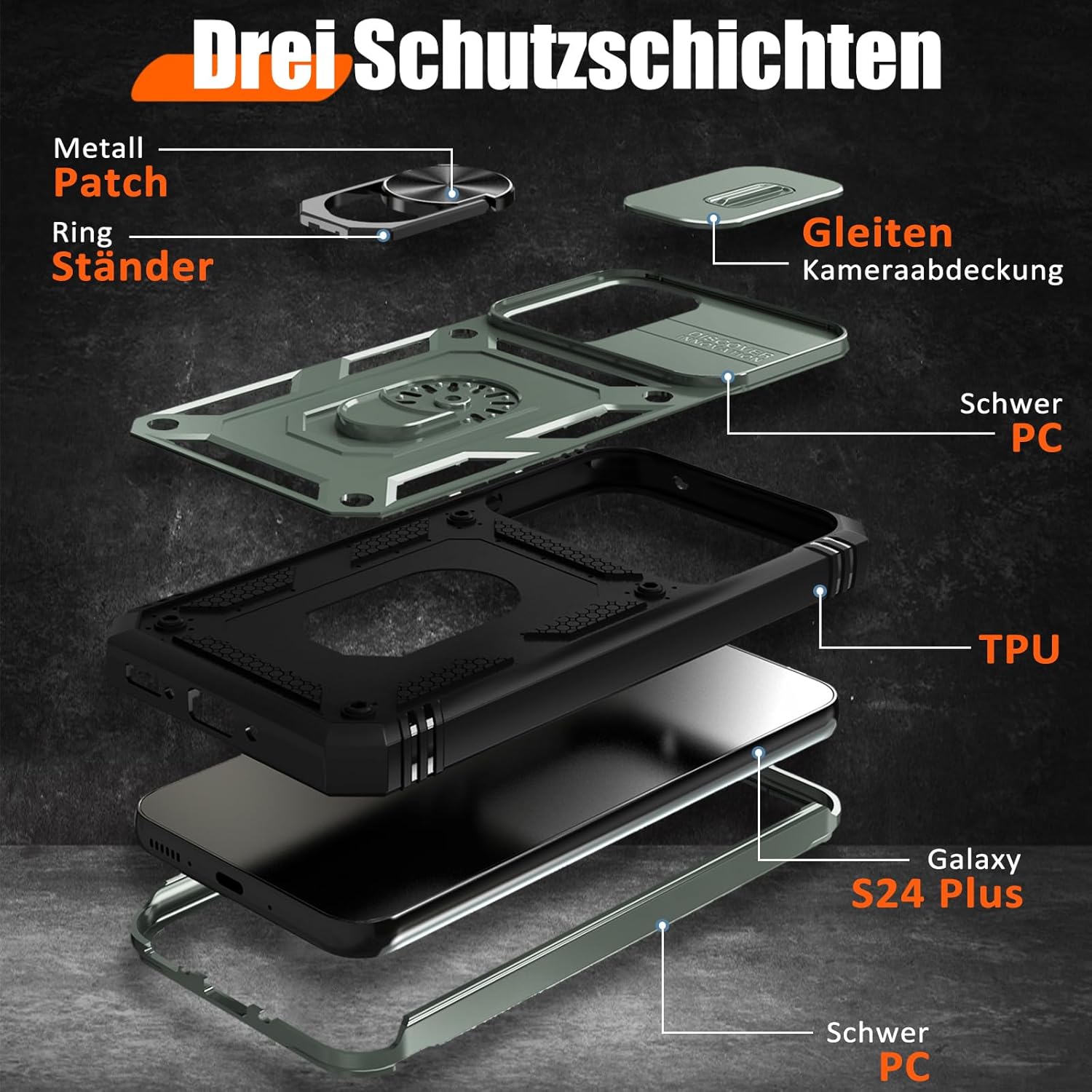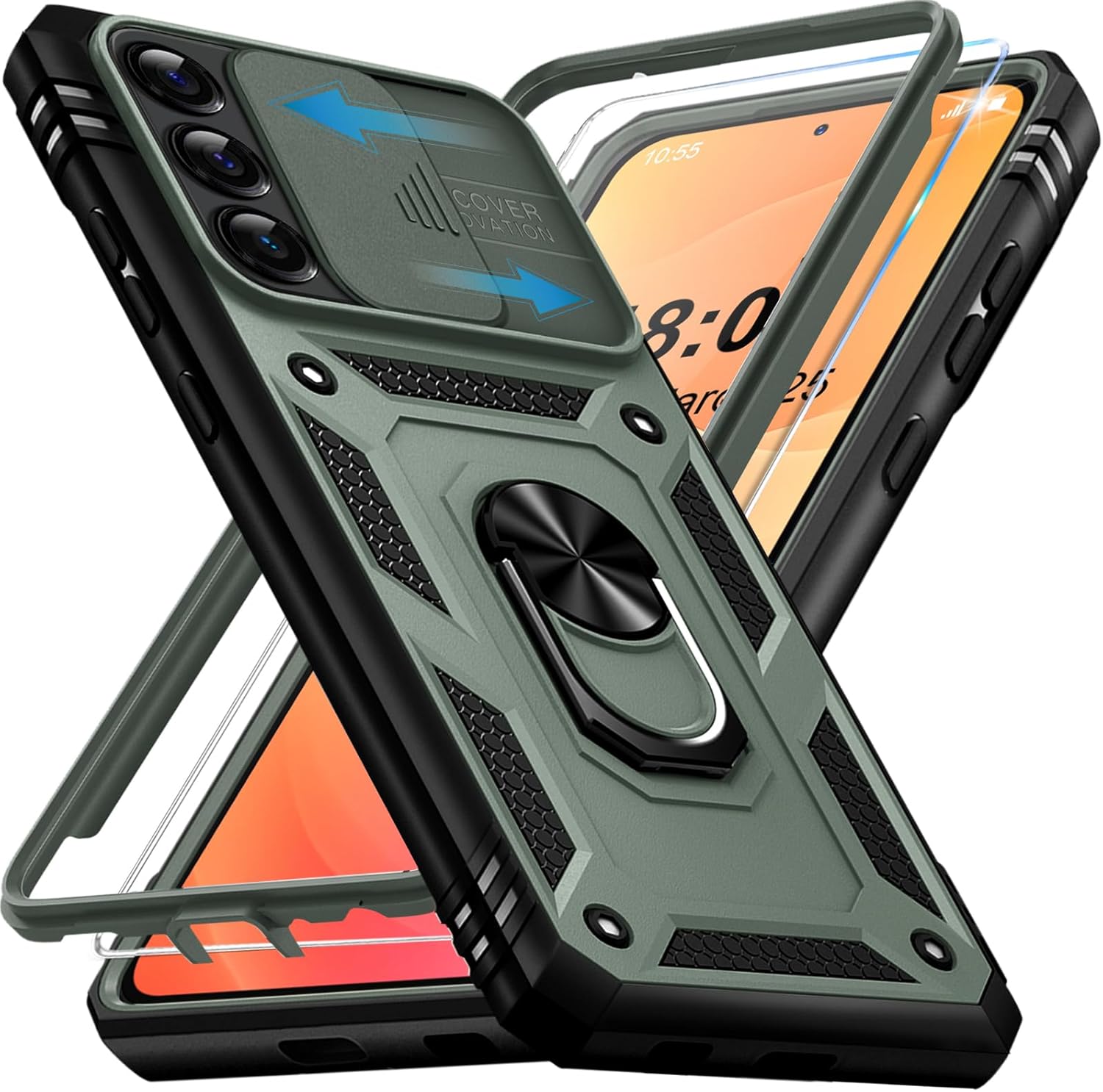 Кейс Giyer с протектор за екран за Samsung Galaxy S24 Plus, 5G кейс със защита на камерата, 360° метална пръстеновидна стойка, удароустойчив защитен калъф, зелен