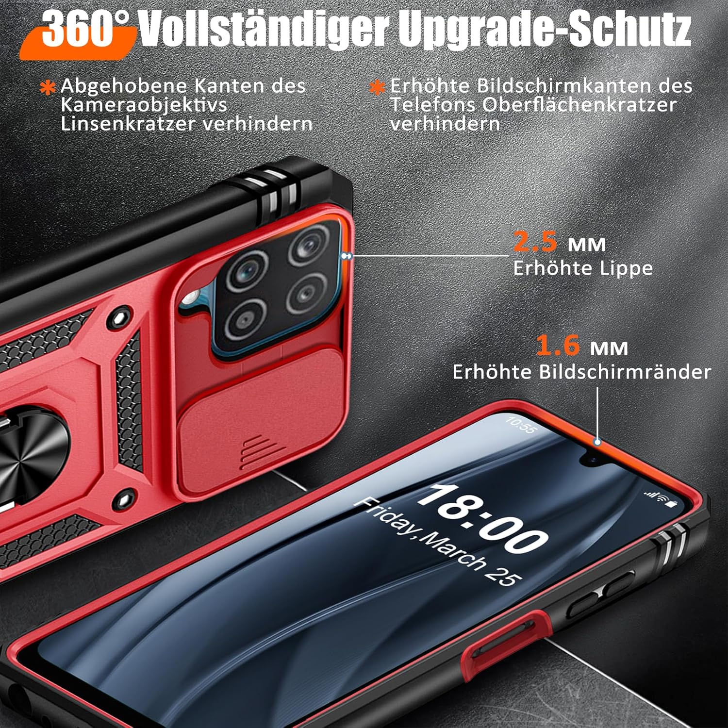 • Защита от военно ниво: калъфът за Galaxy A53 5G използва уникален TPU с ръбове в комбинация с вградени PC 2-в-1 затваряния, за да предпази телефона ви от падания, драскотини и удари. Защитата от военно ниво с технология с въздушна възглавница осигурява цялостна защита за вашето оборудване. Дизайн с плъзгач на обектива: Повдигната рамка за защита на камерата. Капачката покрива обектива и го предпазва от прах и драскотини.