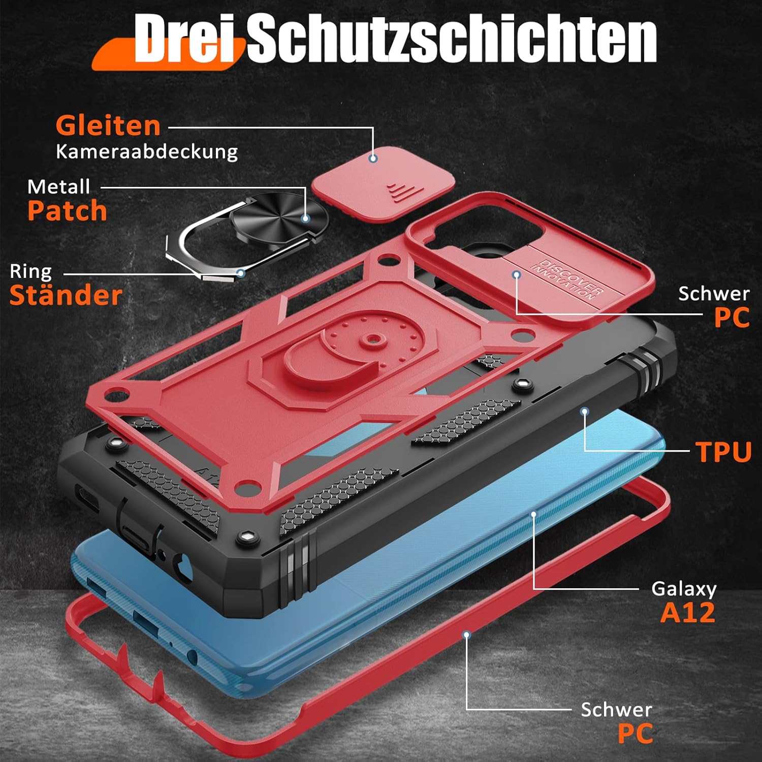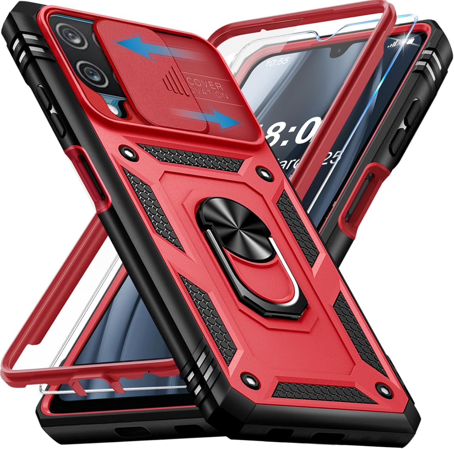 Кейс Giyer за Samsung Galaxy A12 с протектор за екрана, калъф за мобилен телефон Galaxy A12 5G със защита на камерата, слот за карта, 360° метален пръстен, стойка, удароустойчив, защитен калъф за Samsung A12 6.5 инча