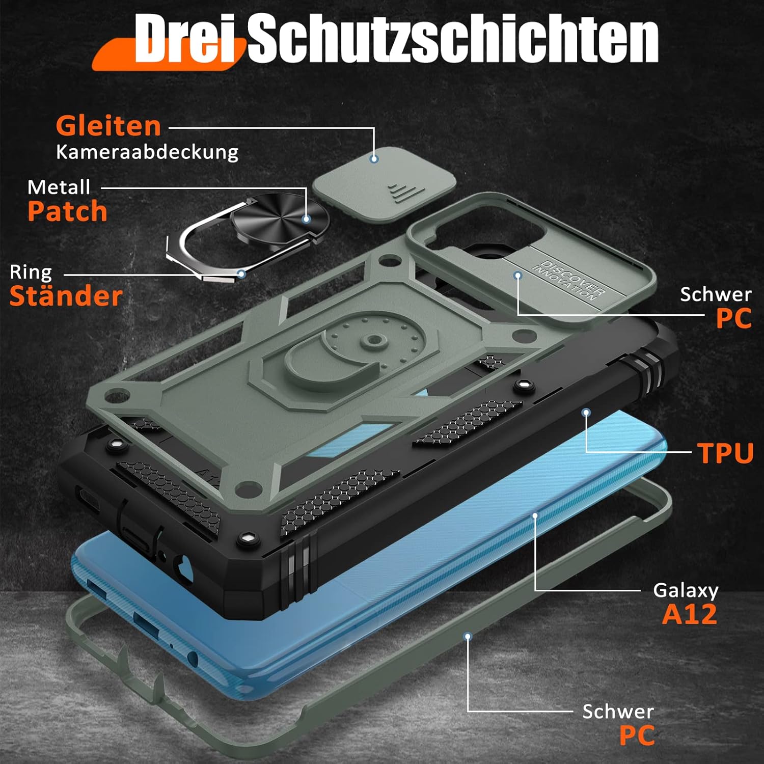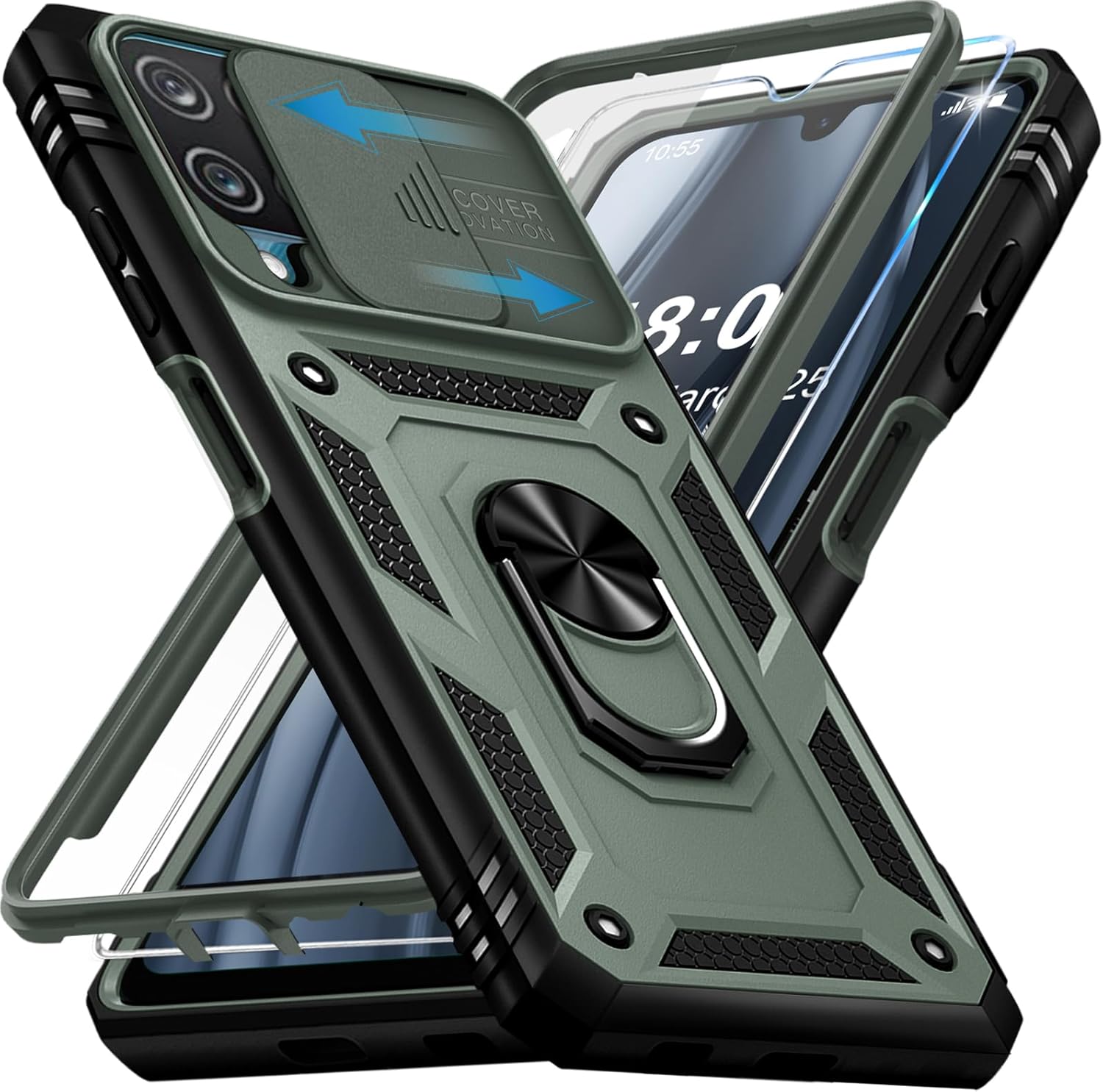 Кейс Giyer за Samsung Galaxy A12 с протектор за екрана, калъф за мобилен телефон Galaxy A12 5G със защита на камерата, слот за карта, 360° метален пръстен, стойка, удароустойчив, защитен калъф за Samsung A12 6.5 инча