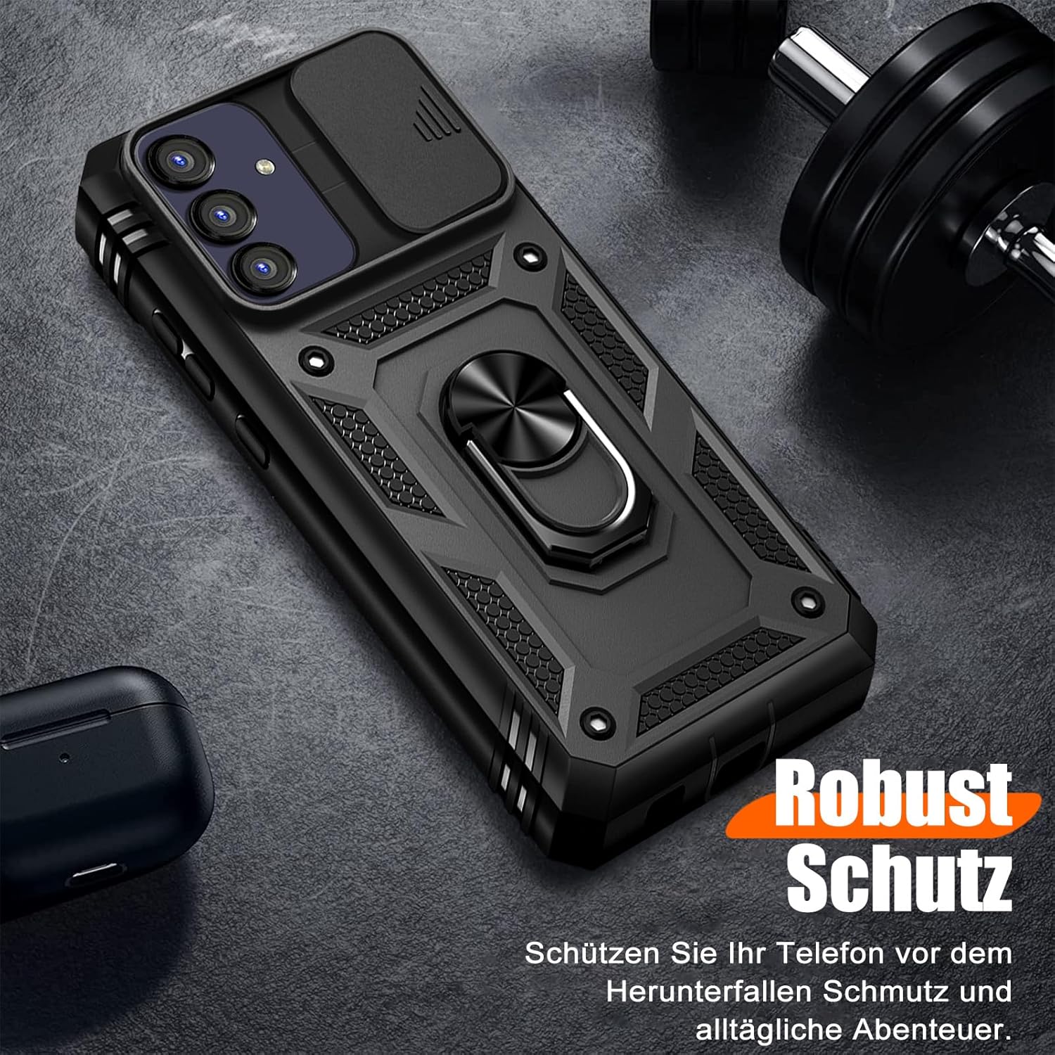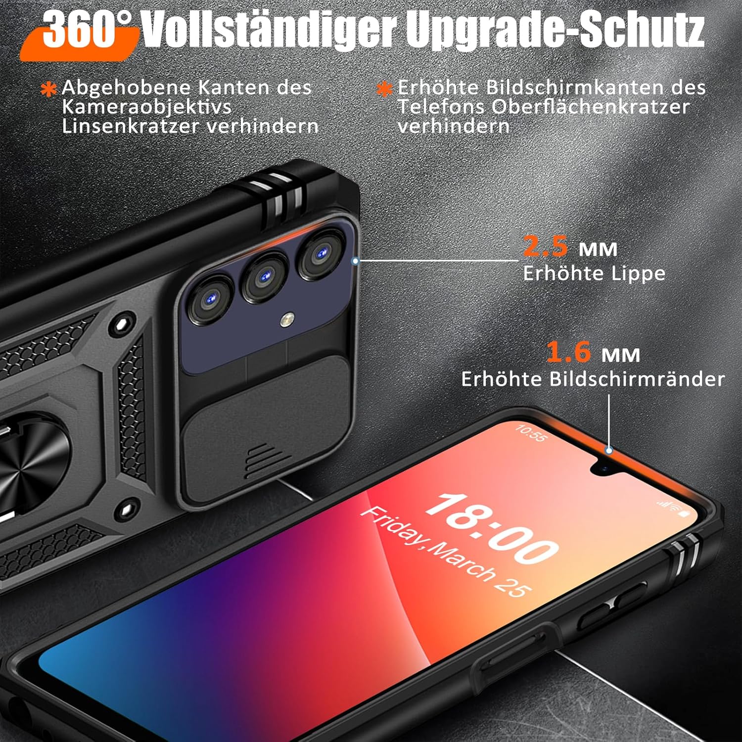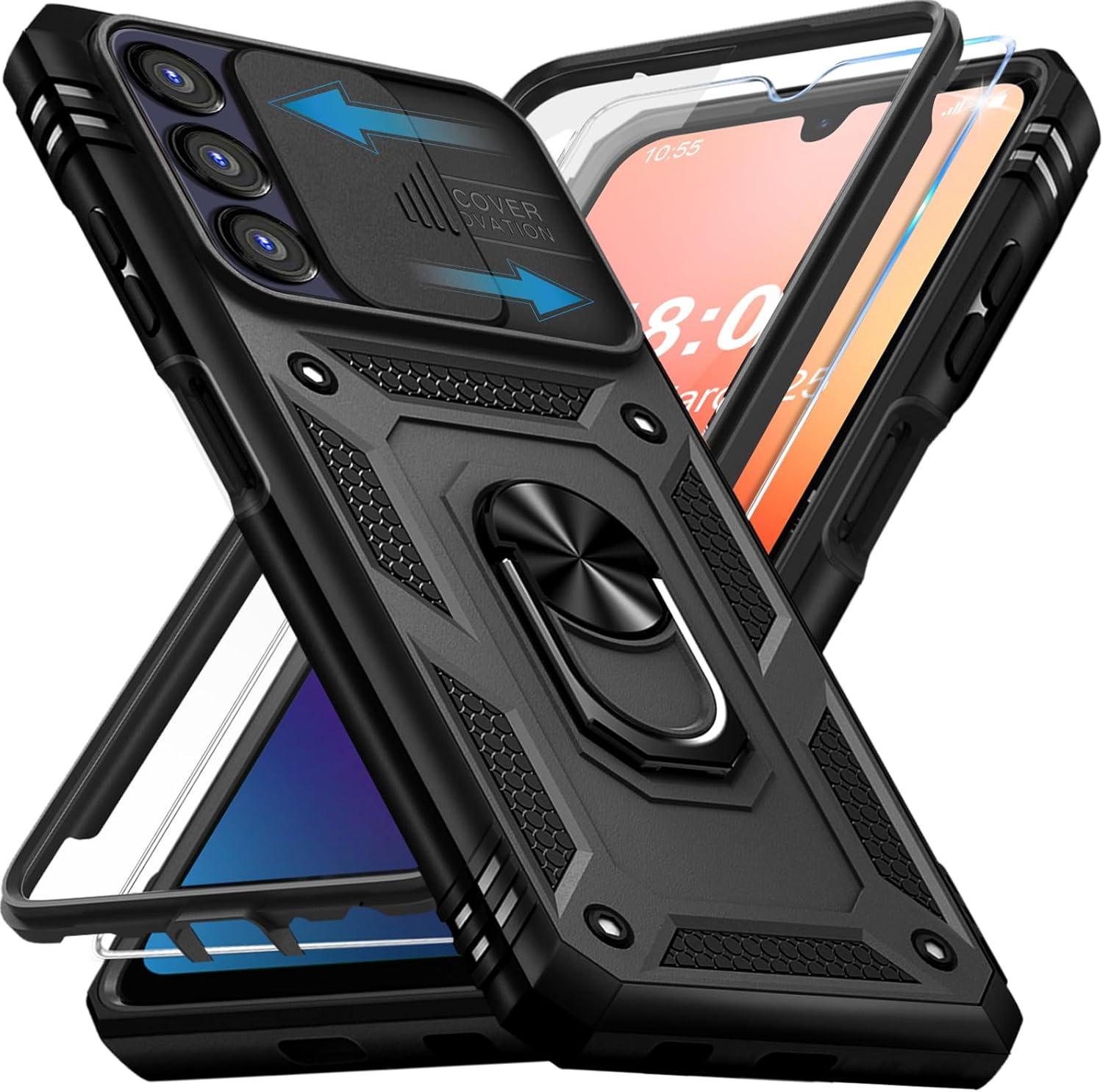Кейс Giyer за Samsung Galaxy A15 с протектор за екрана, Кейс за мобилен телефон A15 5G с 360° защита на камерата, метален пръстен, стойка, удароустойчив, защитен калъф за Samsung A15 (черен)