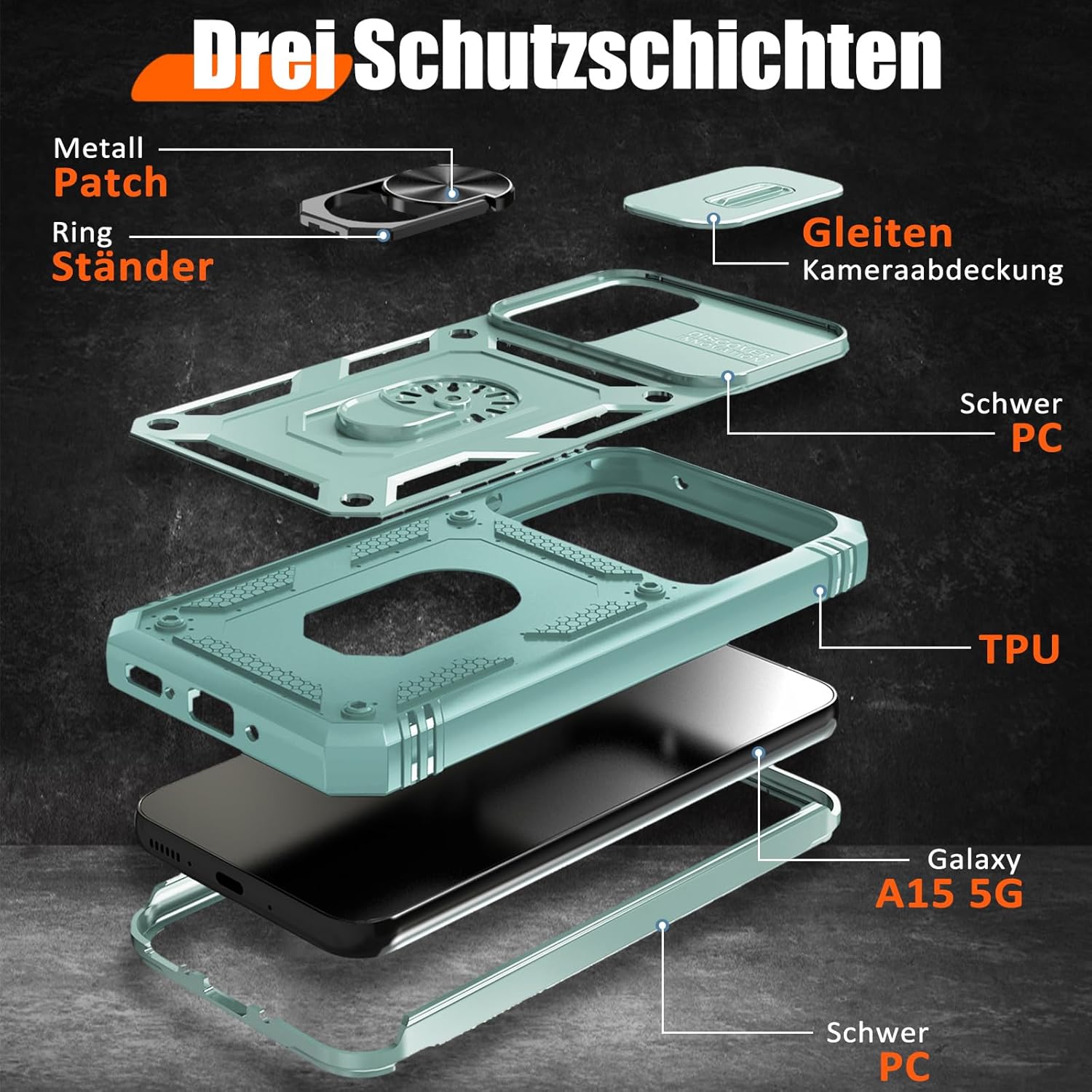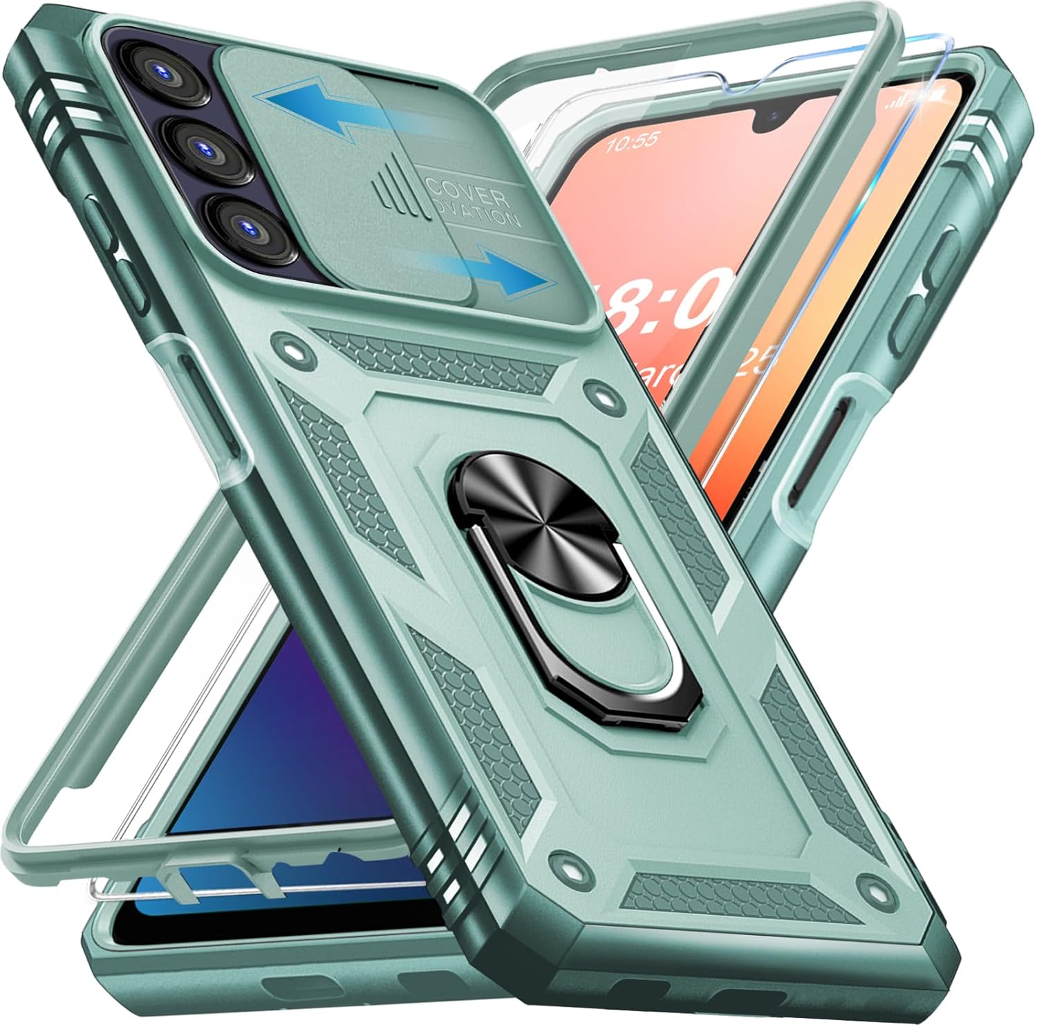 Кейс Giyer за Samsung Galaxy A15 с протектор за екрана, Кейс за мобилен телефон A15 5G с 360° защита на камерата, метален пръстен, стойка, удароустойчив, защитен калъф за Samsung A15 (ментово зелен)