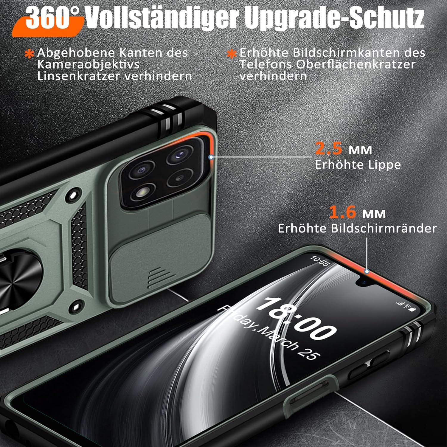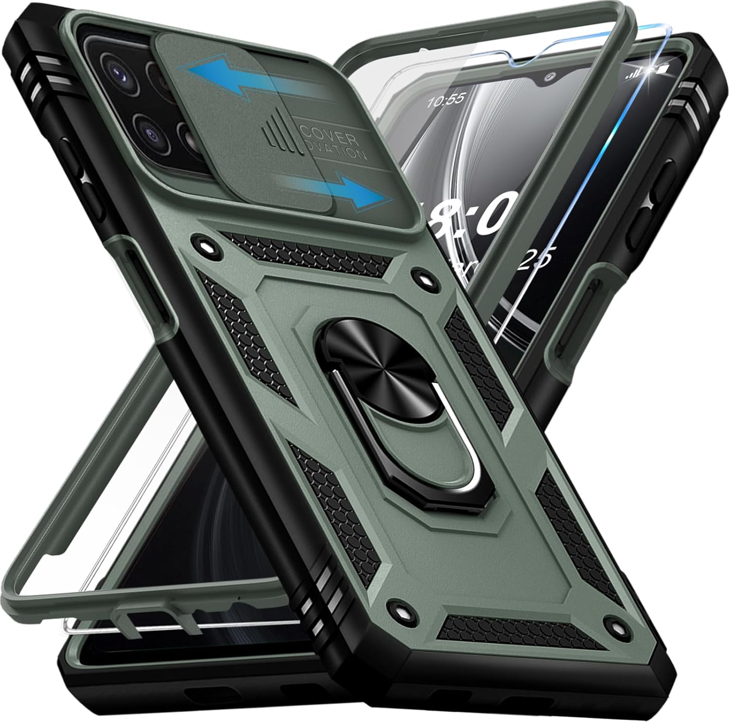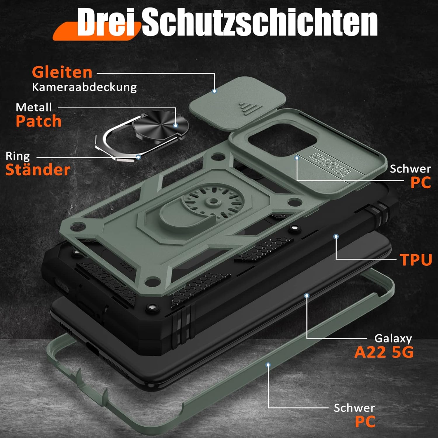 Кейс Giyer за Samsung Galaxy A22 5G с протектор за екрана, Кейс за мобилен телефон A22 със защита на камерата, слот за карта, метален пръстен 360°, удароустойчив, защитен калъф за Samsung A22 6.6 инча