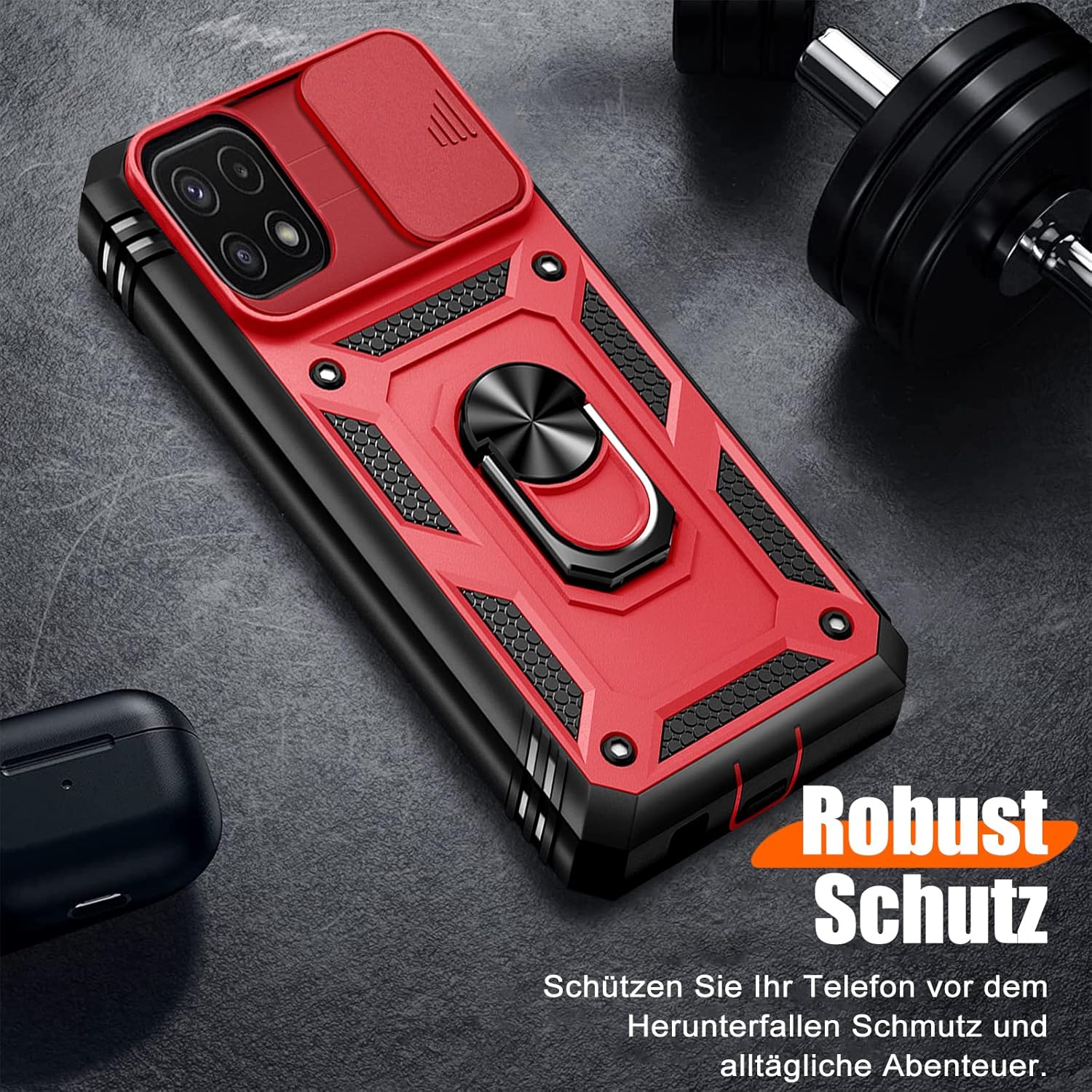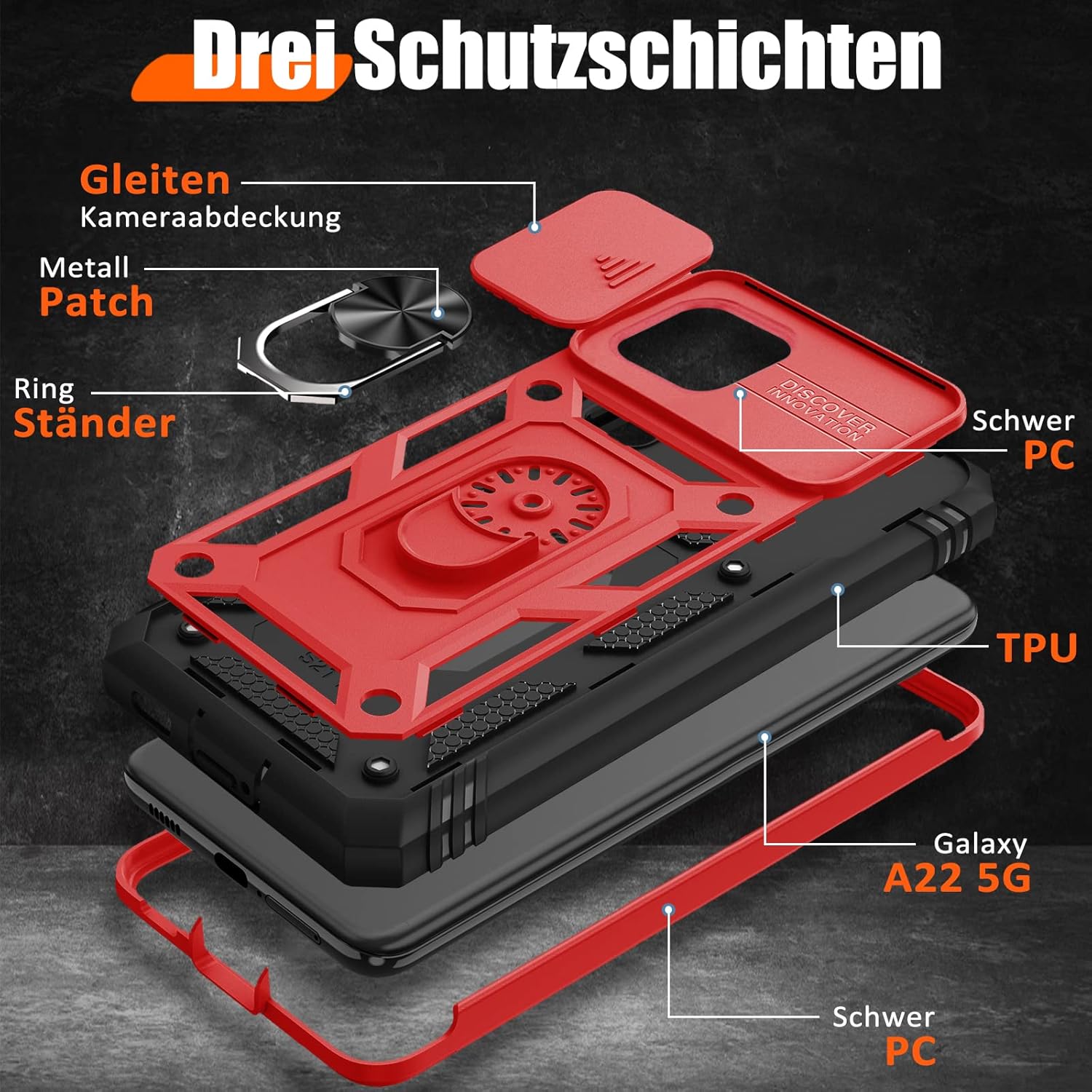 Кейс Giyer за Samsung Galaxy A22 5G с протектор за екрана, Кейс за мобилен телефон A22 със защита на камерата, слот за карта, метален пръстен 360°, удароустойчив, защитен калъф за Samsung A22 6.6 инча