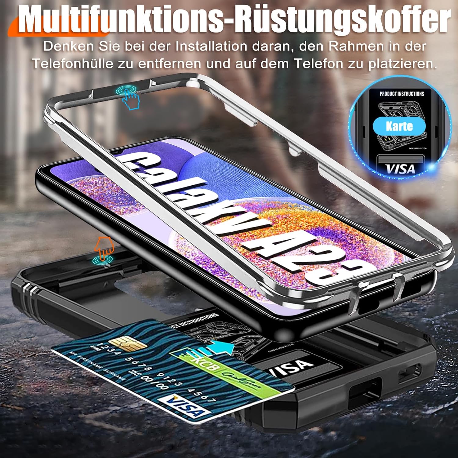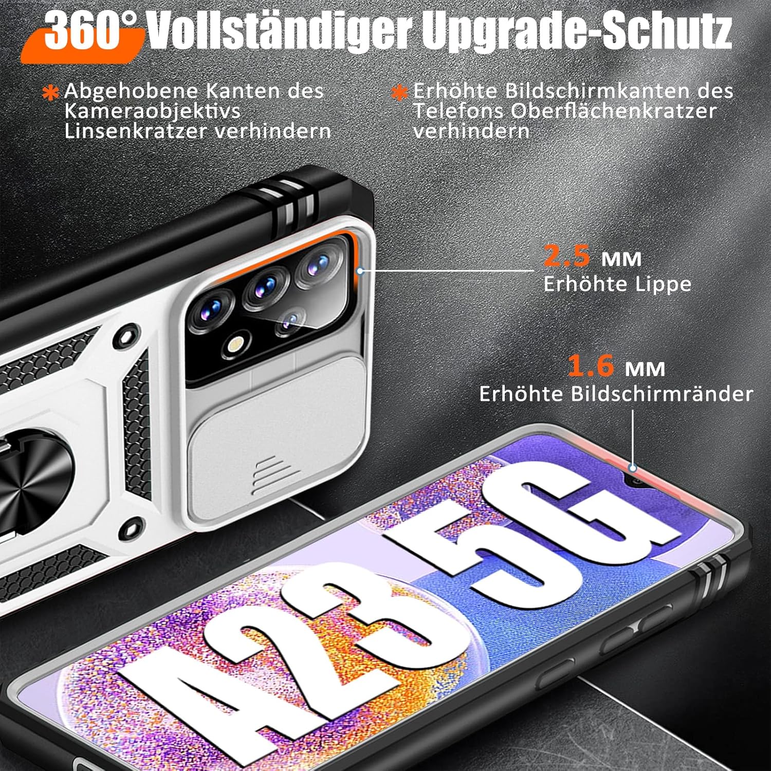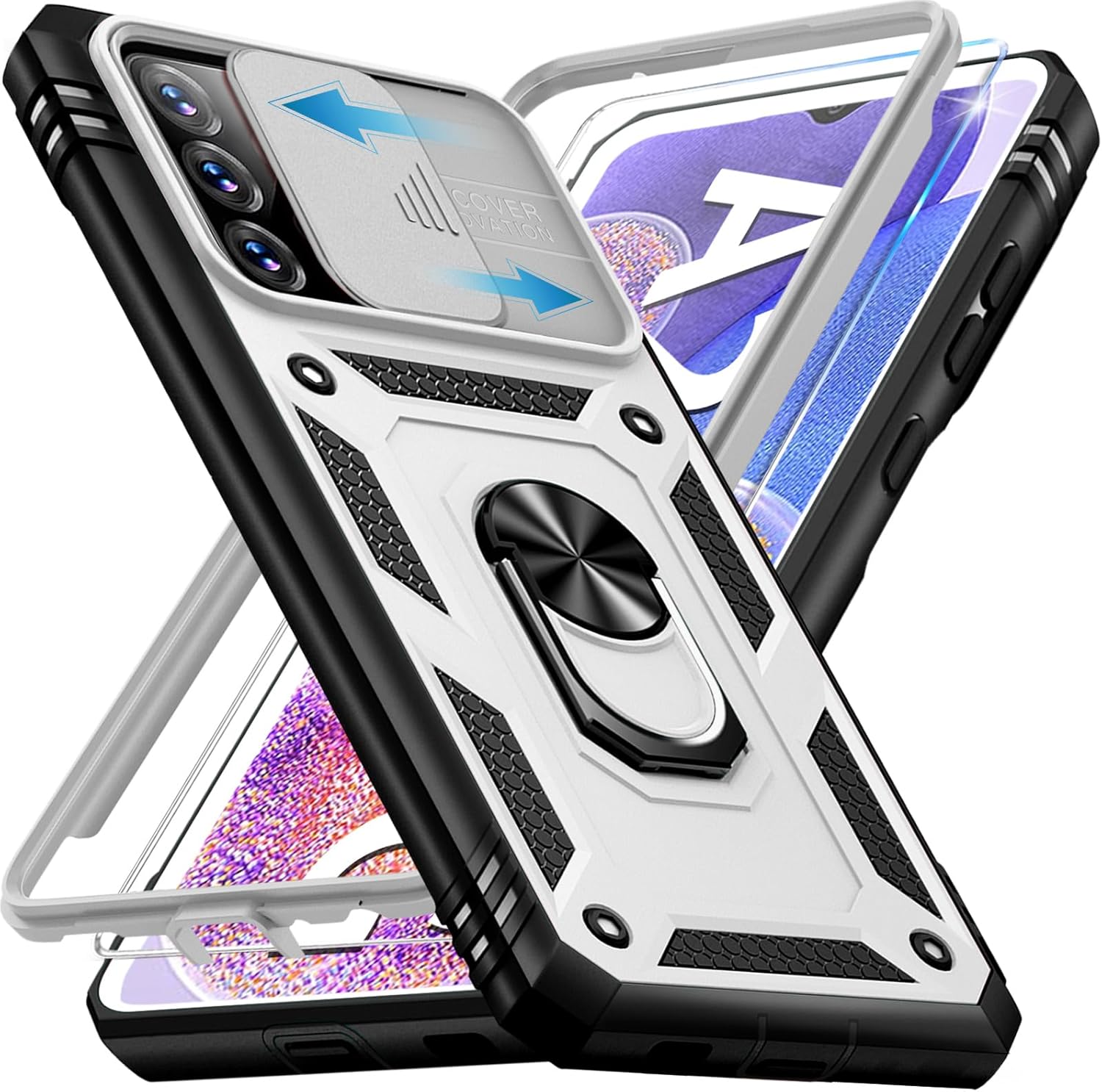 Кейс Giyer за Samsung Galaxy A23 5G с протектор за екрана, Кейс за мобилен телефон Galaxy A23 със защита на камерата, слот за карта, 360° метален пръстен, стойка, удароустойчив, защитен калъф за Samsung A23