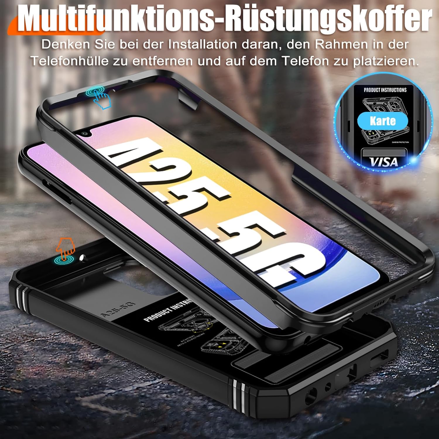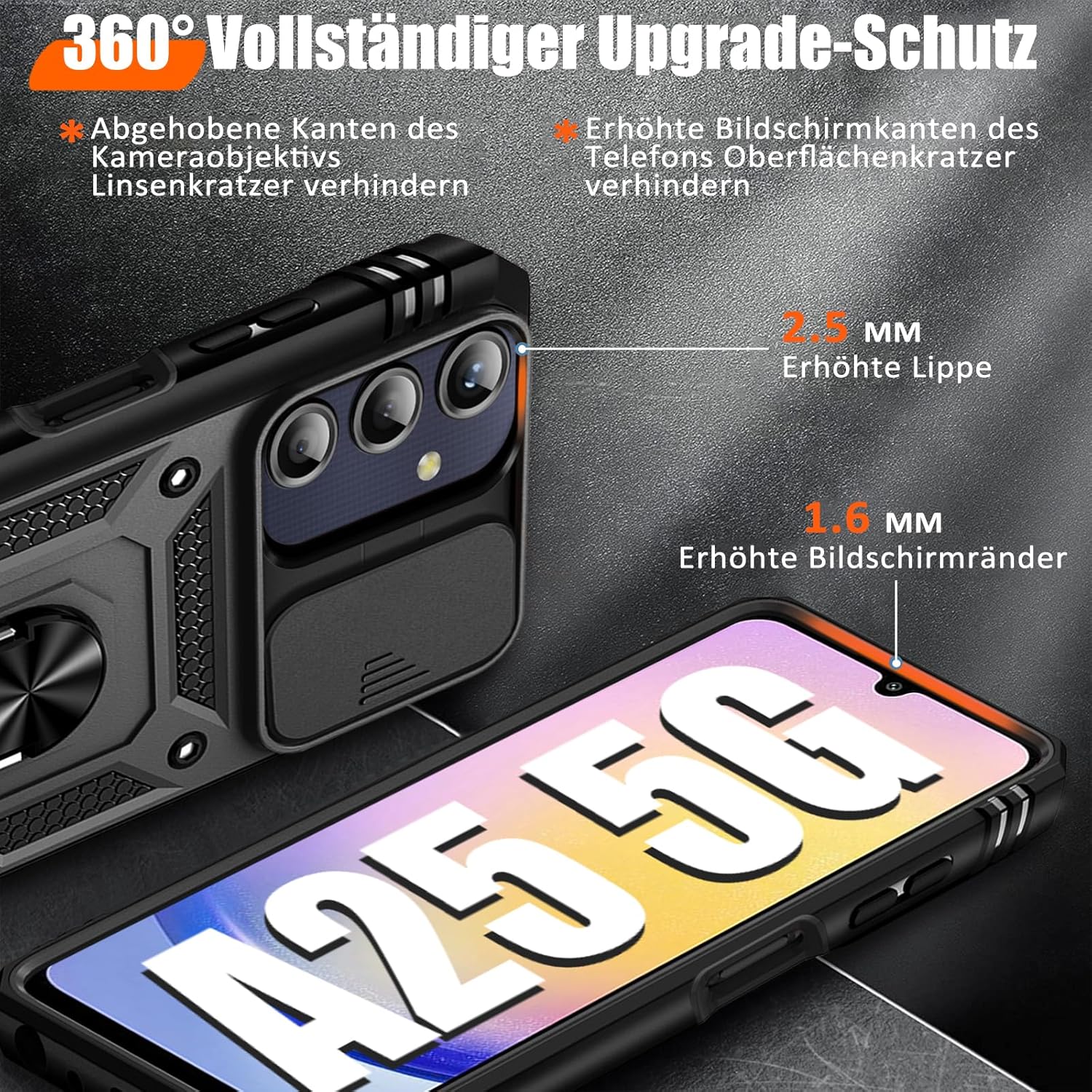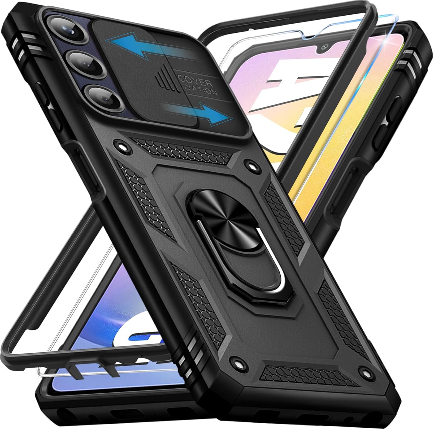 Кейс Giyer за Samsung Galaxy A25 5G с протектор за екрана, Кейс за мобилен телефон A25 5G със защита на камерата 360° метален пръстен стойка удароустойчив броня защитен кейс за външен монтаж Samsung A25
