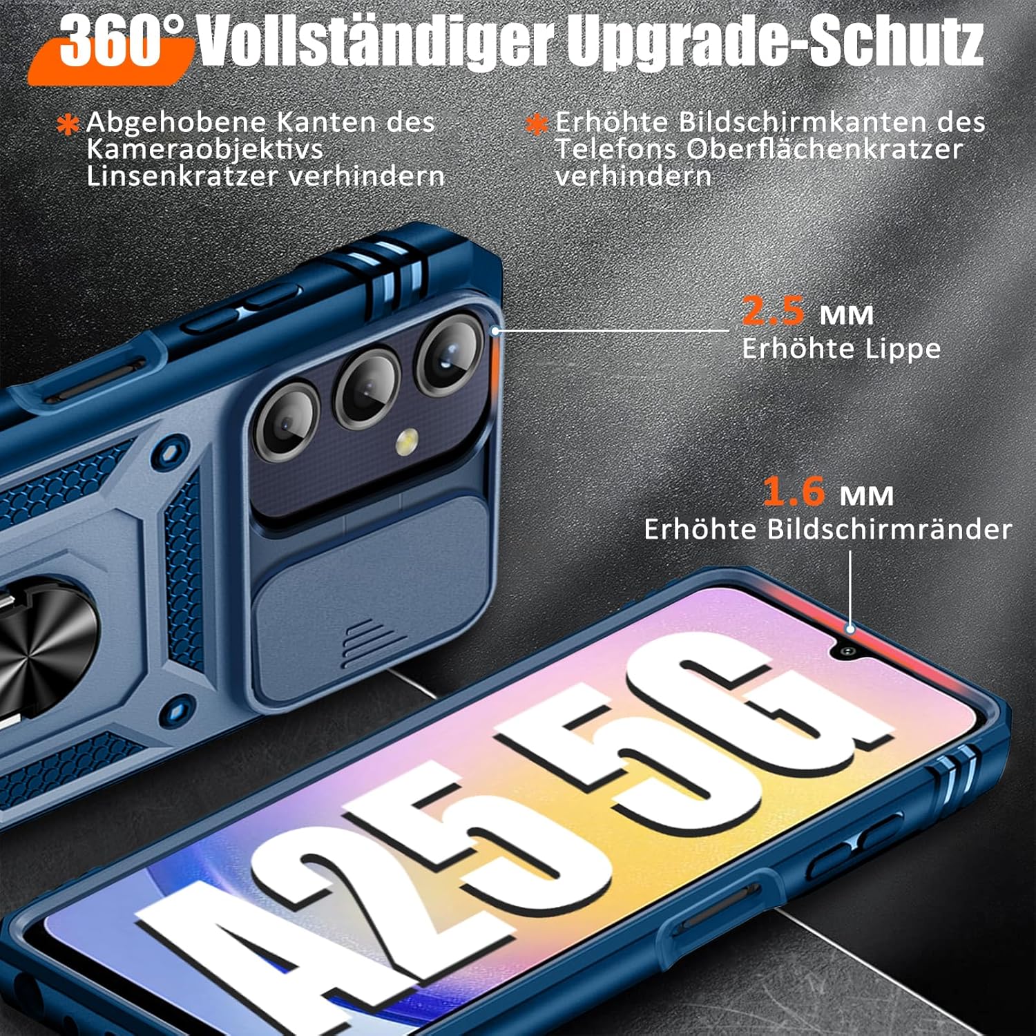 Кейс Giyer за Samsung Galaxy A25 5G с протектор за екрана, Кейс за мобилен телефон A25 5G със защита на камерата 360° метален пръстен стойка удароустойчив броня защитен кейс за външен монтаж Samsung A25