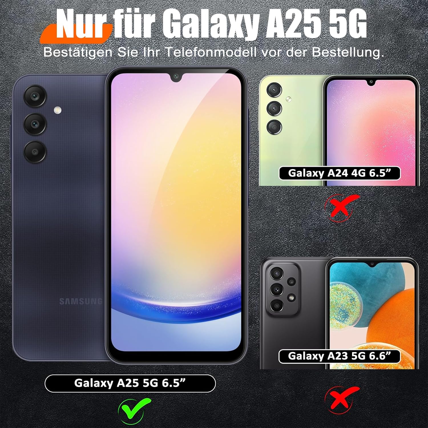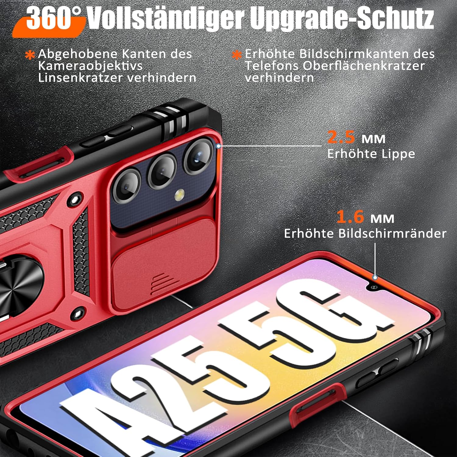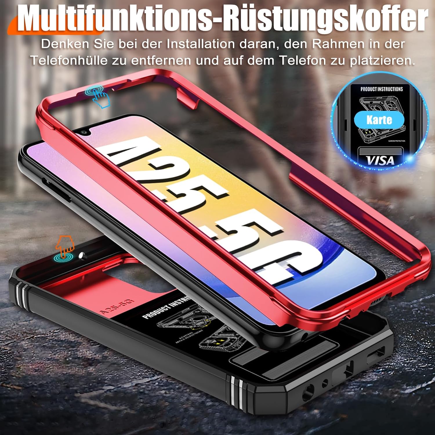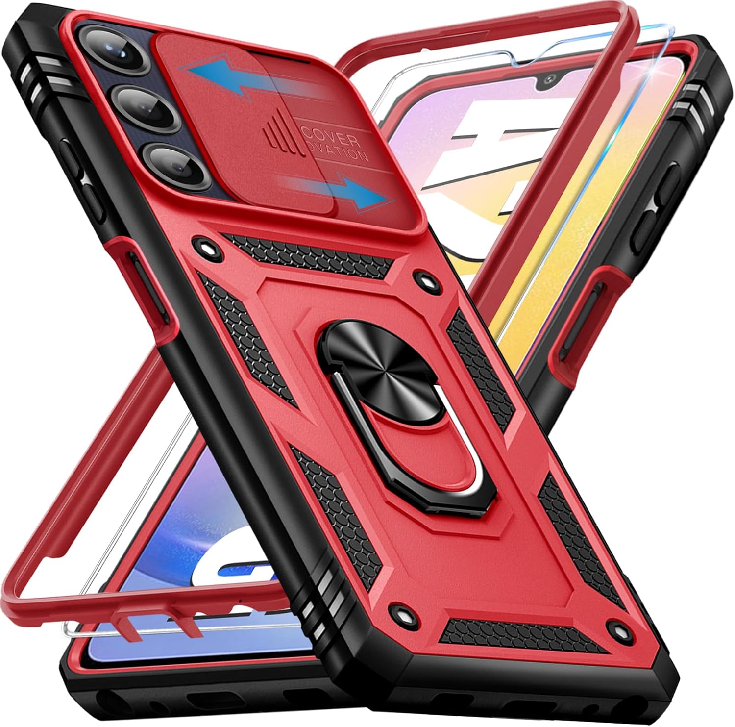 Кейс Giyer за Samsung Galaxy A25 5G с протектор за екрана, Кейс за мобилен телефон A25 5G със защита на камерата 360° метален пръстен стойка удароустойчив броня защитен кейс за външен монтаж Samsung A25