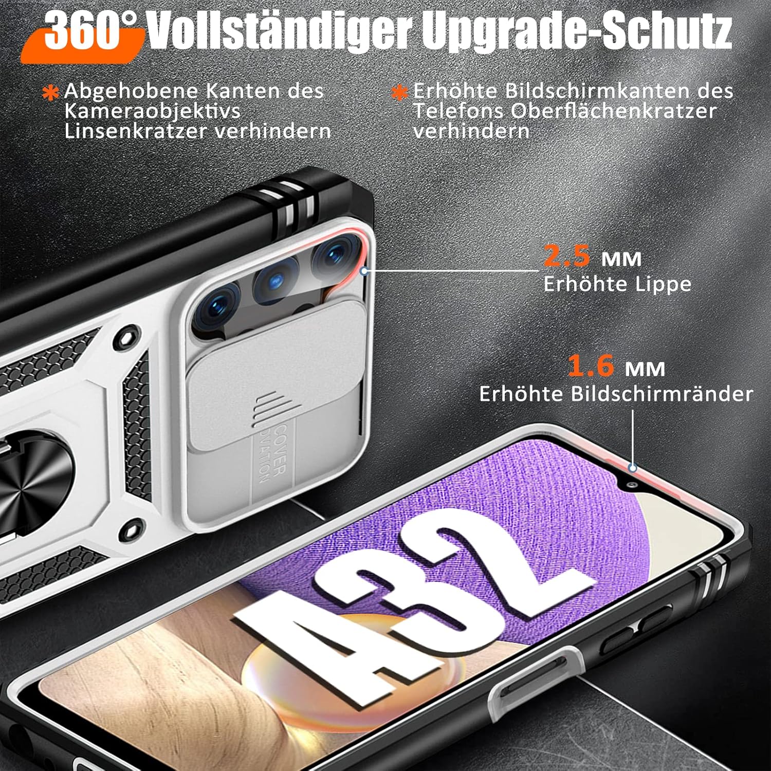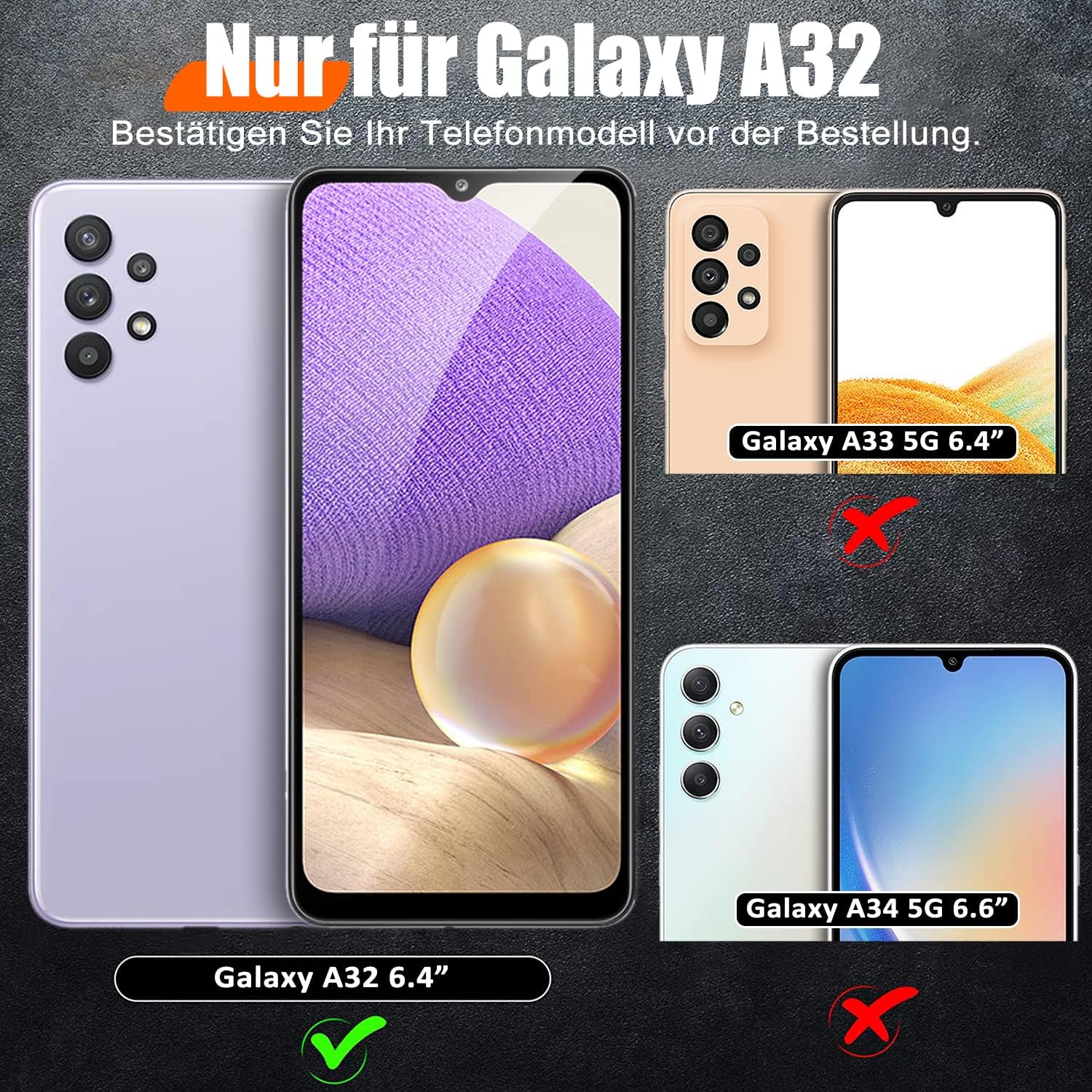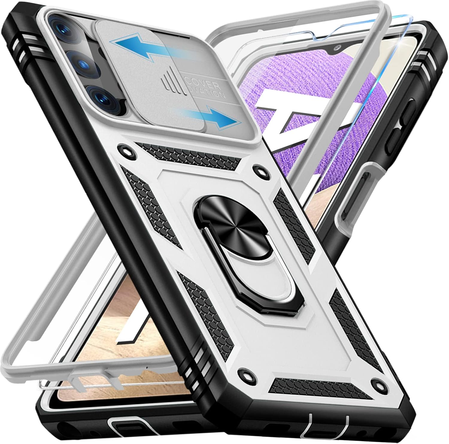 Кейс Giyer за Samsung Galaxy A32 с протектор за екрана, Кейс за мобилен телефон A32 5G със защита на камерата, слот за карта, метален пръстен 360°, удароустойчив, защитен калъф за Samsung A32 6.5 инча