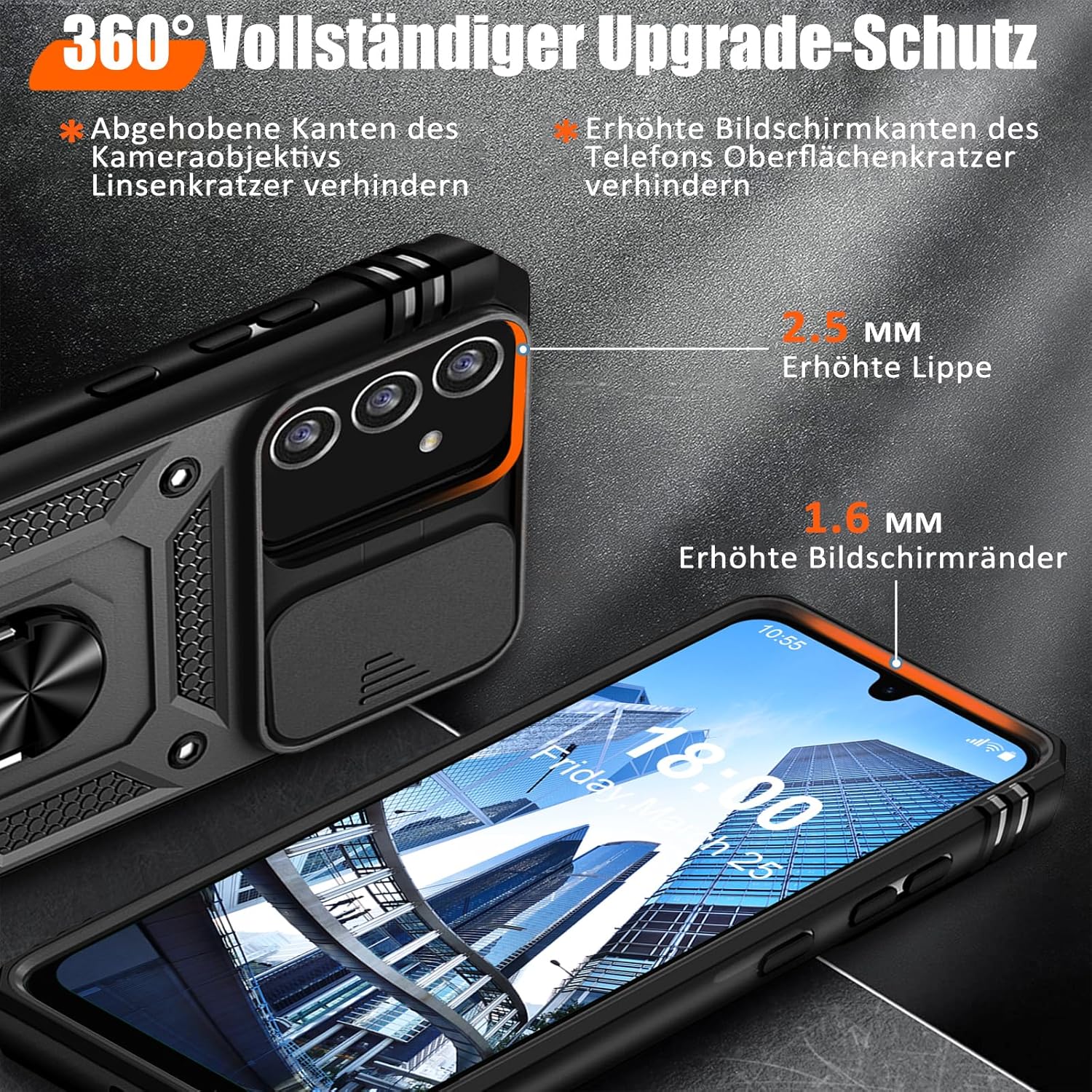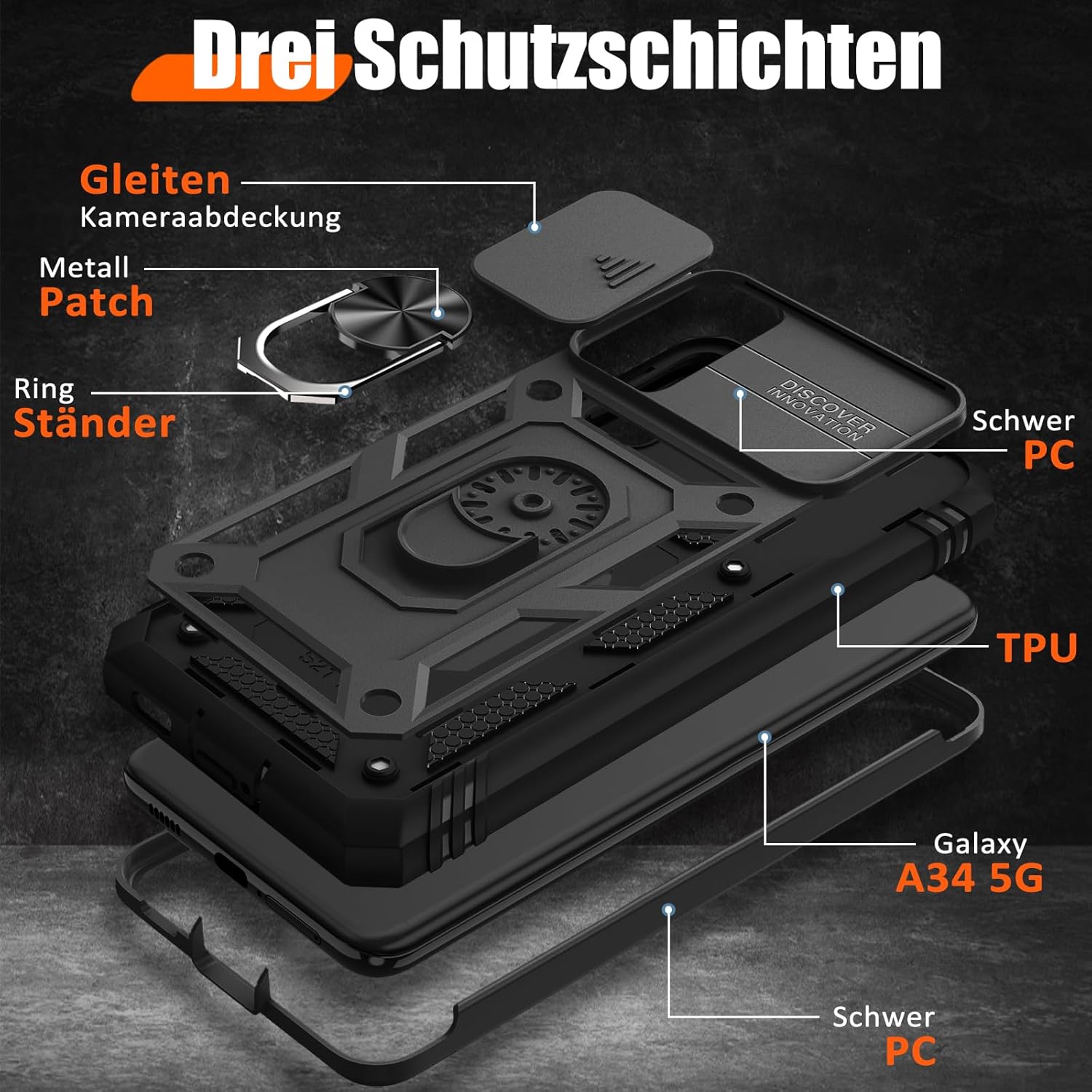Кейс Giyer за Samsung Galaxy A34 5G с протектор за екрана, Кейс за мобилен телефон Galaxy A34 със защита на камерата, слот за карта, 360° метален пръстен, стойка, удароустойчив, защитен калъф за Samsung A34