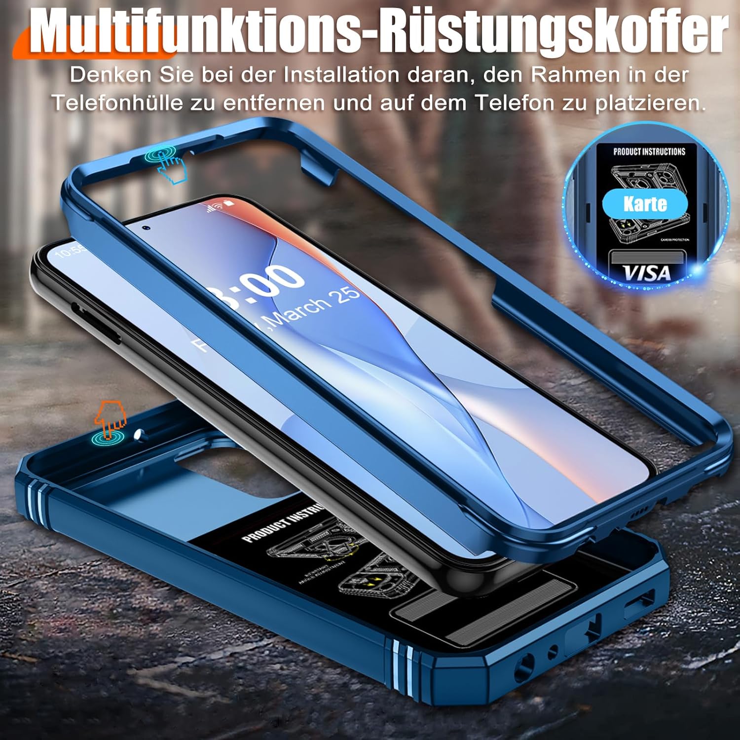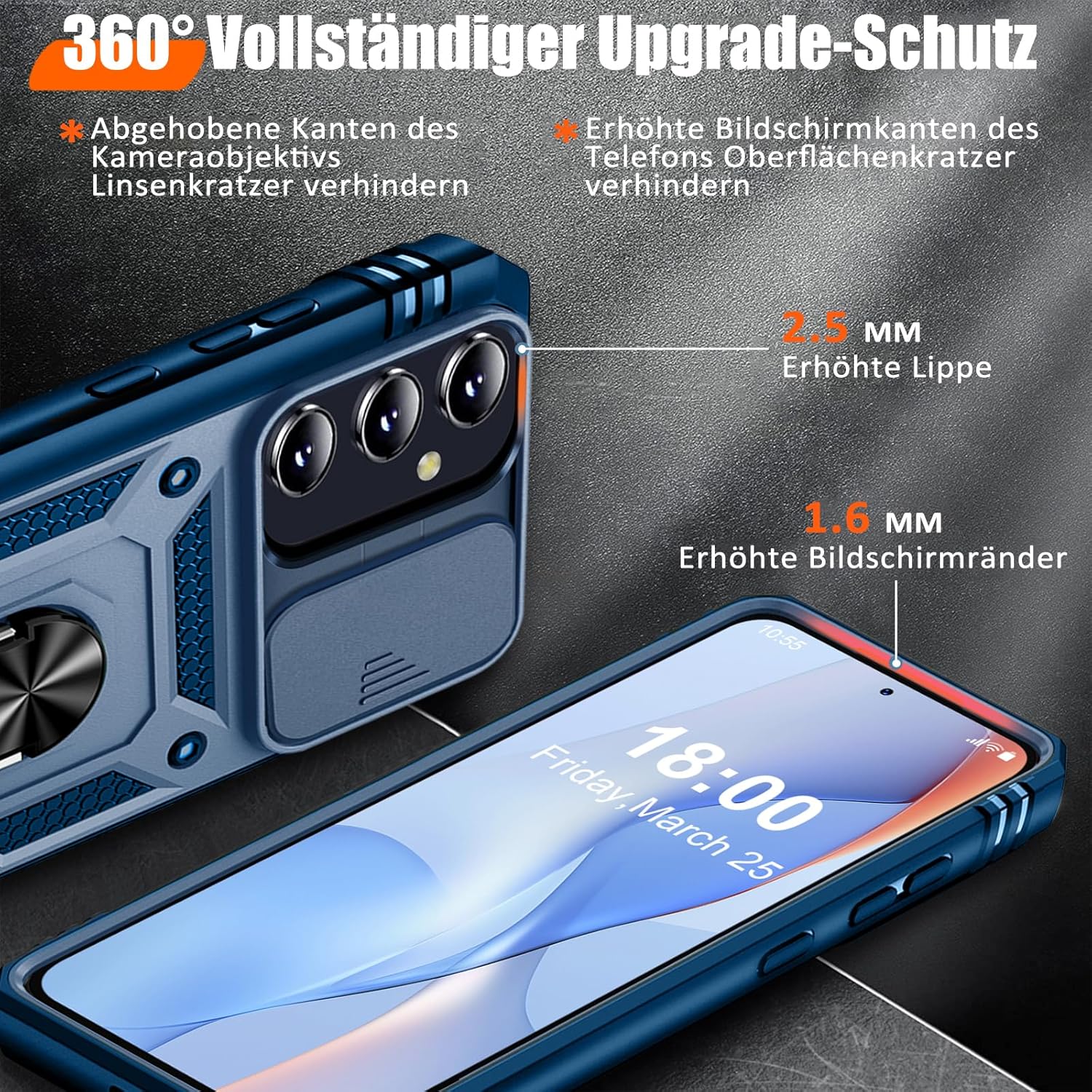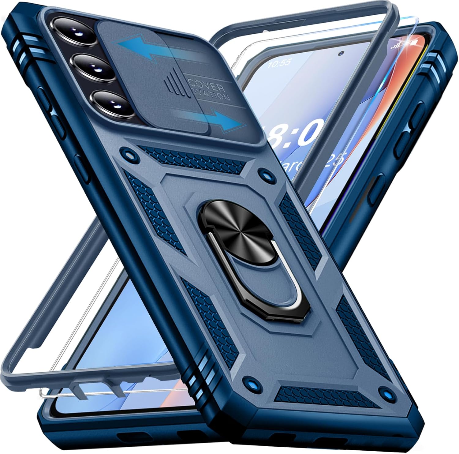 Кейс Giyer за Samsung Galaxy A35 5G с протектор за екрана, Кейс за мобилен телефон A35 5G със защита на камерата, 360° метален пръстен, стойка, удароустойчив, защитен калъф за Samsung A35 (син)