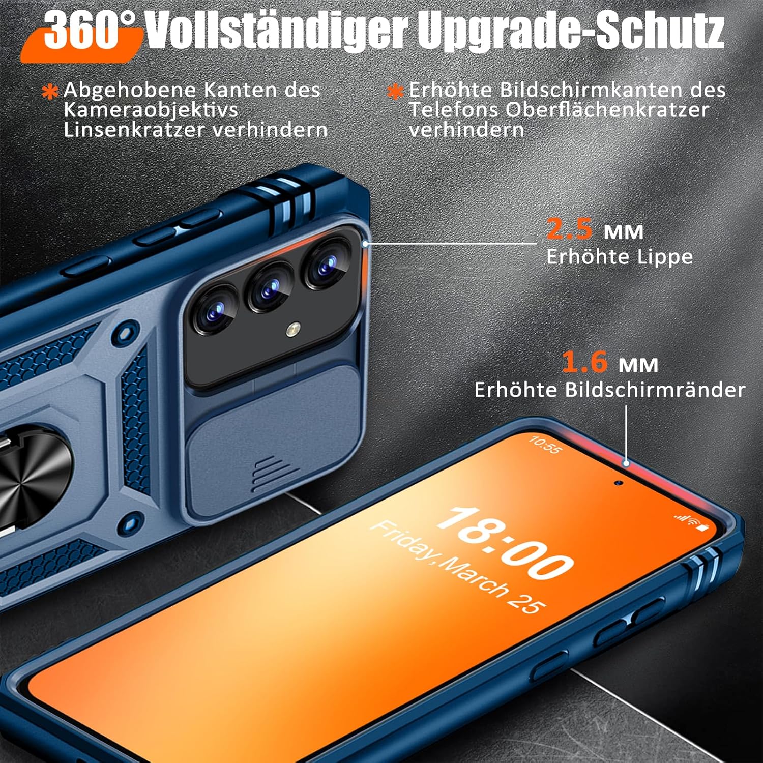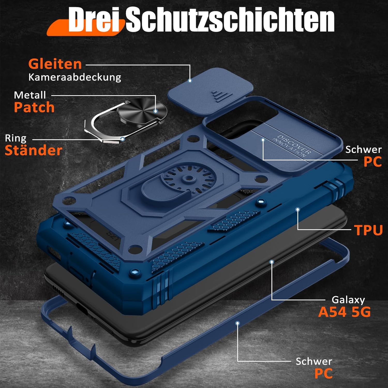 • Защита от военно ниво: калъфът за Galaxy A53 5G използва уникален TPU с ръбове в комбинация с вградени PC 2-в-1 затваряния, за да предпази телефона ви от падания, драскотини и удари. Защитата от военно ниво с технология с въздушна възглавница осигурява цялостна защита за вашето оборудване. Дизайн с плъзгач на обектива: Повдигната рамка за защита на камерата. Капачката покрива обектива и го предпазва от прах и драскотини.