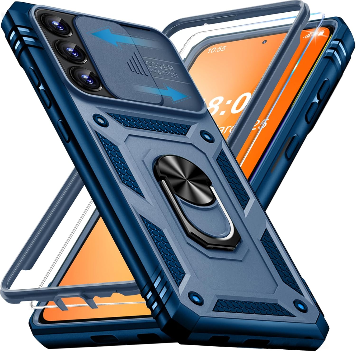 Кейс Giyer за Samsung Galaxy A54 5G с протектор за екрана, Кейс за мобилен телефон Galaxy A54 5G със защита на камерата, слот за карта, 360° метален пръстен, стойка, удароустойчив, защитен калъф за Samsung A54 6.4