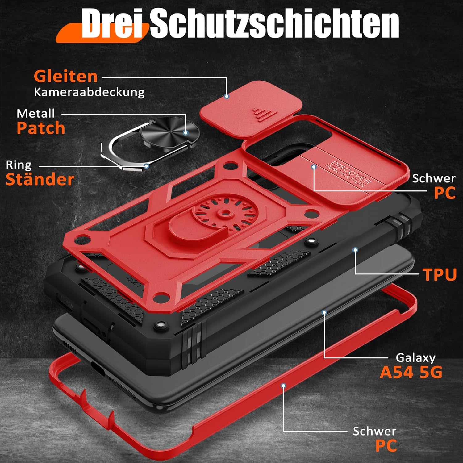 Кейс Giyer за Samsung Galaxy A54 5G с протектор за екрана, Кейс за мобилен телефон Galaxy A54 5G със защита на камерата, слот за карта, 360° метален пръстен, стойка, удароустойчив, защитен калъф за Samsung A54 6.4