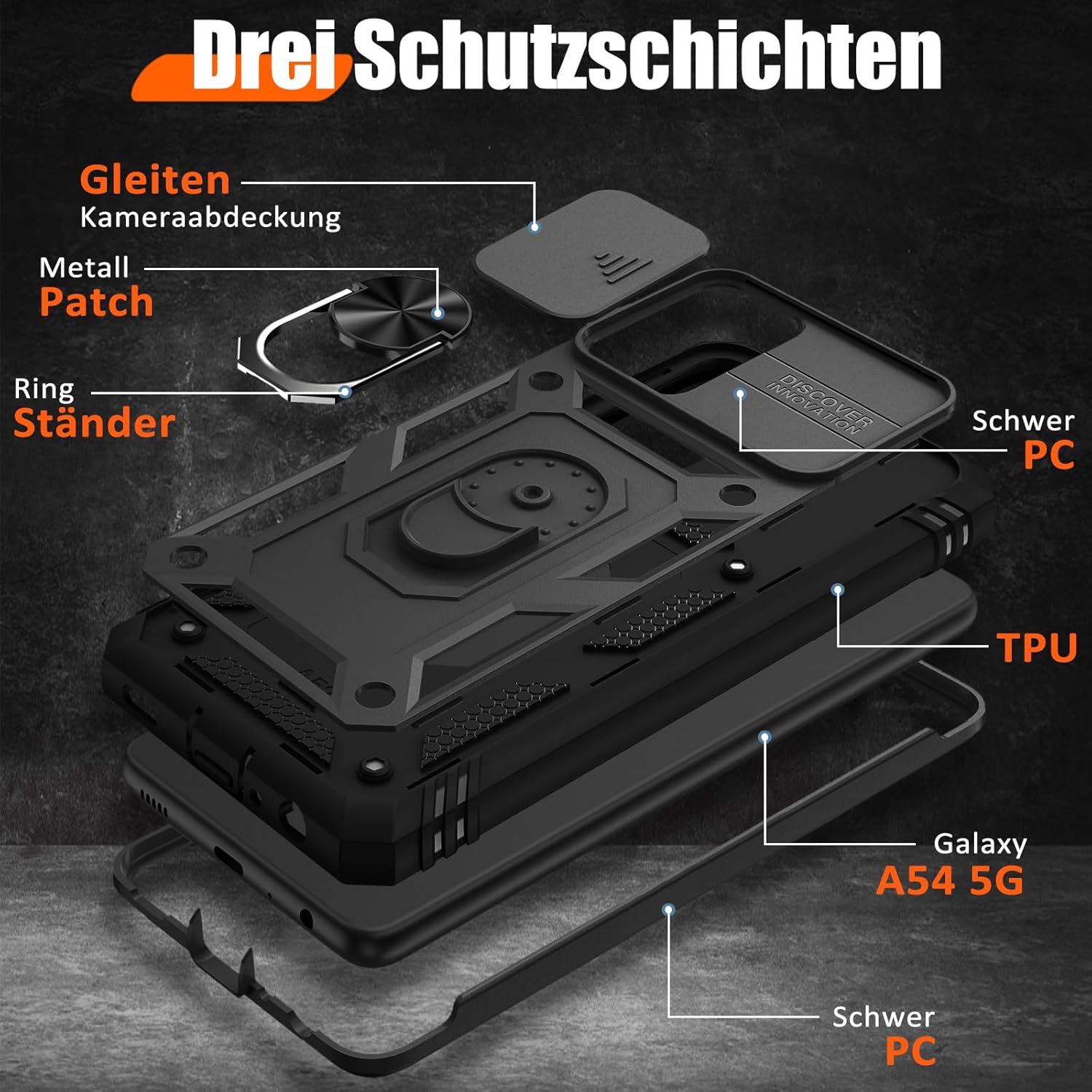 Кейс Giyer за Samsung Galaxy A54 5G с протектор за екрана, Кейс за мобилен телефон Galaxy A54 5G със защита на камерата, слот за карта, 360° метален пръстен, стойка, удароустойчив, защитен калъф за Samsung A54 6.4