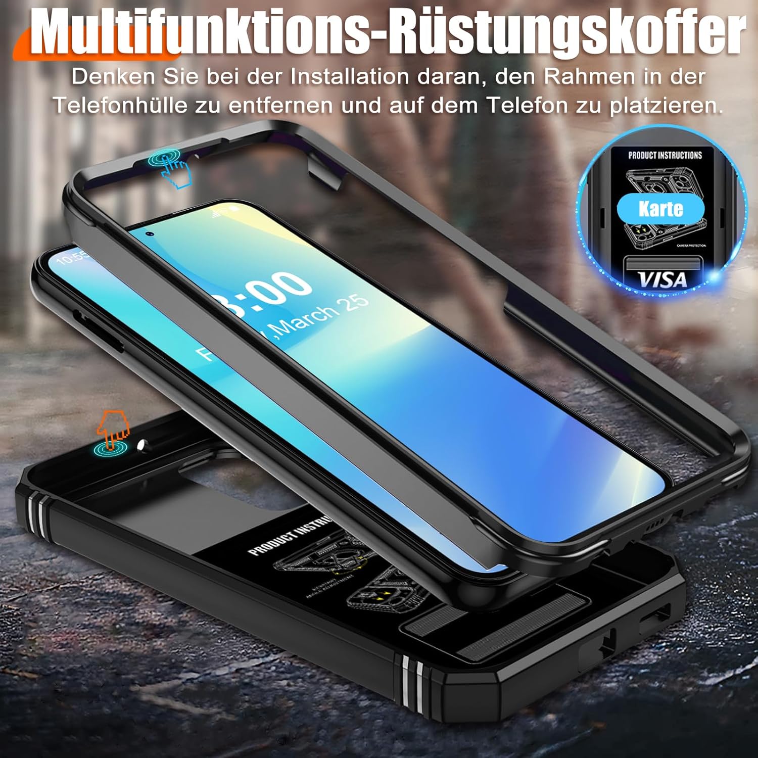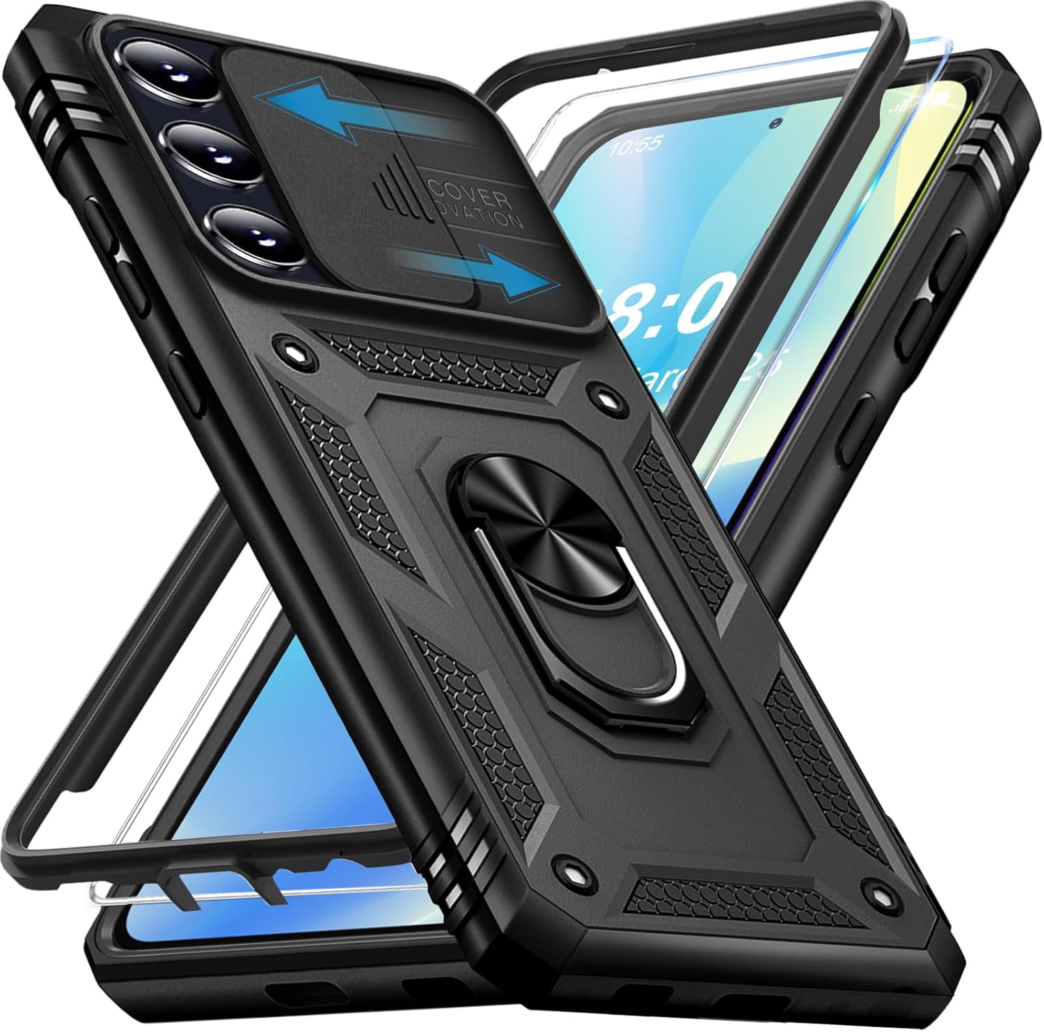 Кейс Giyer за Samsung Galaxy A55 5G с протектор за екрана, Кейс за мобилен телефон A55 5G със защита на камерата, 360° метален пръстен, стойка, удароустойчив, защитен калъф за Samsung A55 (черен)