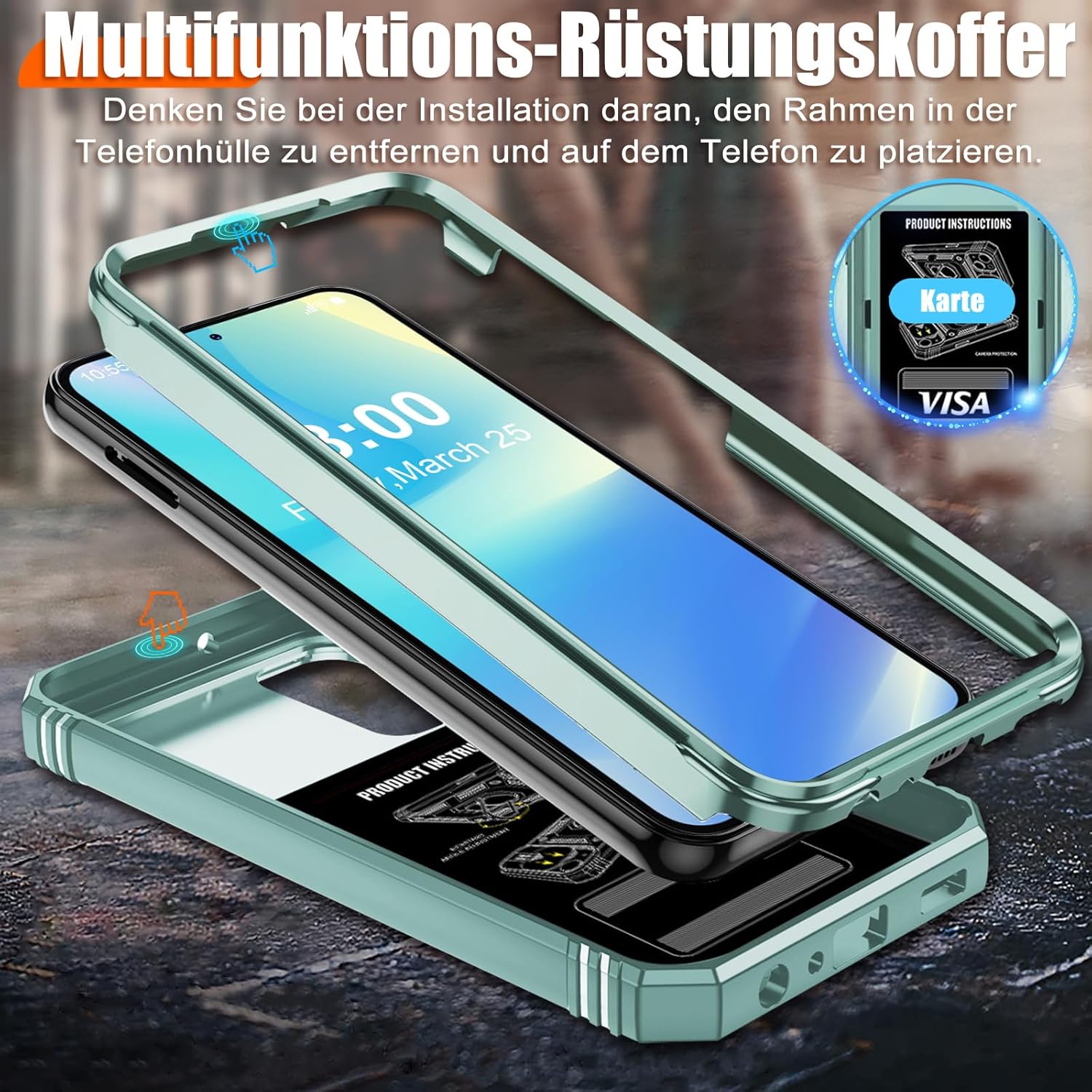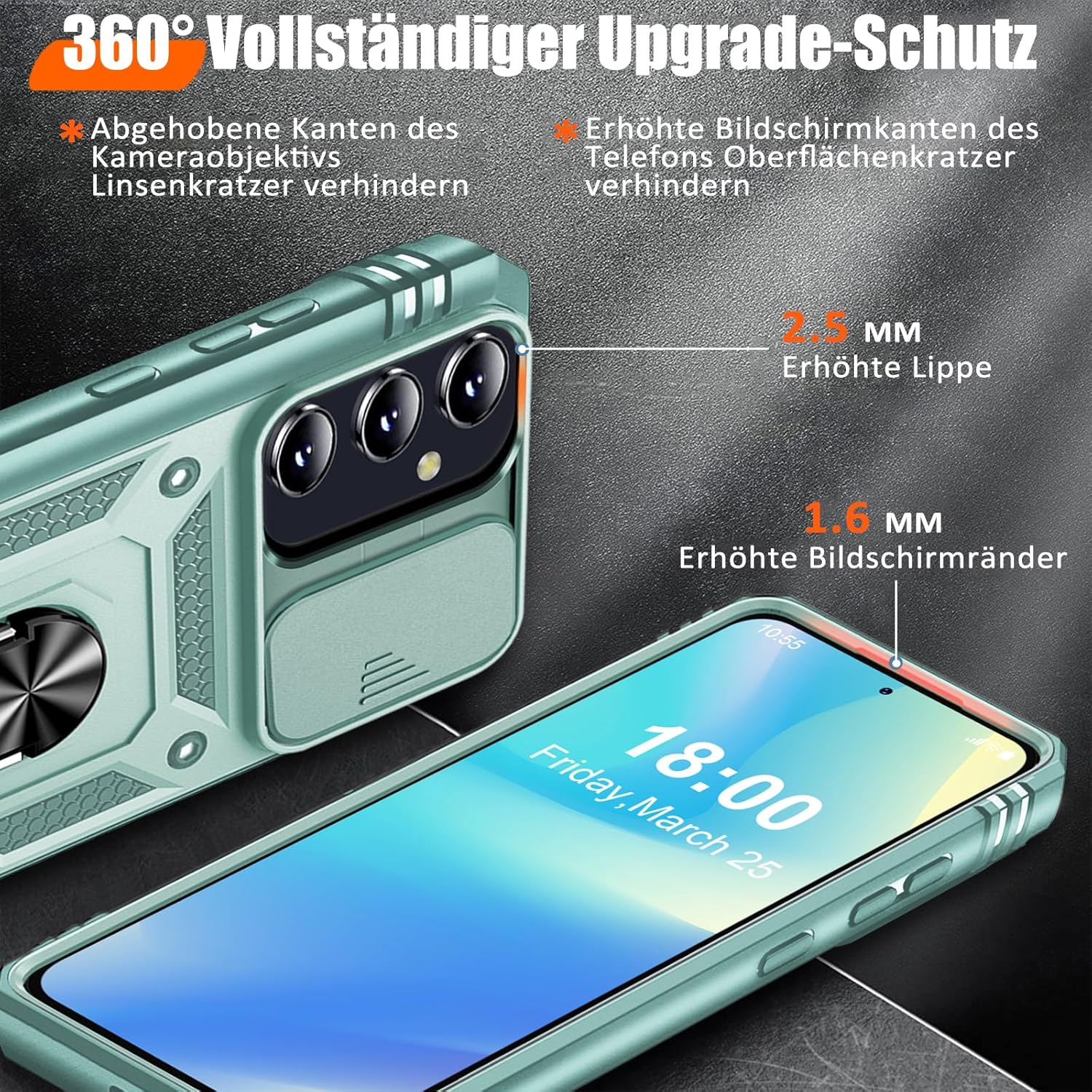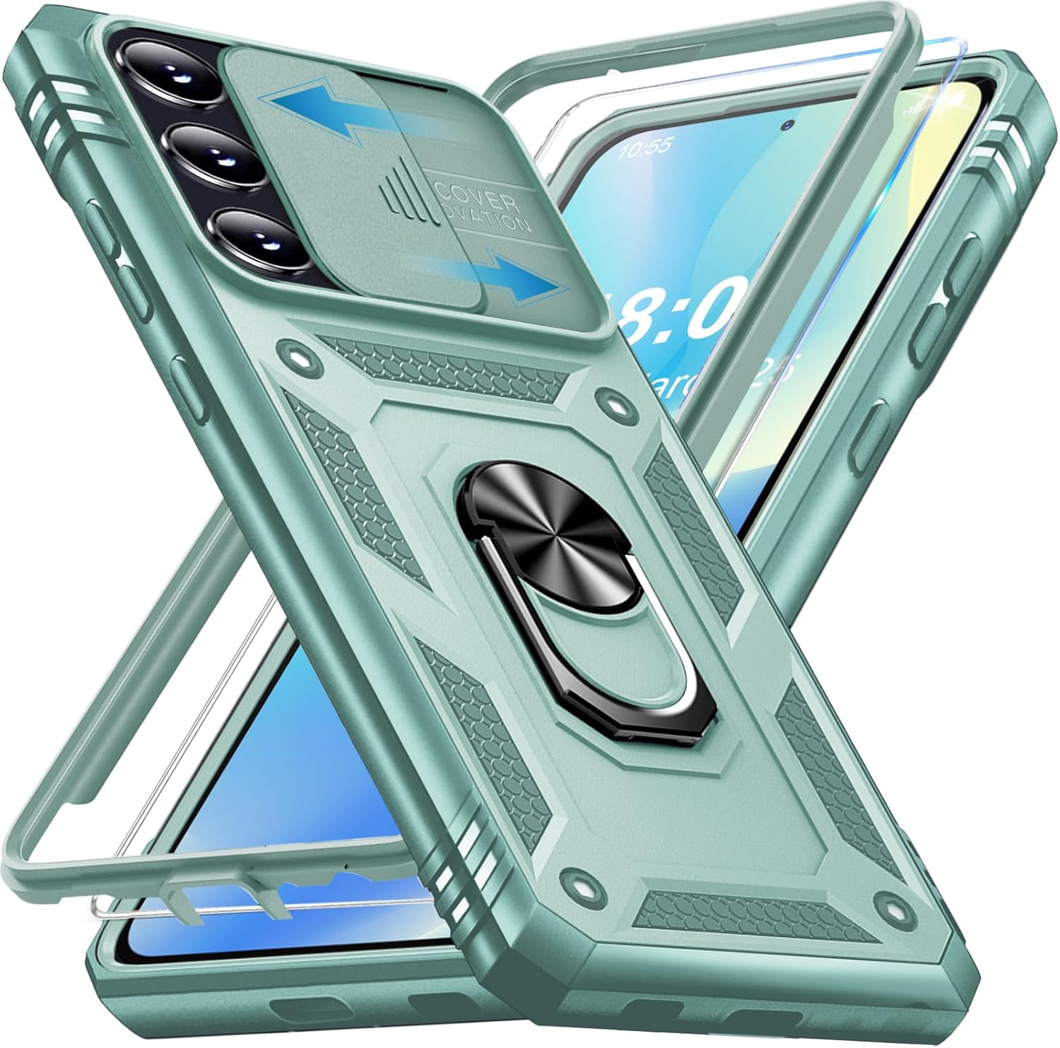 Кейс Giyer за Samsung Galaxy A55 5G с протектор за екрана, Кейс за мобилен телефон A55 5G със защита на камерата 360° метален пръстен стойка удароустойчив защитен калъф за Samsung A55 (ментов)
