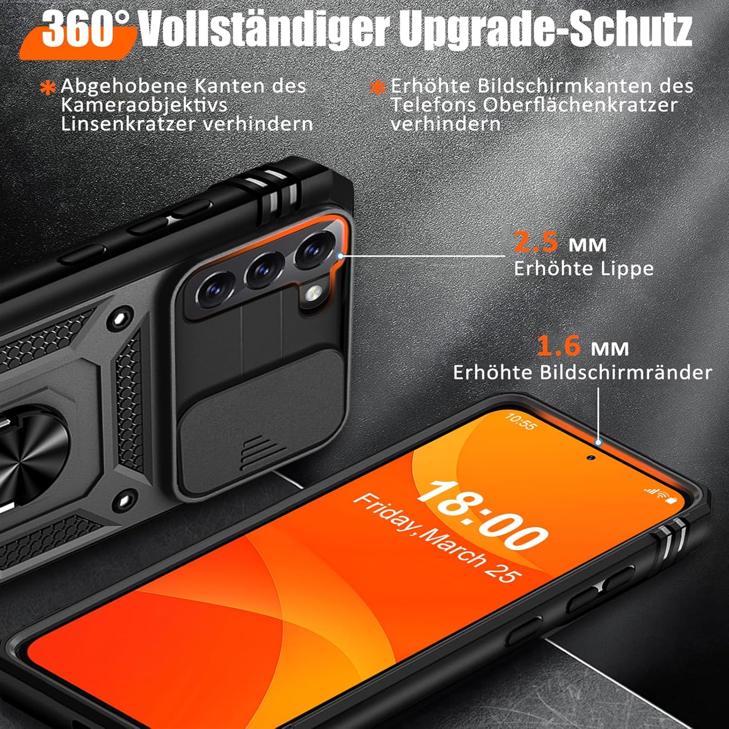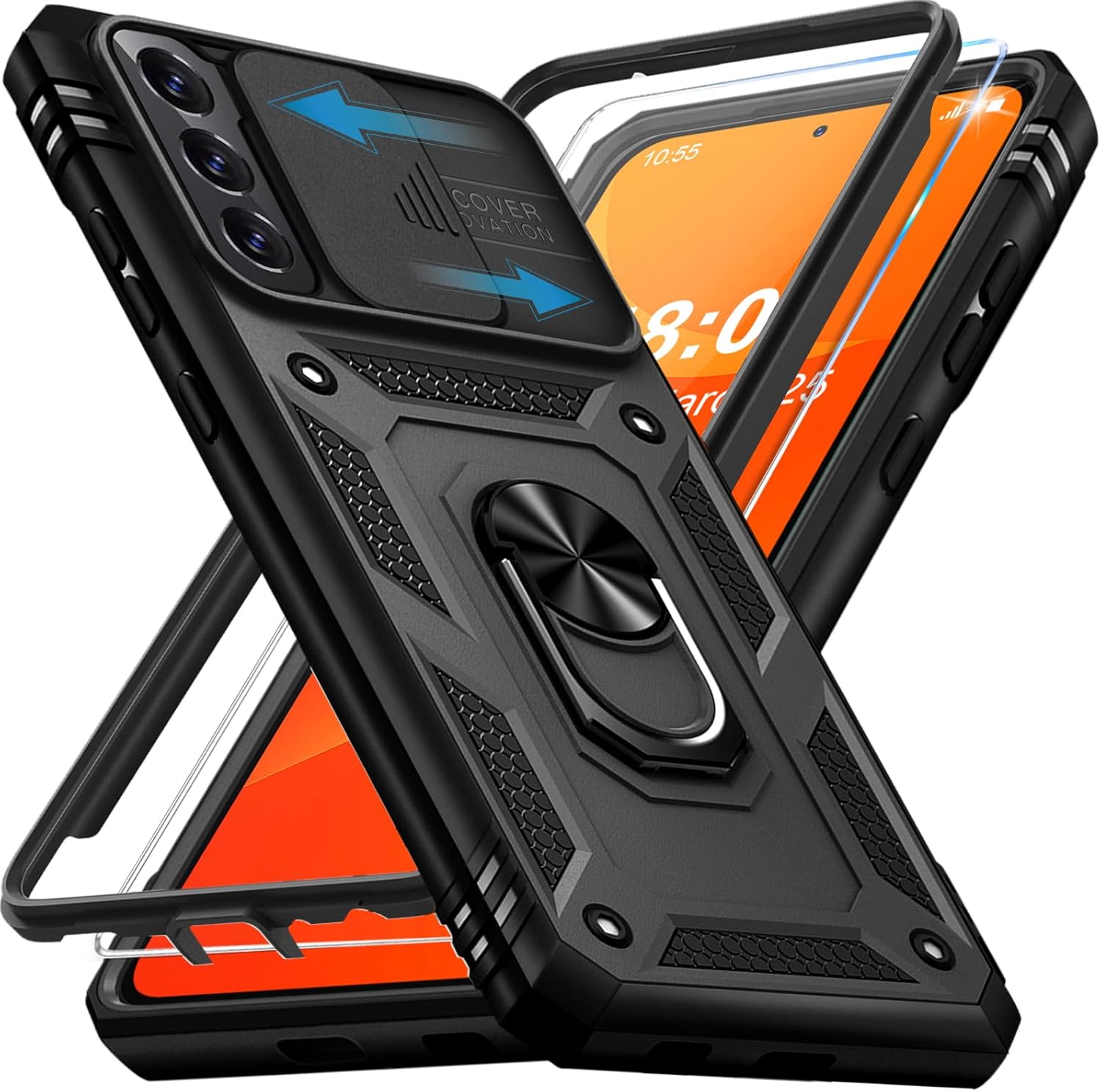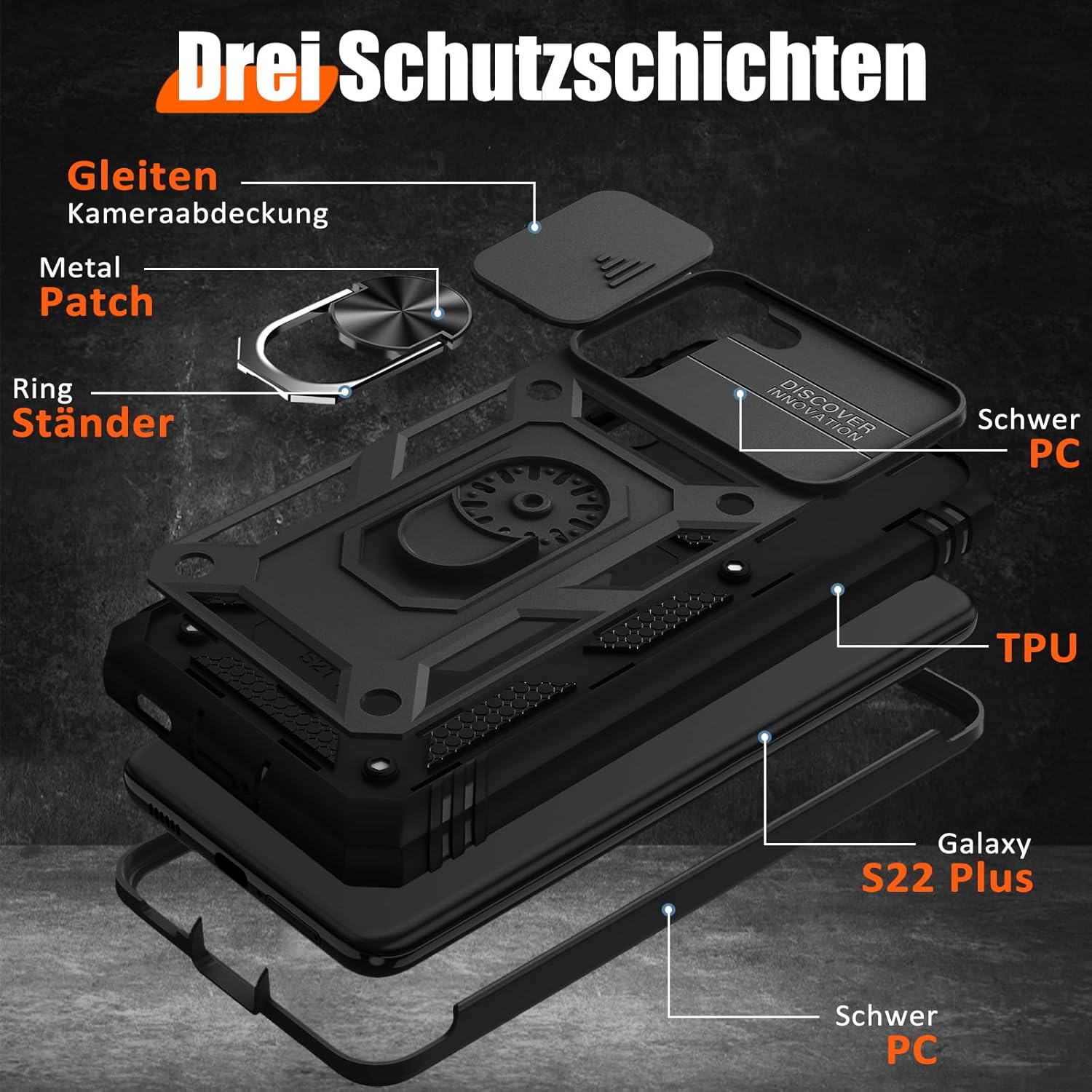 Кейс Giyer за Samsung Galaxy S22 Plus с протектор за екрана, калъф за мобилен телефон със защита на камерата, метална пръстеновидна стойка на 360°, удароустойчив защитен калъф, калъф за Samsung S22 Plus (черен)