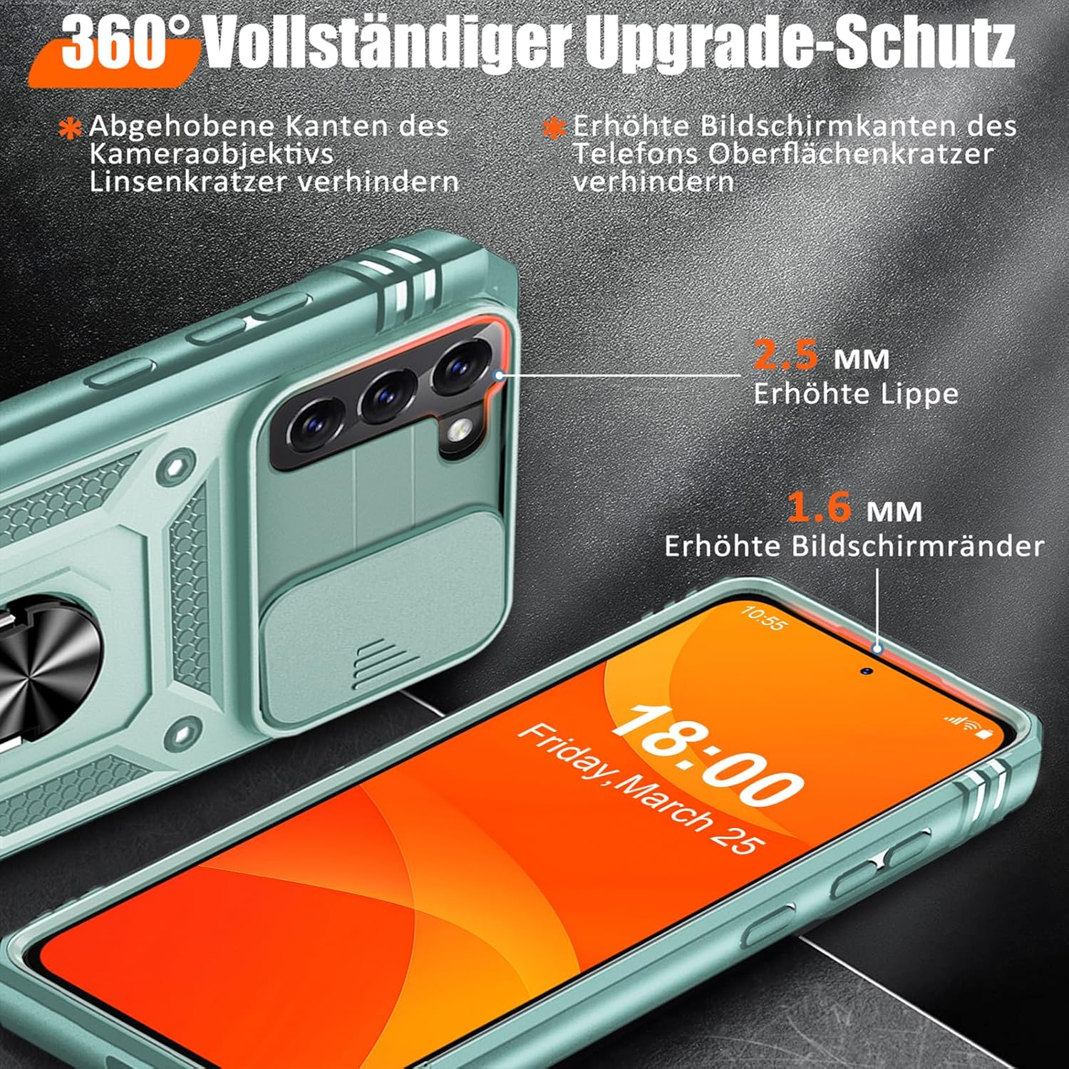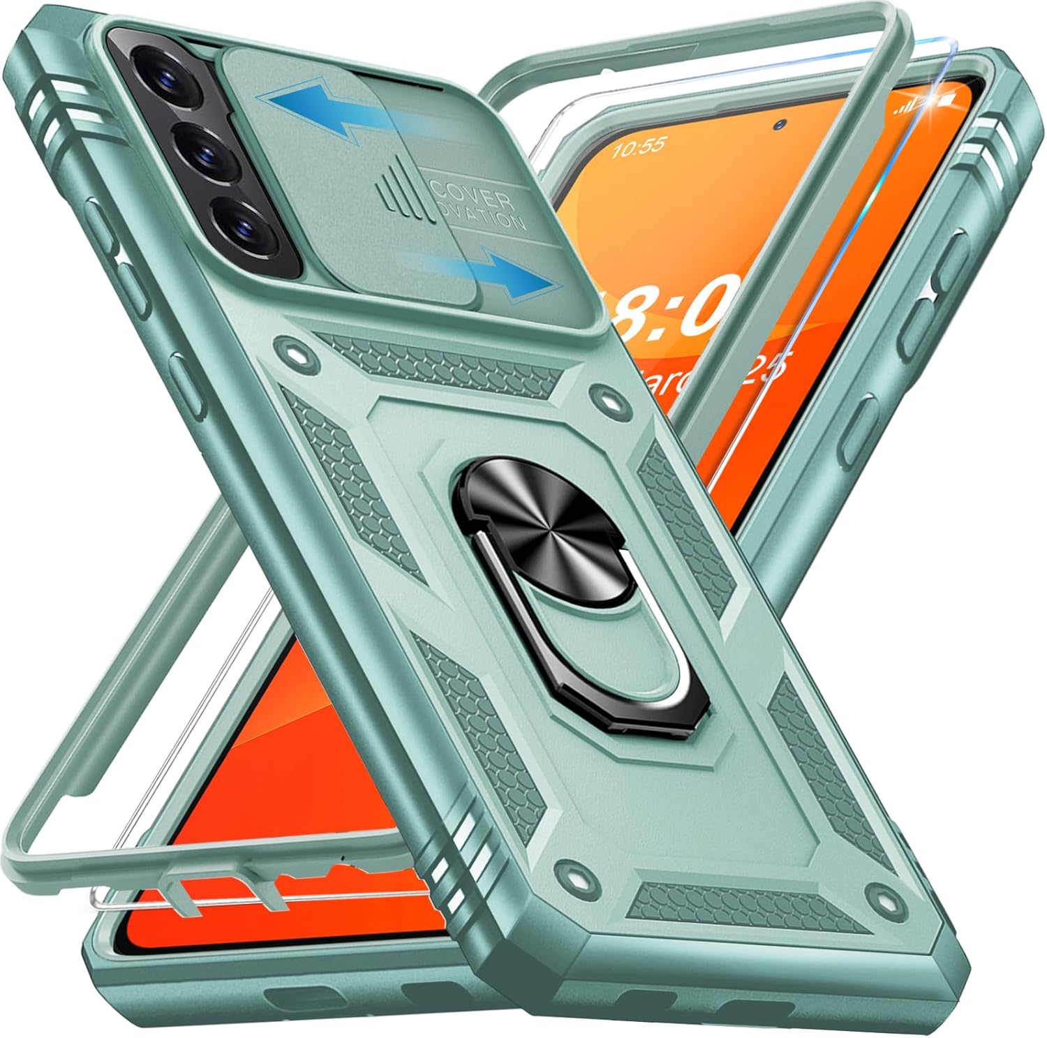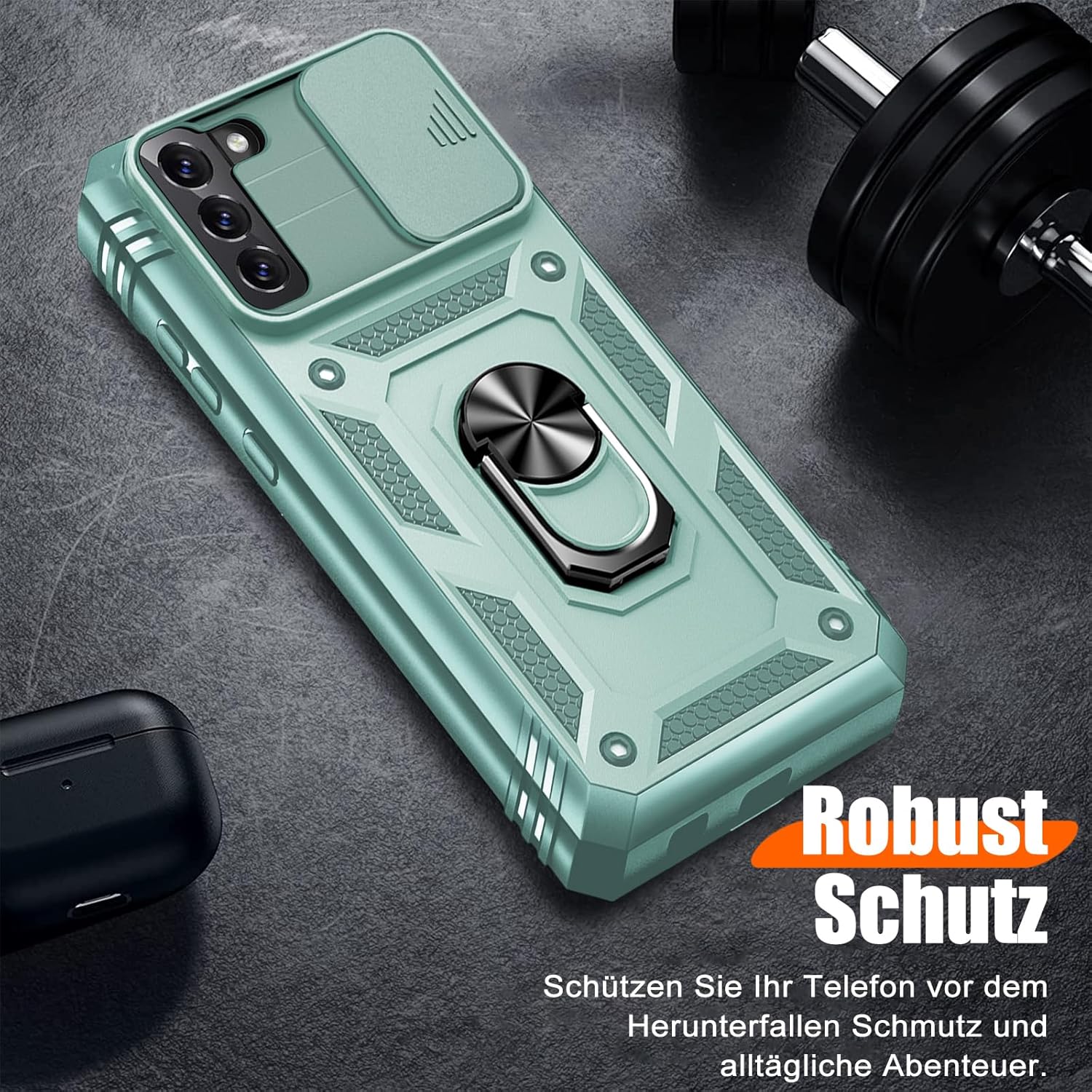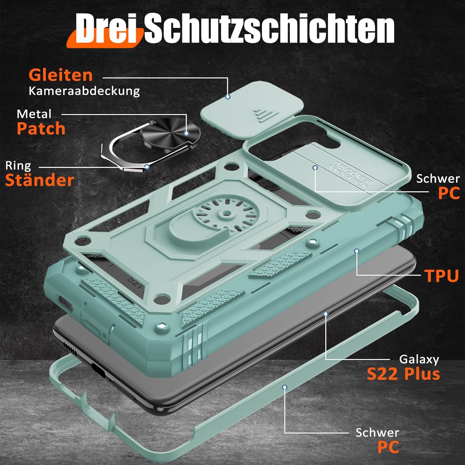 Кейс Giyer за Samsung Galaxy S22 Plus с протектор за екрана, калъф за мобилен телефон със защита на камерата, метална пръстеновидна стойка на 360°, удароустойчив защитен калъф, калъф за Samsung S22 Plus (ментов)