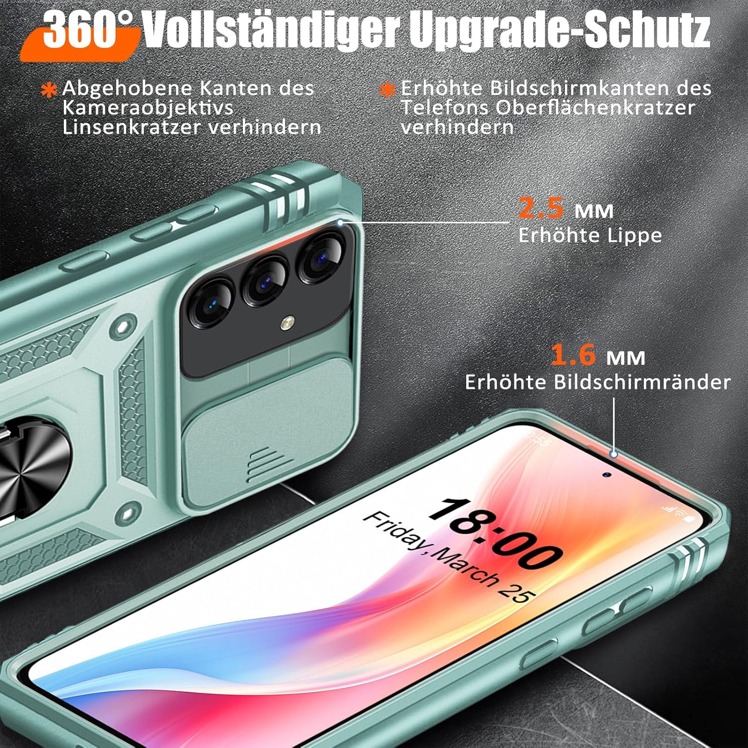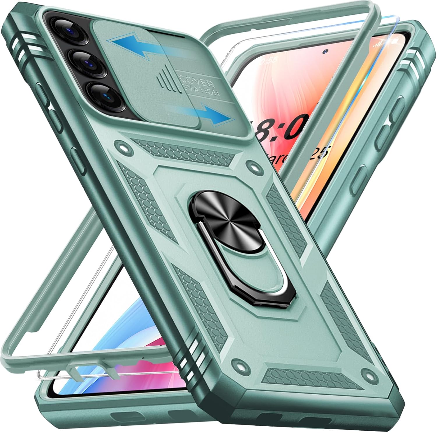 Кейс Giyer за Samsung Galaxy S24 5G с протектор за екрана, Кейс за мобилен телефон S24 5G със защита на камерата 360° метален пръстен стойка удароустойчив защитен калъф за Samsung S24 (ментов)